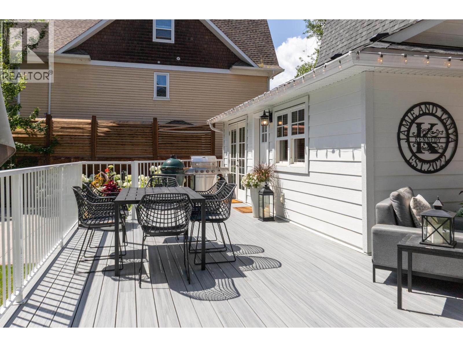 Welcome to 'James Knowles House' one of the most iconic homes of Kelowna! Rich in history this home has been meticulously preserved over the years undergoing a substantial top to bottom renovation that seamlessly marries elegance with its cherished heritage features and charm. Gorgeous remodeled kitchen with all new cabinetry, classic hardware, appliances, farmhouse sink and faux brick. Just off the kitchen is a breakfast nook, large formal dining room, powder room and cozy living room with wood fireplace. All 3 bedrooms and bathrooms upstairs have been tastefully updated including a spacious primary bedroom with custom walk in closet and stunning ensuite with floor to ceiling tiled shower and dual shower heads. Adding to the allure is a modern 2 bed 1 bath carriage house, built in 2018, boasting skylights and vaulted ceilings—a true masterpiece in itself, perfect for AirBNB! The property's backyard is a haven for entertainers, featuring an expansive deck and a yard fit for a pool. The professionally landscaped surroundings showcase mature trees and lush botanicals, creating an enchanting ambiance both in the front and back. Ample parking with oversized detached double garage with additional bay sitting above the 670+ sq ft suspended slab. Everything has been updated throughout including the electrical, plumbing, roof, windows, HVAC system, new verandah and concrete driveway. One of the largest MF1 zoned lots in downtown Kelowna (.32 acres). Make this dream property yours! (id:58842)
