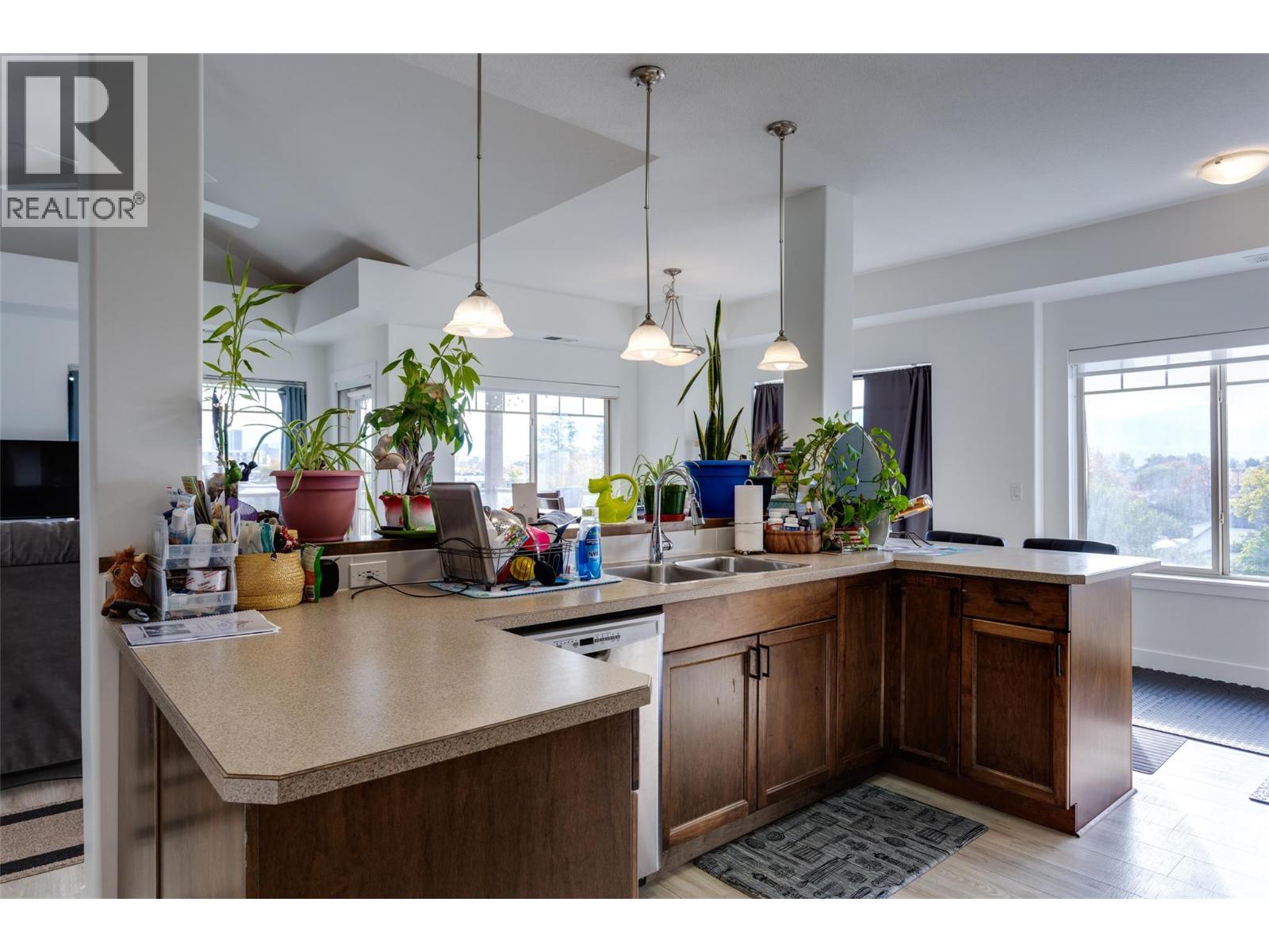 Top floor quiet back corner. Classy 2 bdr 2 bath unit with high ceilings and a nice vault in the living room. 1282 sqft - bright open concept with large windows for natural light. Get the morning sun on east facing deck with mountain/city view.. Rare PARKING bonus with 2 spots! Almost complete tasteful reno in 2024. mostly newer appliances. Actual laundry room with cupboards! Thoughtful design features bedrooms on opposite sides for privacy. Storage unit, bike storage and exercise room. Pets allowed with some restrictions. (id:58842)
