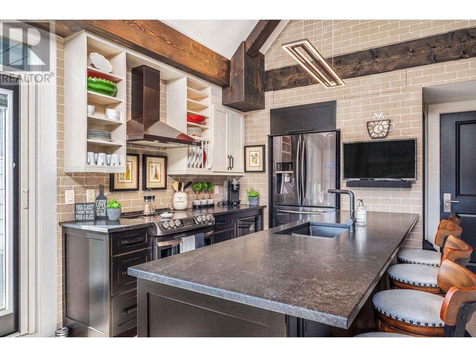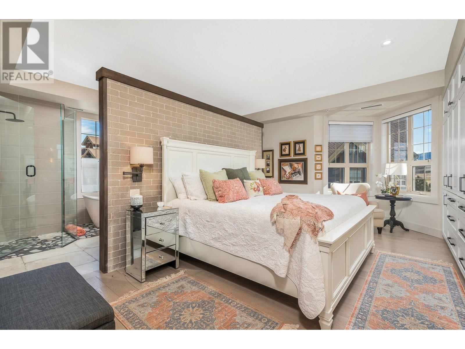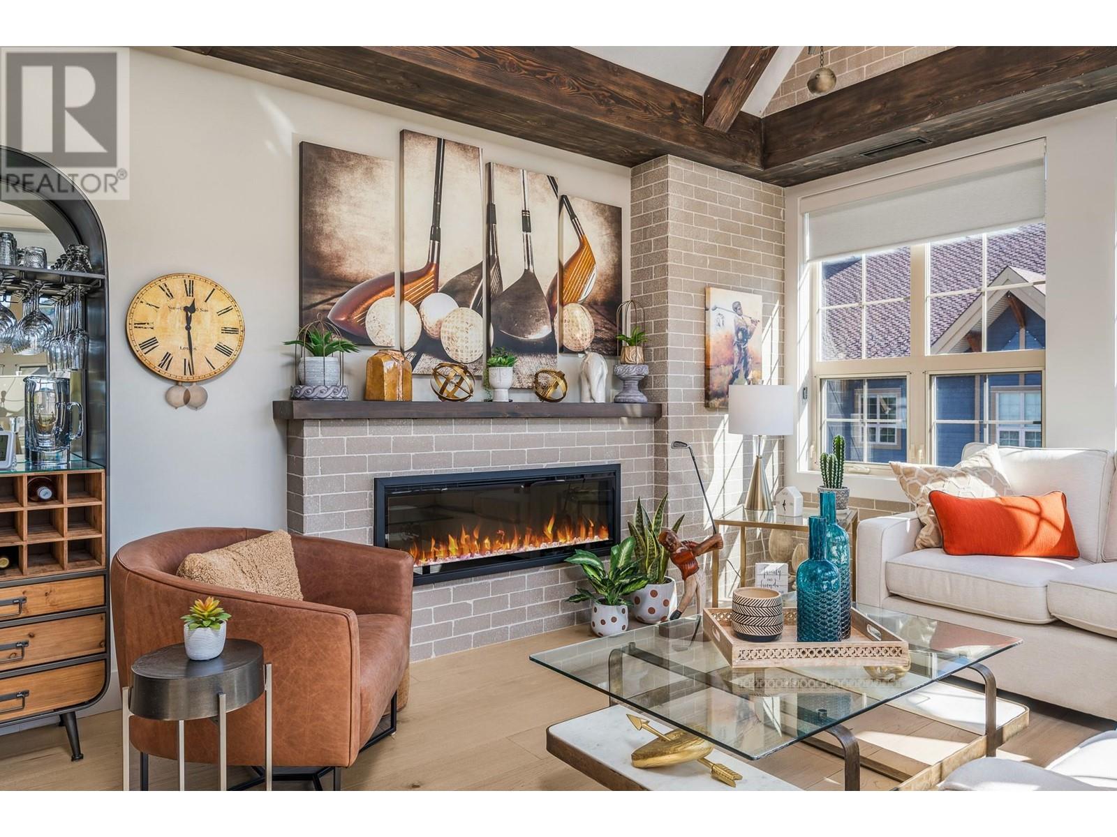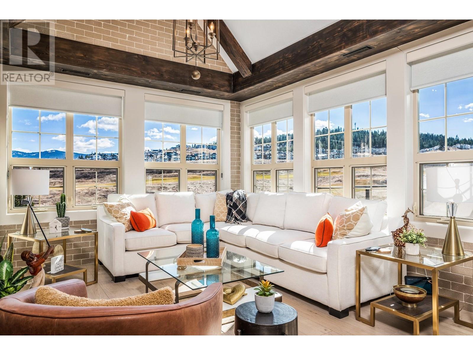 EXCEPTIONAL, ONE-OF-A-KIND TOP-FLOOR SUITE! VAULTED CEILINGS, SOUTHEAST EXPOSURE, BREATHTAKING VIEWS OF THE GOLF COURSE! This stunning suite is ideal as a full-time residence or an investment opportunity with revenue potential through PR Rental Management. Experience the perfect balance of privacy & convenience, just steps away from the first tee & clubhouse. Full renovation just 3 years ago: fir beams in the living area, a striking brick feature wall with a 52"" linear fireplace featuring a 7-color display and remote control & 8"" wide White Oak engineered hardwood floors. The kitchen boasts custom cabinetry, honed granite countertops, SS appliances with a induction oven, designer lighting & Hunter Douglas window coverings. Additional features include built-in shelves at the entry, a pantry & floor-to-ceiling, wall-to-wall custom closets in the main bedroom. The main bath offers luxurious touches such as curbless showers, free-standing tub, under-mount sinks, heated flooring & two recessed mirrored toiletry cabinets. Second bedroom includes a built-in Murphy bed, perfect for guests or flexible use. Ownership includes access to an outdoor pool, lounge area, hot tub, BBQ area, as well as access to the Fitness Centre, which offers an indoor pool, hot tub, steam rooms, weight room & yoga studio. Enjoy two world-class golf courses, multiple dining options, a market & miles of hiking & biking trails. Only 45 minutes to Silver Star and 25 minutes to Kelowna International Airport. (id:58842)