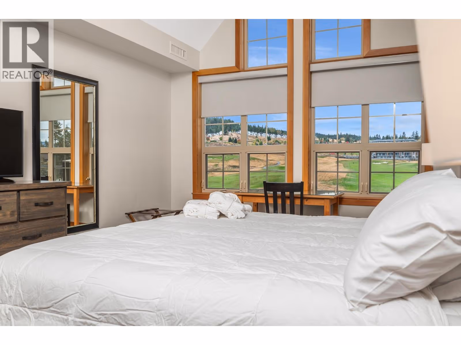 This is the largest unit in the Lodge and built with a unique layout of 2 full bedrooms plus ensuites on opposite sides of the living space. Vaulted ceilings and huge windows flood the Unit with light that makes the great scenery sparkle. South facing views from the balcony over the first hole of the Ridge Course. As part of the iconic Lodge building you have access to the pool and hot tub for the building as well as the Fitness Centre. Fully furnished and move-in ready, this Unit has paid the DCC to the City of Vernon and has opted out of the the Predator Ridge Rental Management Program, so you can live and enjoy the unit year-round, or rent it out long-term, retaining 100% of the income. Come and be part of a great community, with world class amenities and enjoy the very the North Okanagan has to offer on your terms. Note: As Unit is not part of the rental program there are some Predator Ridge privileges that won't apply, such as discounts in any of the Predator Ridge outlets and the friends and family booking discounts.. GST will likely be applicable to the sale. (id:58842)