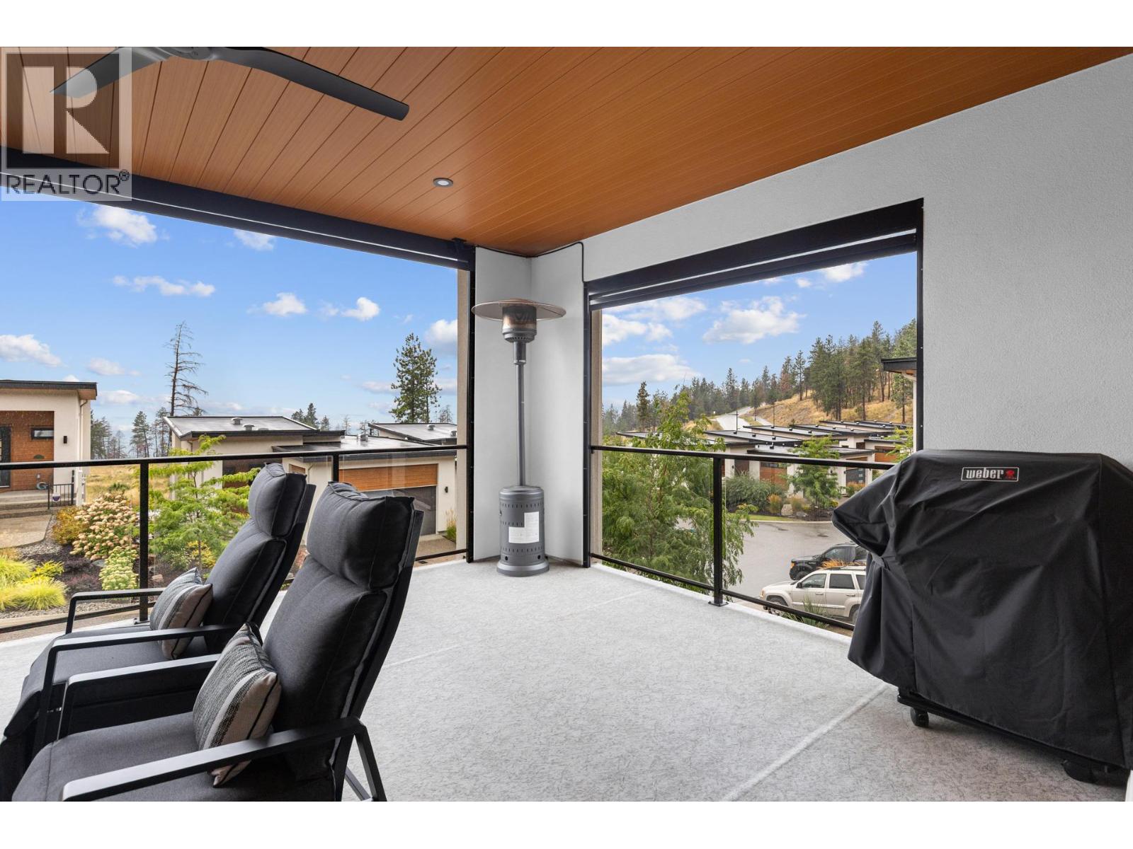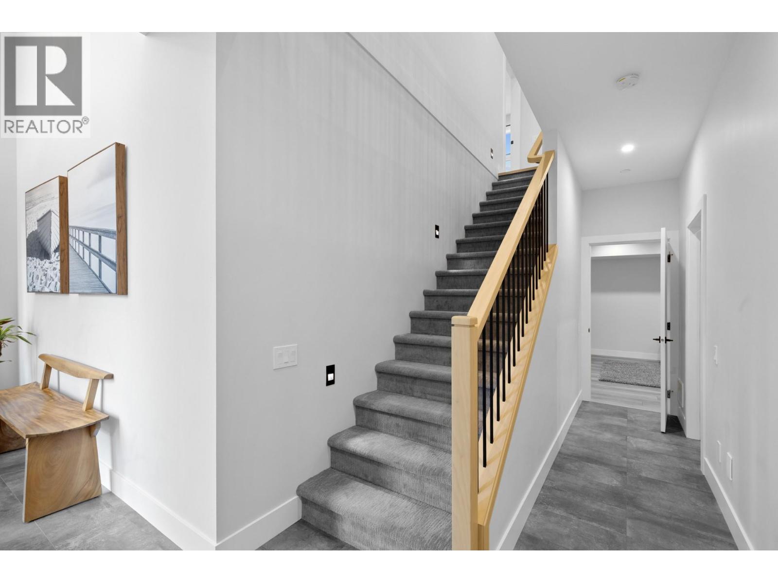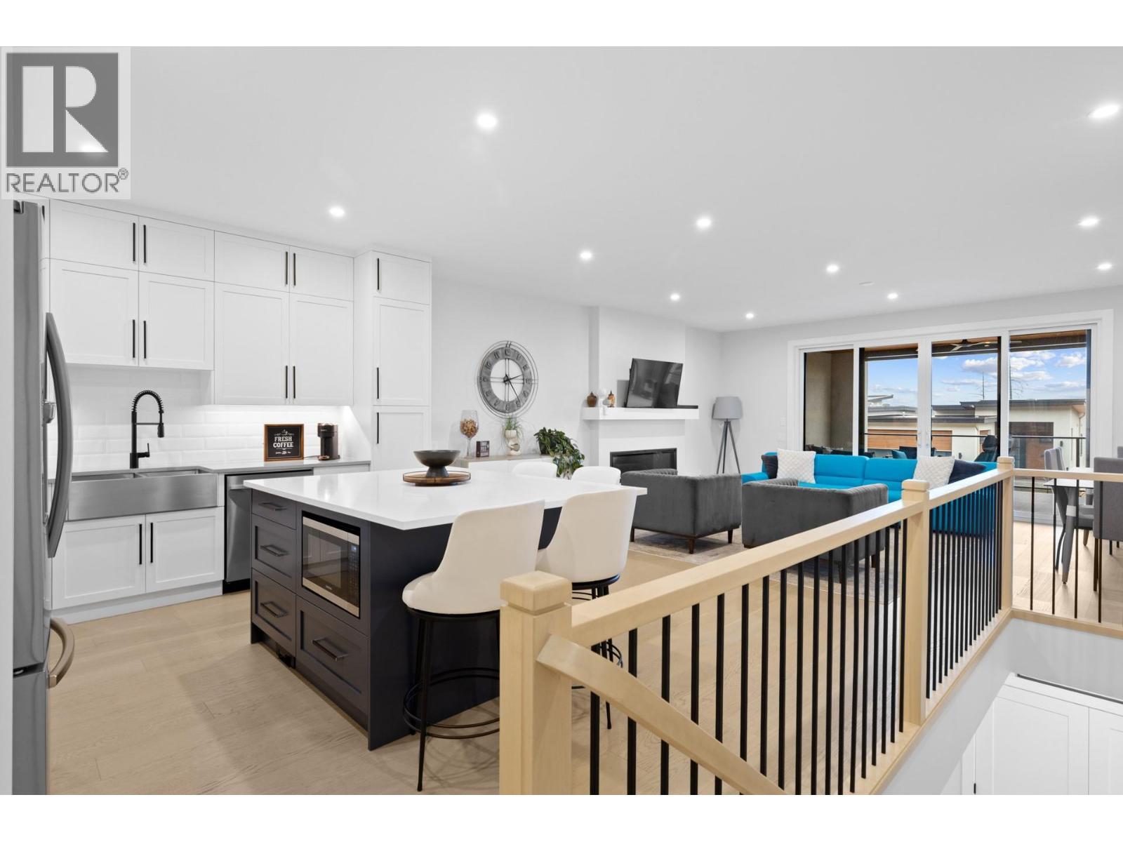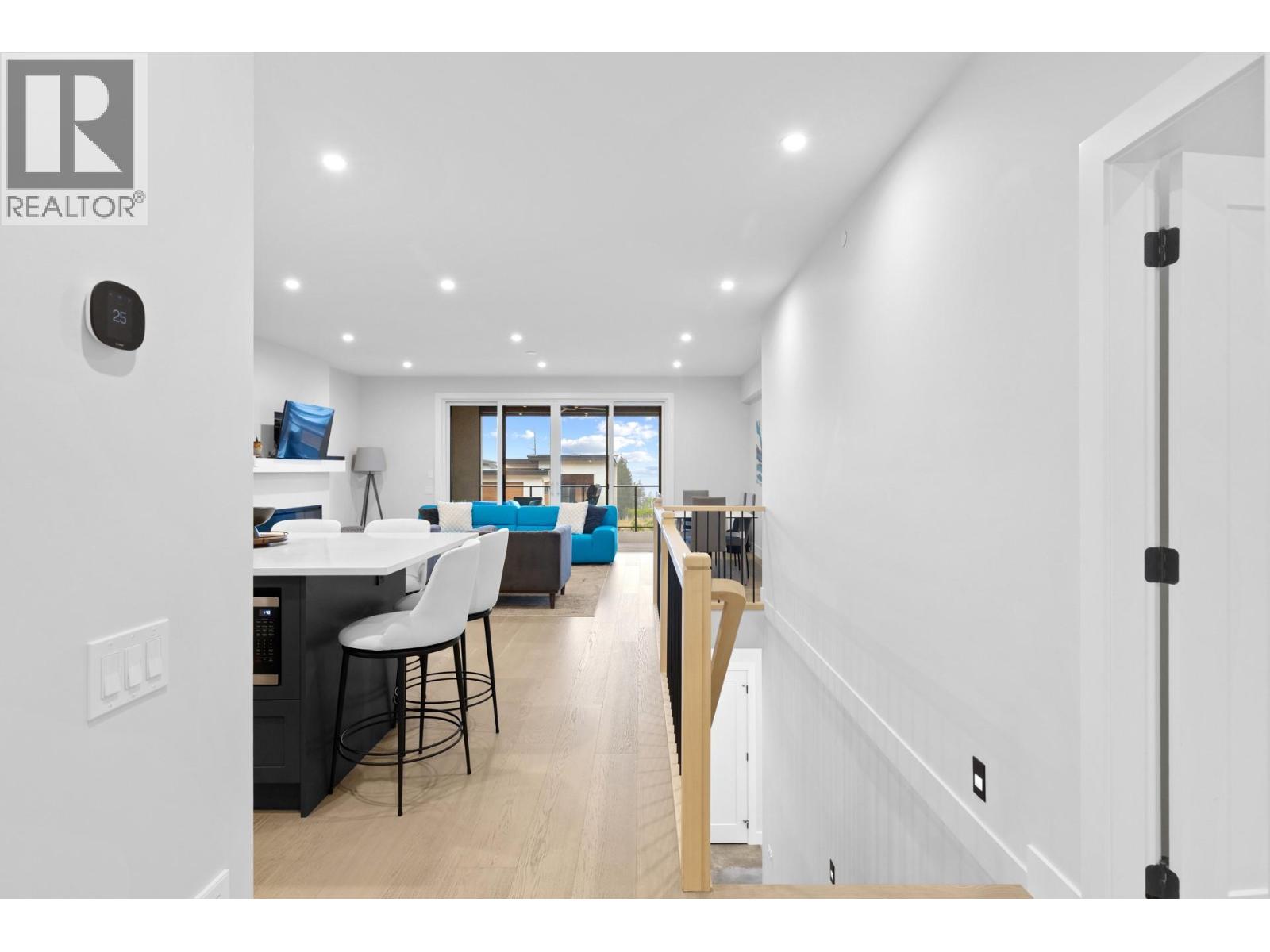 Experience the best of Okanagan living in Lakestone Villas, part of the stunning, amenity-rich Lakestone community. This contemporary 3-bedroom, 3-bathroom home, built by Carrington Homes, blends modern elegance with everyday convenience and is still covered under New Home Warranty. The open-concept main floor is both stylish and functional. The chef-inspired kitchen boasts quartz countertops, shaker-style cabinetry, stainless steel appliances, and an oversized island with a built-in wine fridge—perfect for entertaining. The dining and living areas flow effortlessly into a spacious covered balcony, complete with a ceiling fan, remote-control privacy screens, and a gas BBQ hookup with peekaboo lake views—offering true seamless indoor-outdoor living. The home is also professionally landscaped, adding a finished, well-maintained touch. Upstairs, you’ll find two bedrooms and two bathrooms, including a luxurious primary suite with a spa-like ensuite featuring heated floors, a soaker tub, double vanity, and walk-in closet. The lower level includes an additional bedroom and full bathroom, ideal for guests or a home office, as well as a large rec room offering flexibility as a media room, games room, or additional living space. As a Lakestone resident, you’ll enjoy resort-style amenities: multiple outdoor pools, hot tubs, fitness facilities, a yoga studio, pickleball and tennis courts, a basketball court, BBQ areas, a swim dock, and beach access—all for a low monthly fee. Perfectly located, this sought-after community combines peace and privacy with close proximity to beaches, hiking trails, wineries, UBCO, the airport, and more. This home offers the ultimate balance of luxury, lifestyle, and location. (id:58842)
