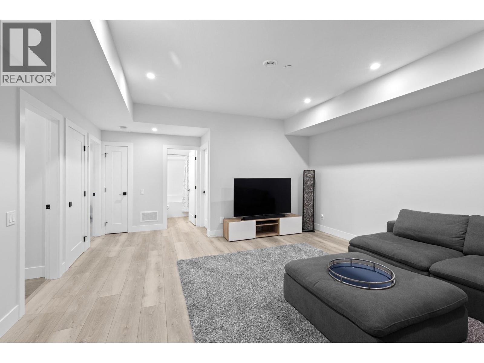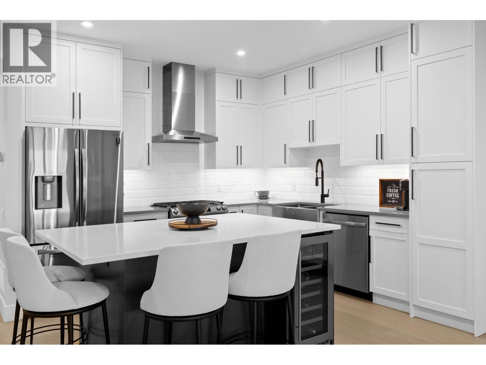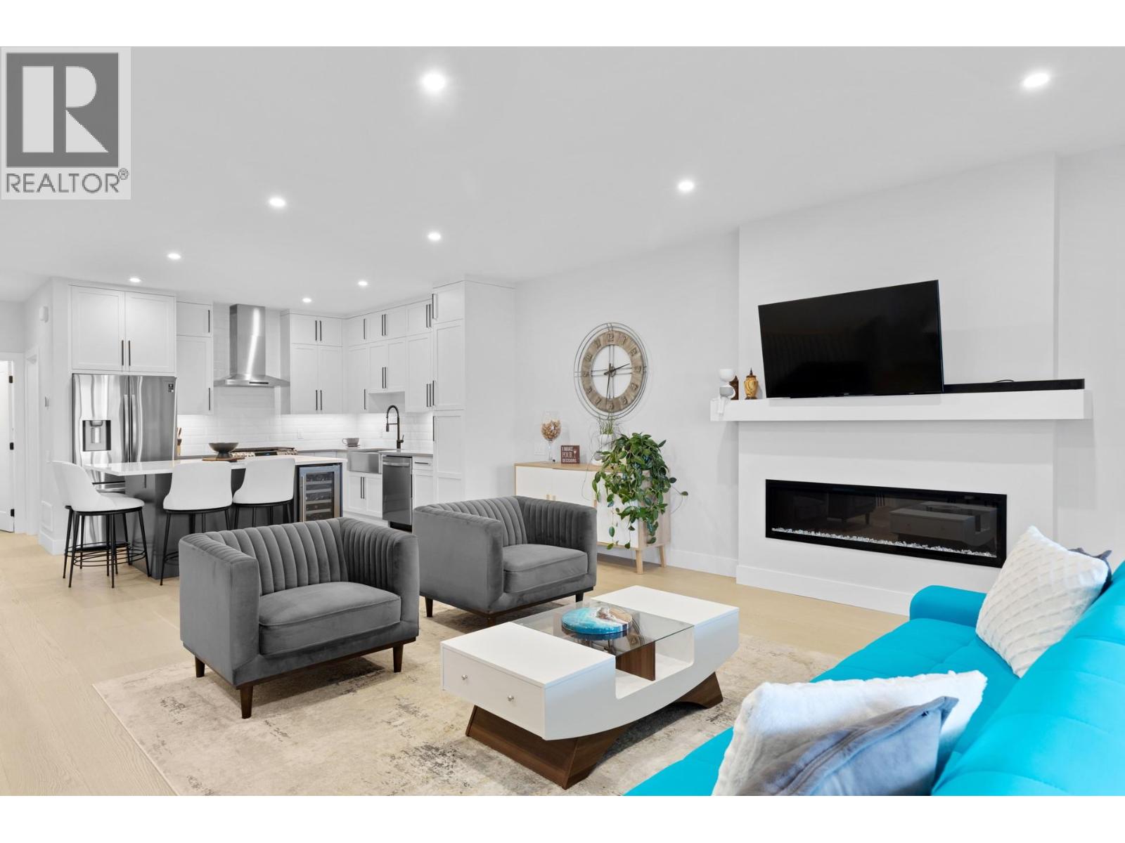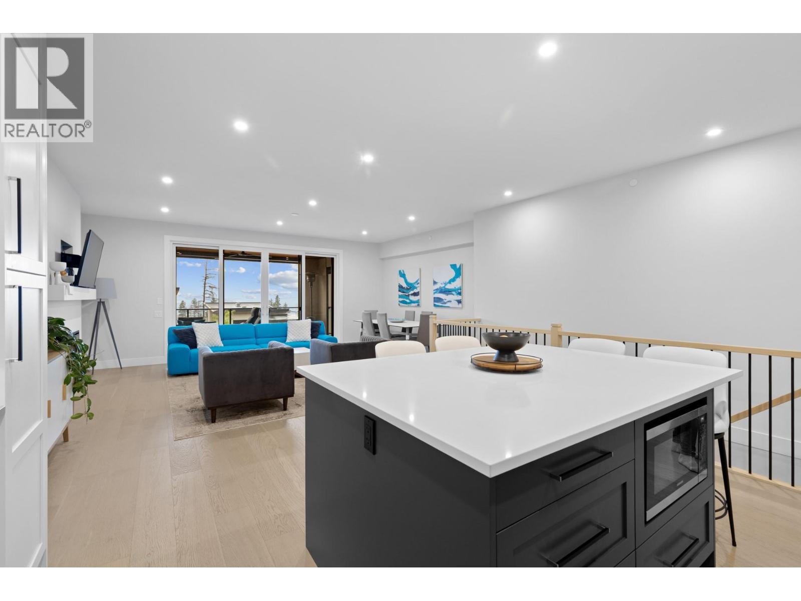 Experience the best of Okanagan living in Lakestone Villas, part of the stunning, amenity-rich Lakestone community. This contemporary 3-bedroom, 3-bathroom home, built by Carrington Homes, blends modern elegance with everyday convenience and is still covered under New Home Warranty. The open-concept main floor is both stylish and functional. The chef-inspired kitchen boasts quartz countertops, shaker-style cabinetry, stainless steel appliances, and an oversized island with a built-in wine fridge—perfect for entertaining. The dining and living areas flow effortlessly into a spacious covered balcony, complete with a ceiling fan, remote-control privacy screens, and a gas BBQ hookup with peekaboo lake views—offering true seamless indoor-outdoor living. The home is also professionally landscaped, adding a finished, well-maintained touch. Upstairs, you’ll find two bedrooms and two bathrooms, including a luxurious primary suite with a spa-like ensuite featuring heated floors, a soaker tub, double vanity, and walk-in closet. The lower level includes an additional bedroom and full bathroom, ideal for guests or a home office, as well as a large rec room offering flexibility as a media room, games room, or additional living space. As a Lakestone resident, you’ll enjoy resort-style amenities: multiple outdoor pools, hot tubs, fitness facilities, a yoga studio, pickleball and tennis courts, a basketball court, BBQ areas, a swim dock, and beach access—all for a low monthly fee. Perfectly located, this sought-after community combines peace and privacy with close proximity to beaches, hiking trails, wineries, UBCO, the airport, and more. This home offers the ultimate balance of luxury, lifestyle, and location. (id:58842)