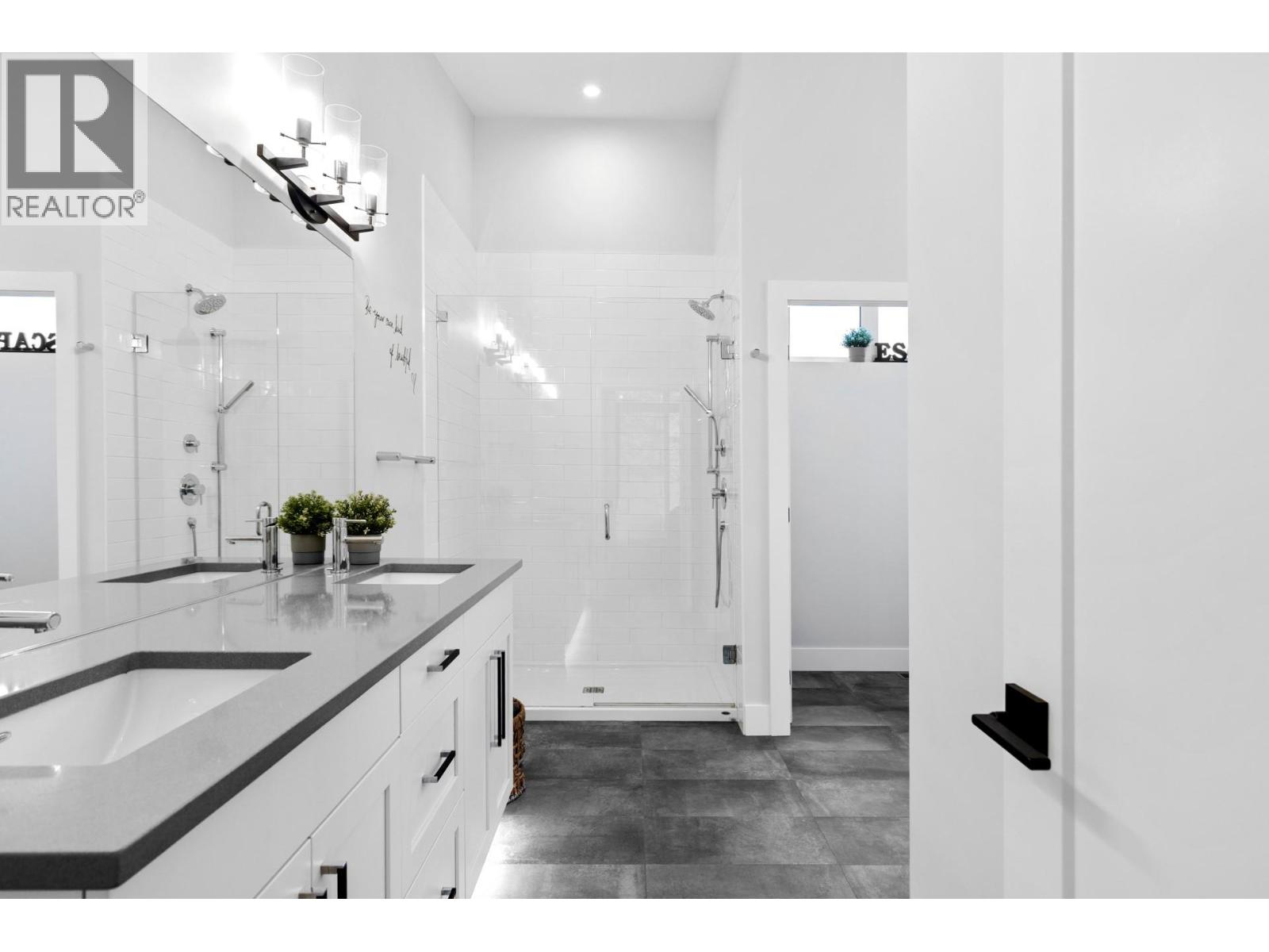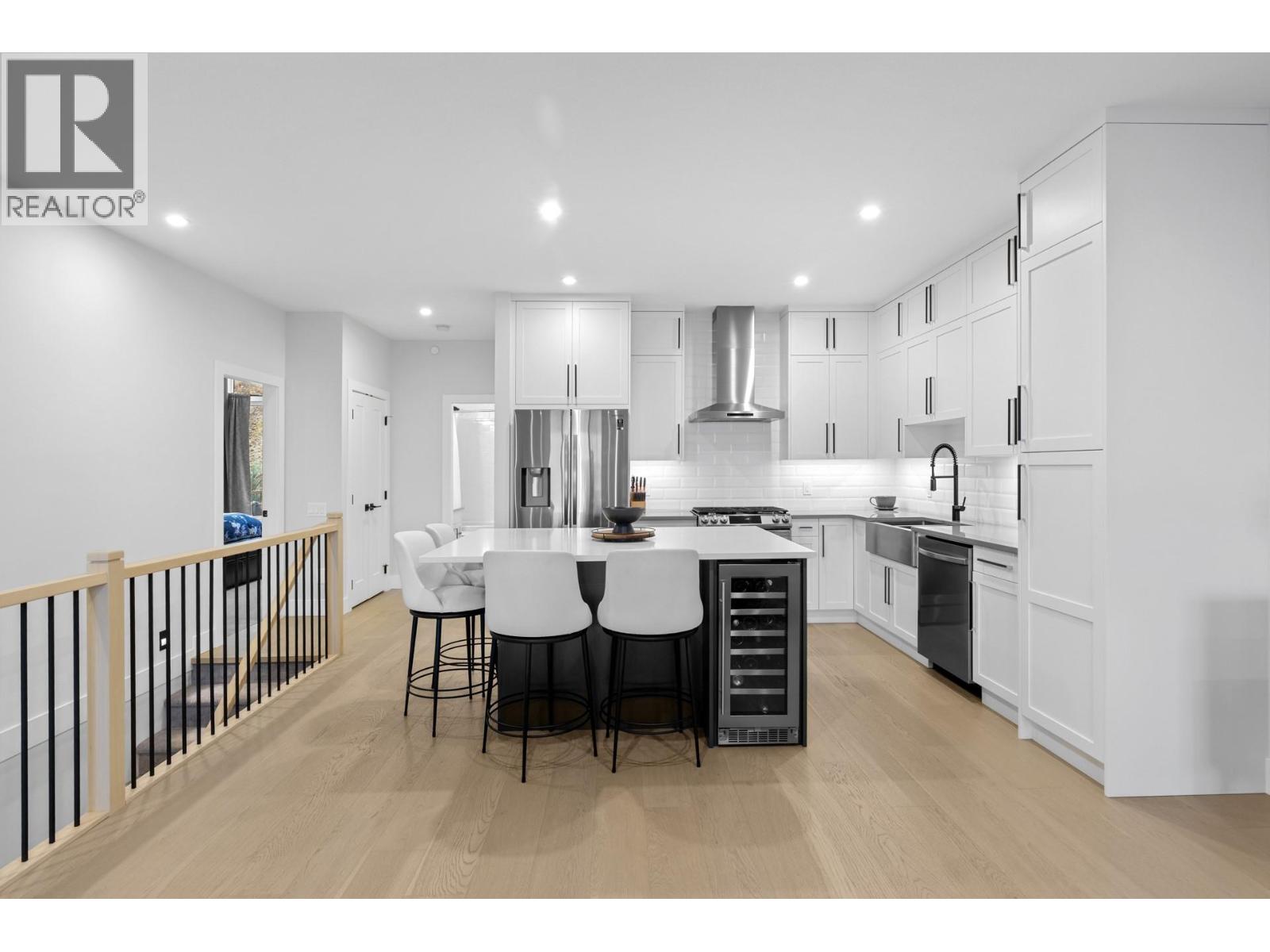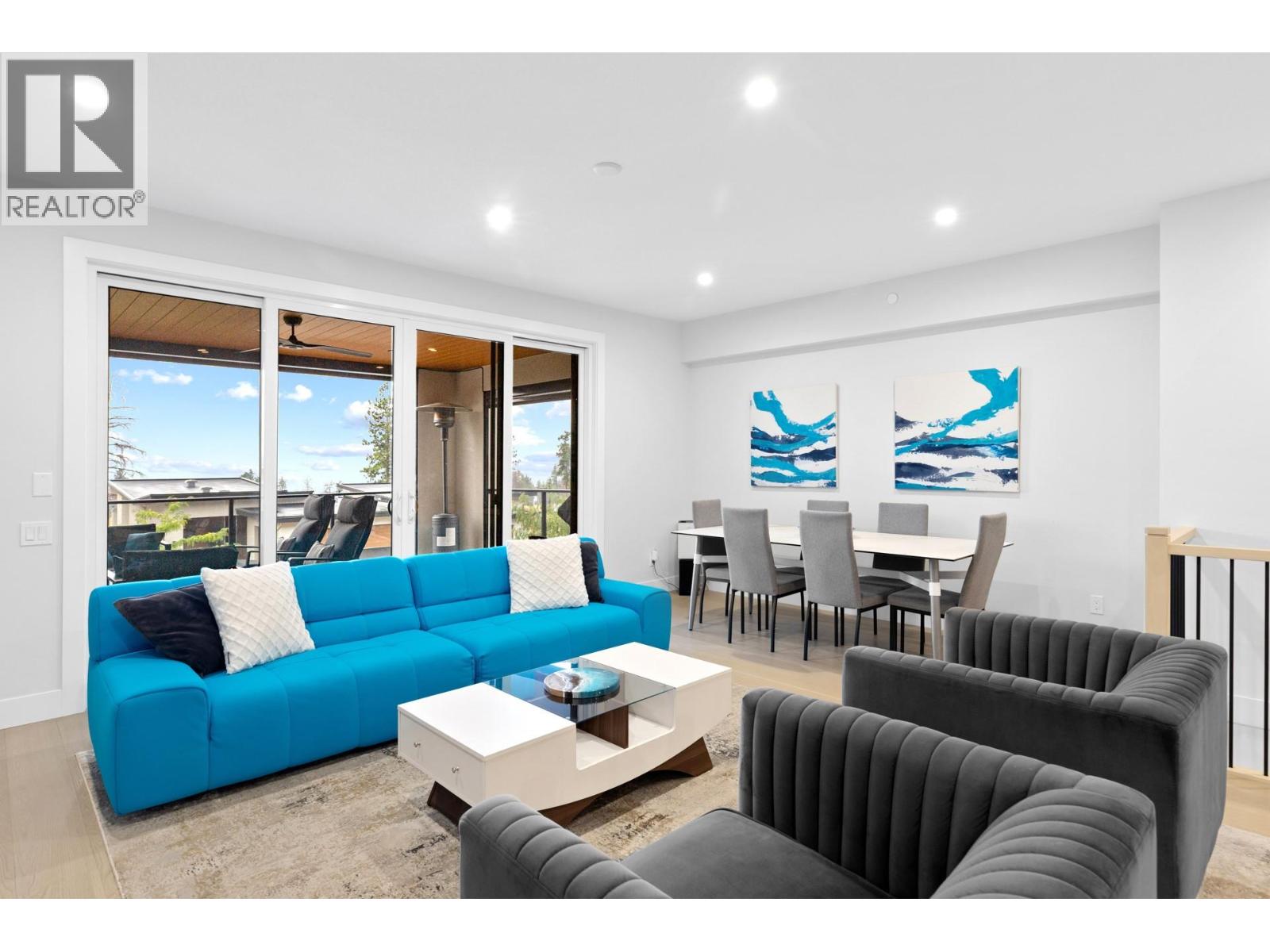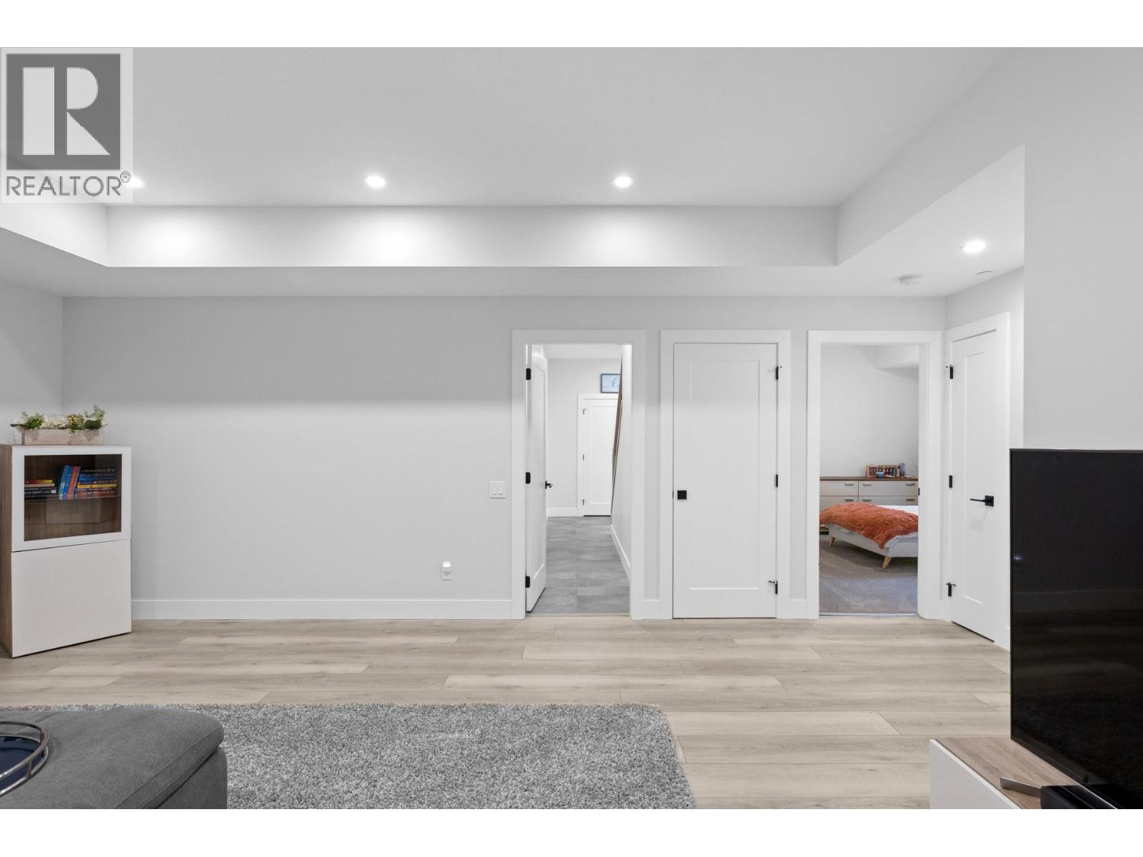 Experience the best of Okanagan living in Lakestone Villas, part of the stunning, amenity-rich Lakestone community. This contemporary 3-bedroom, 3-bathroom home, built by Carrington Homes, blends modern elegance with everyday convenience and is still covered under New Home Warranty. The open-concept main floor is both stylish and functional. The chef-inspired kitchen boasts quartz countertops, shaker-style cabinetry, stainless steel appliances, and an oversized island with a built-in wine fridge—perfect for entertaining. The dining and living areas flow effortlessly into a spacious covered balcony, complete with a ceiling fan, remote-control privacy screens, and a gas BBQ hookup with peekaboo lake views—offering true seamless indoor-outdoor living. The home is also professionally landscaped, adding a finished, well-maintained touch. Upstairs, you’ll find two bedrooms and two bathrooms, including a luxurious primary suite with a spa-like ensuite featuring heated floors, a soaker tub, double vanity, and walk-in closet. The lower level includes an additional bedroom and full bathroom, ideal for guests or a home office, as well as a large rec room offering flexibility as a media room, games room, or additional living space. As a Lakestone resident, you’ll enjoy resort-style amenities: multiple outdoor pools, hot tubs, fitness facilities, a yoga studio, pickleball and tennis courts, a basketball court, BBQ areas, a swim dock, and beach access—all for a low monthly fee. Perfectly located, this sought-after community combines peace and privacy with close proximity to beaches, hiking trails, wineries, UBCO, the airport, and more. This home offers the ultimate balance of luxury, lifestyle, and location. (id:58842)