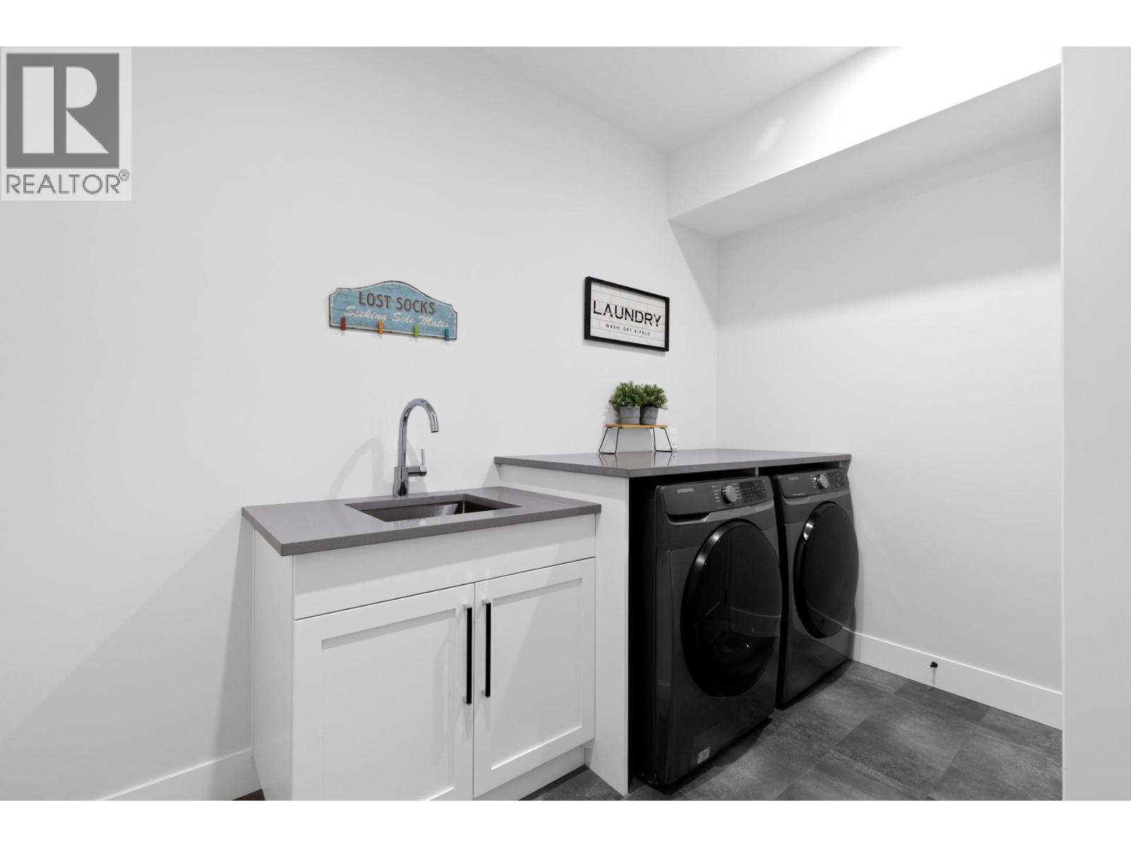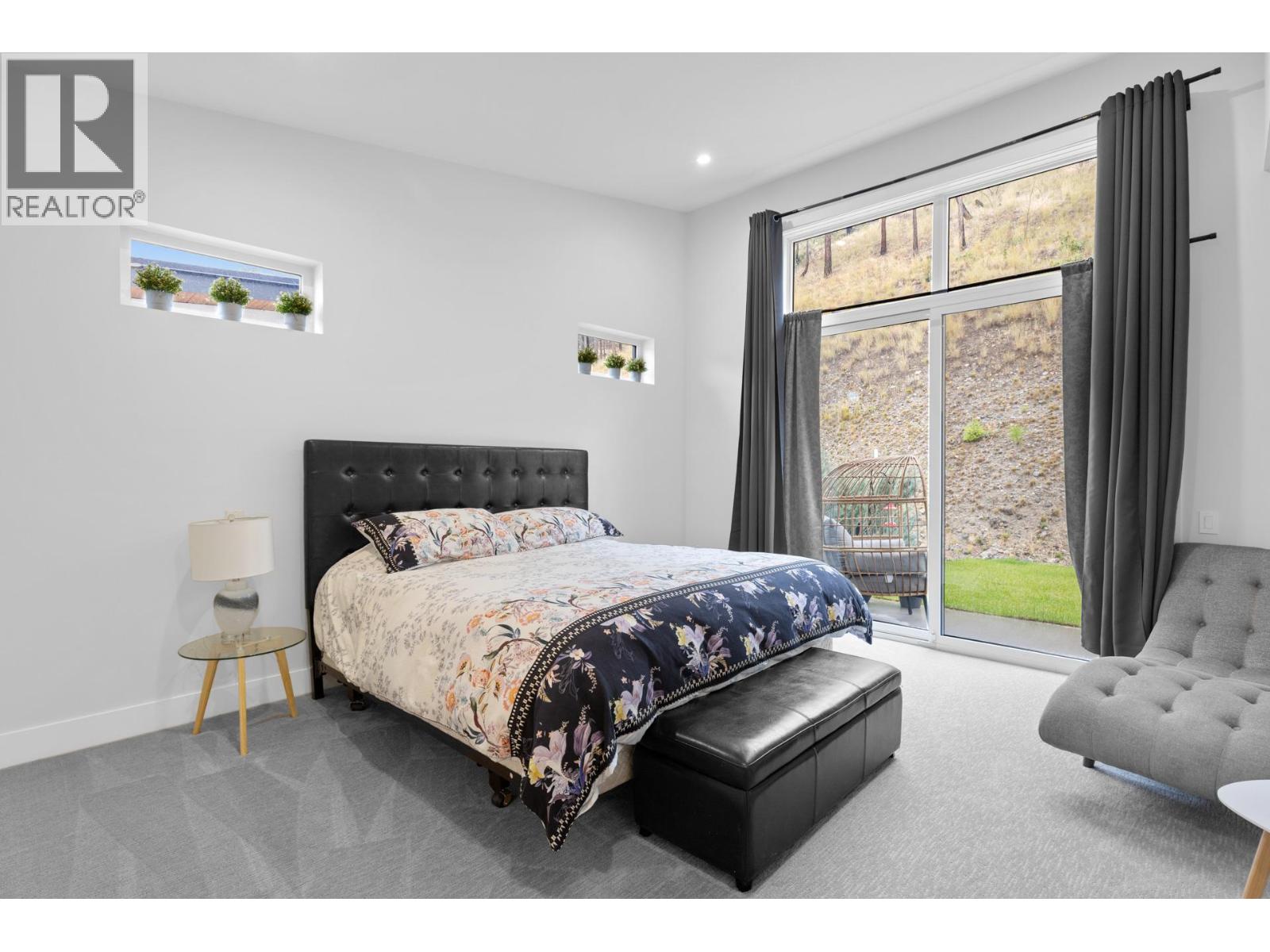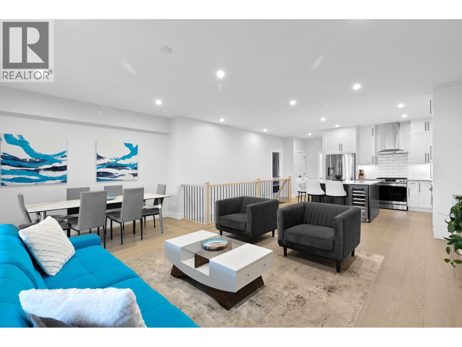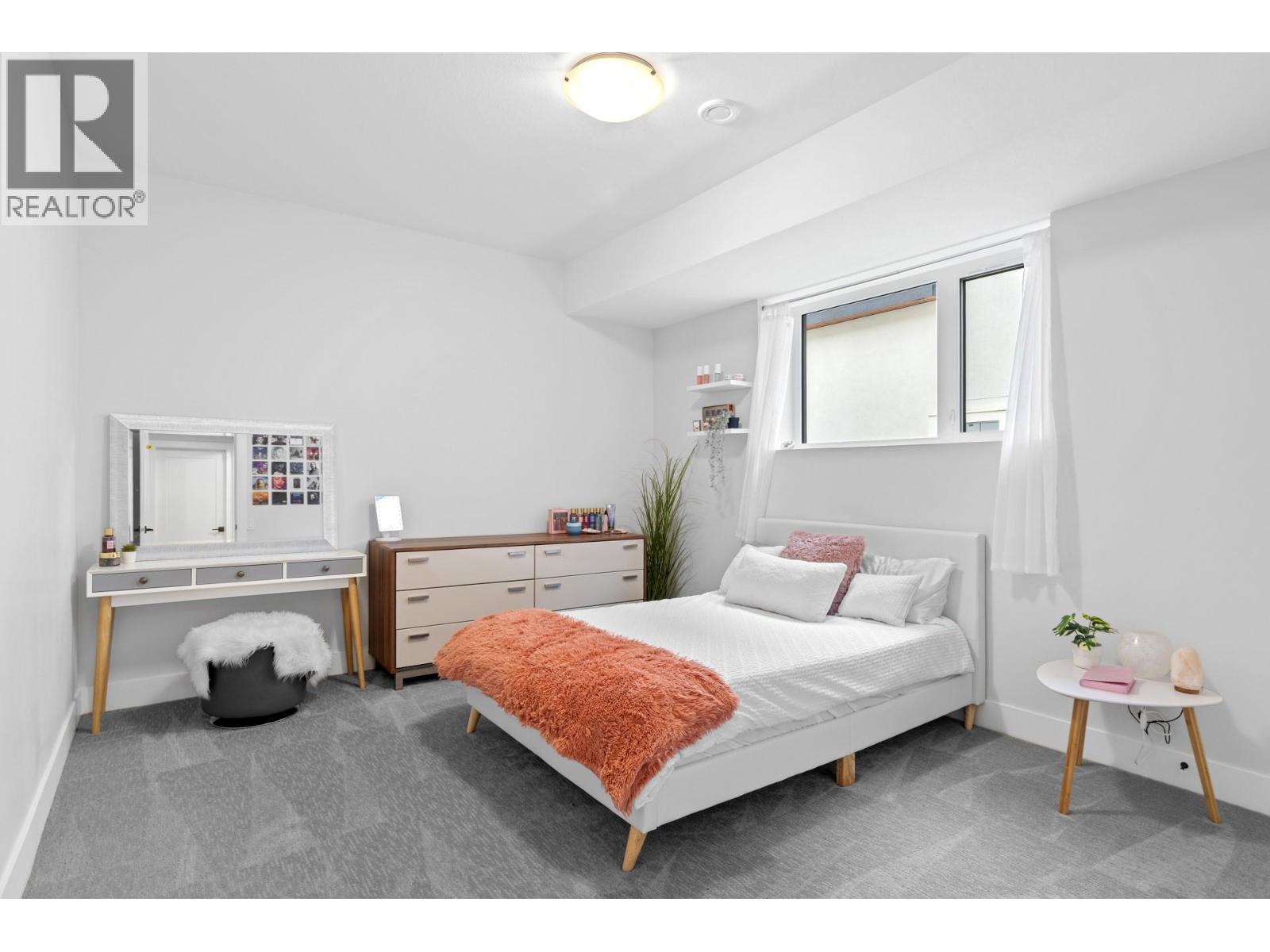Experience the best of Okanagan living in Lakestone Villas, part of the stunning, amenity-rich Lakestone community. This contemporary 3-bedroom, 3-bathroom home, built by Carrington Homes, blends modern elegance with everyday convenience and is still covered under New Home Warranty. The open-concept main floor is both stylish and functional. The chef-inspired kitchen boasts quartz countertops, shaker-style cabinetry, stainless steel appliances, and an oversized island with a built-in wine fridge—perfect for entertaining. The dining and living areas flow effortlessly into a spacious covered balcony, complete with a ceiling fan, remote-control privacy screens, and a gas BBQ hookup with peekaboo lake views—offering true seamless indoor-outdoor living. The home is also professionally landscaped, adding a finished, well-maintained touch. Upstairs, you’ll find two bedrooms and two bathrooms, including a luxurious primary suite with a spa-like ensuite featuring heated floors, a soaker tub, double vanity, and walk-in closet. The lower level includes an additional bedroom and full bathroom, ideal for guests or a home office, as well as a large rec room offering flexibility as a media room, games room, or additional living space. As a Lakestone resident, you’ll enjoy resort-style amenities: multiple outdoor pools, hot tubs, fitness facilities, a yoga studio, pickleball and tennis courts, a basketball court, BBQ areas, a swim dock, and beach access—all for a low monthly fee. Perfectly located, this sought-after community combines peace and privacy with close proximity to beaches, hiking trails, wineries, UBCO, the airport, and more. This home offers the ultimate balance of luxury, lifestyle, and location. (id:58842)