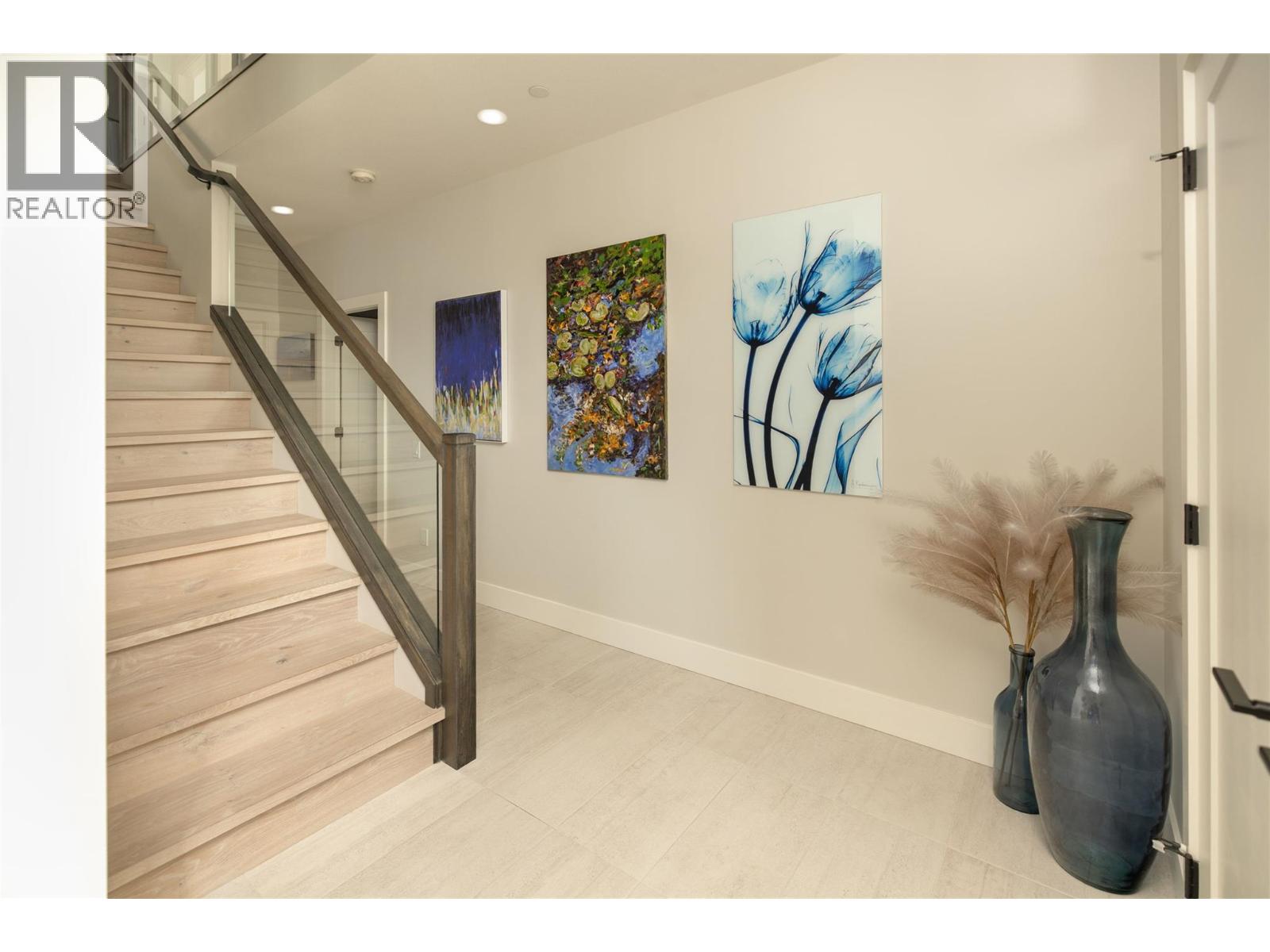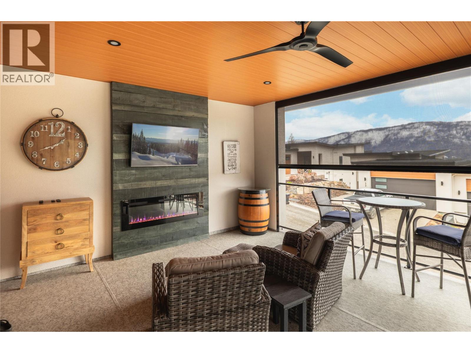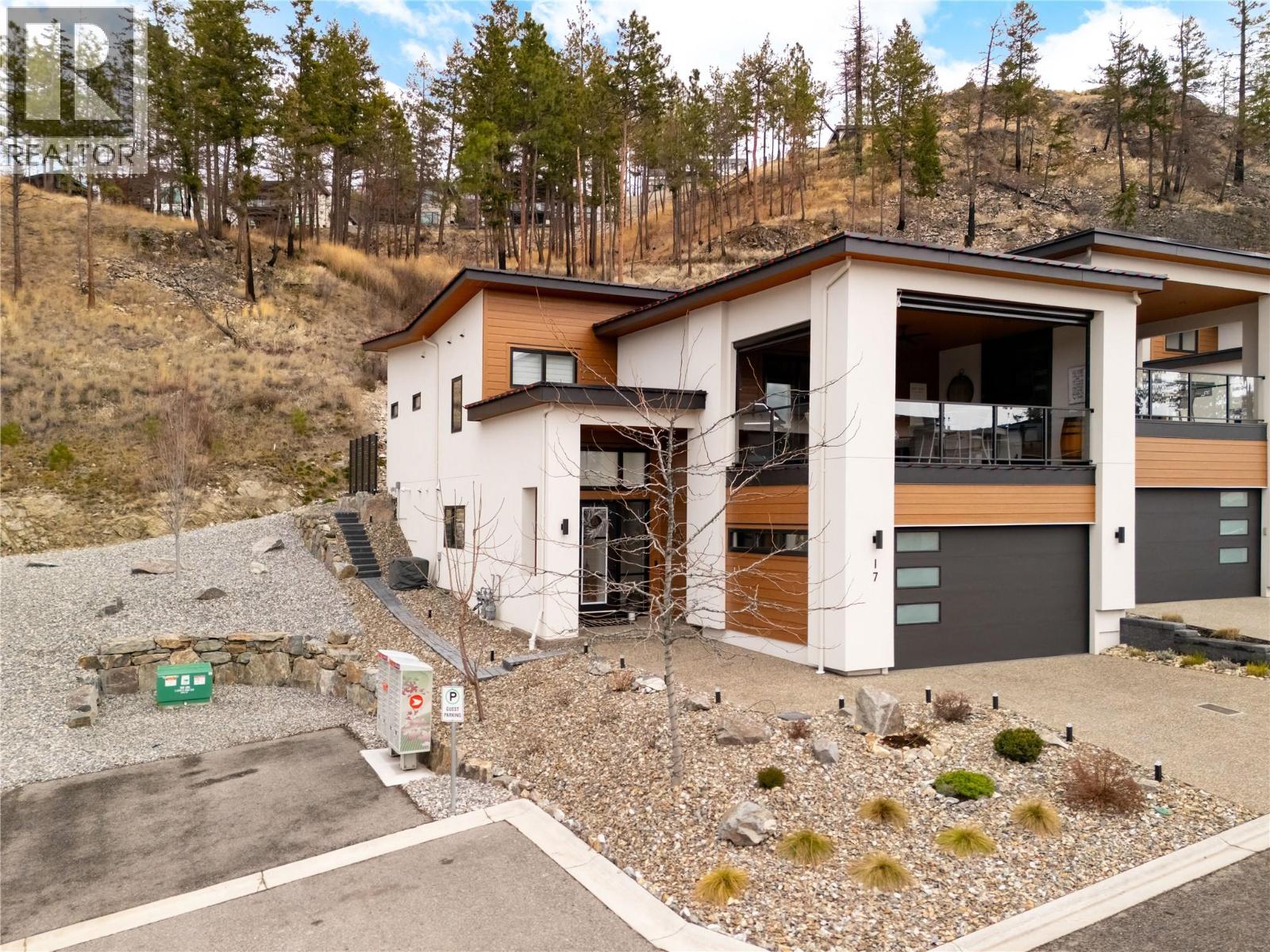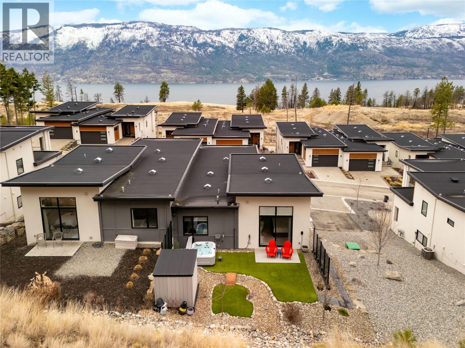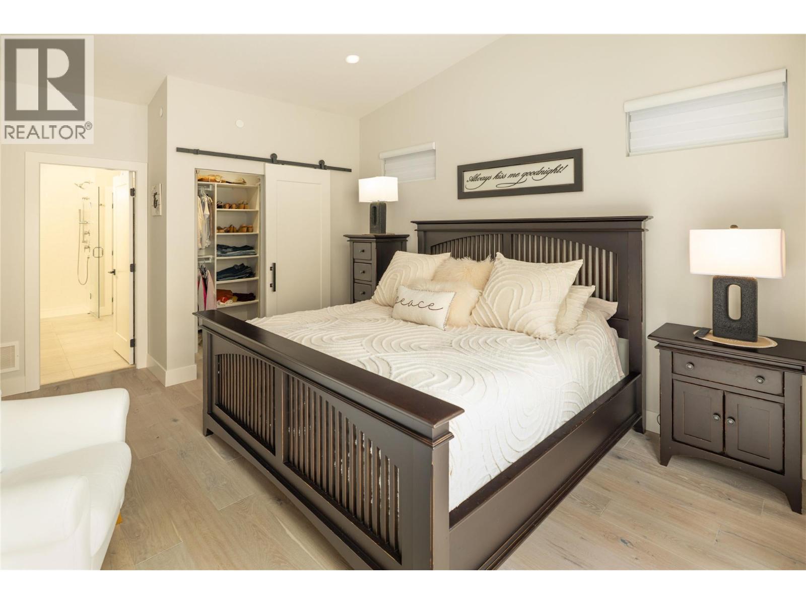 Stunning residence within the prestigious Lakestone Villas community, offering luxury living with over $90,000 in upgrades & enhancements. Pride of ownership & attention to detail are evident from the moment you enter. The spacious entry opens to a bright, open-concept layout with elegant tile flooring, stone countertops throughout, & custom wine storage. The lower level offers excellent functionality with custom laundry with built-ins & sink, a generous family room with electric fireplace & custom cabinetry, plus a guest bedroom and full bathroom. Upstairs, soaring ceilings & expansive windows flood the main living space with natural light, meaningfully finished with wide-plank hardwood flooring. The kitchen features an oversized island, stainless farmhouse sink, smart appliances, & gas range, while the living area is anchored by a striking honeycomb tile fireplace. Step out to the covered patio with privacy screens & outdoor fireplace, creating a seamless indoor-outdoor connection, complemented by a carefree front & back yard with hideaway screens & in-ground lighting. The primary suite is a serene retreat with its own electric fireplace & spa-inspired ensuite featuring a freestanding soaker tub, walk-in shower, dual sinks, heated flooring, & a custom barn door leading to the walk-in closet. An oversized double garage with epoxy flooring & mezzanine storage easily accommodates 3 vehicles, a boat, or recreational toys. Residents enjoy access to Lakestone amenities including lake access, pools, fitness facilities, & scenic trails—offering a true Okanagan lifestyle with lock-&-leave ease. (id:58842)