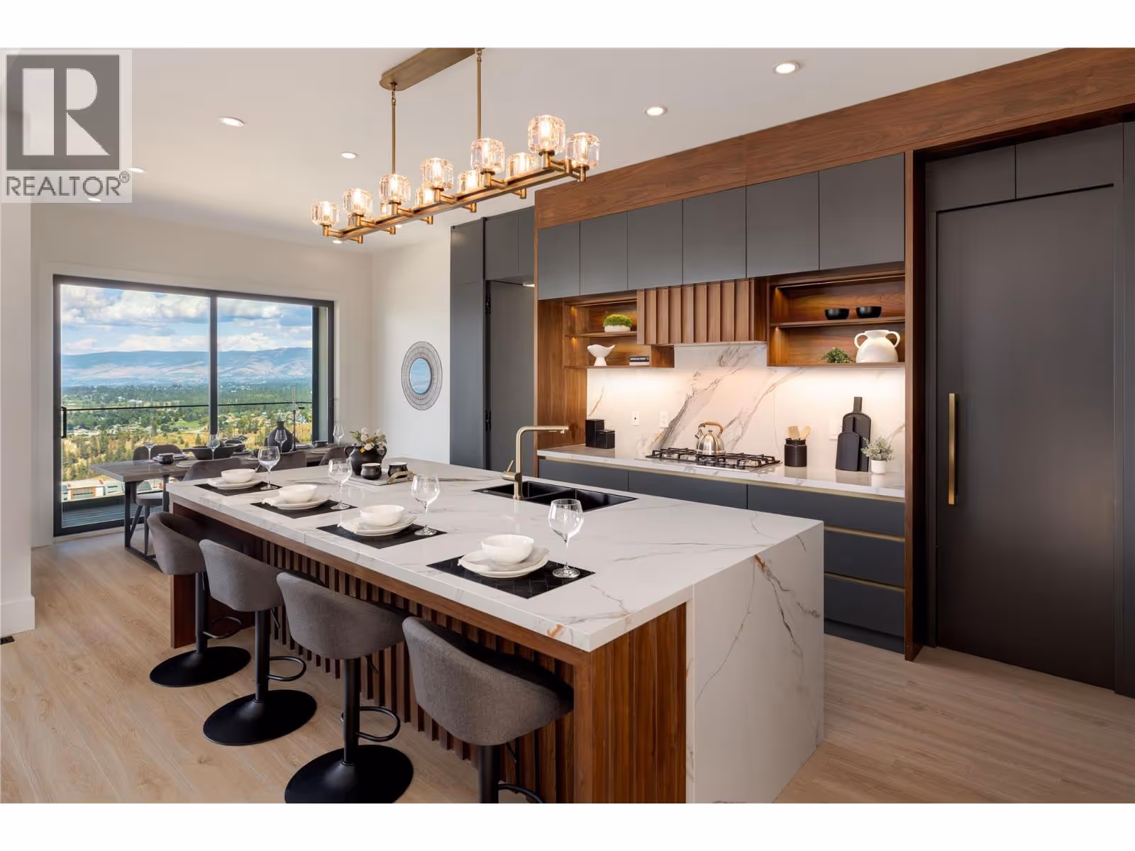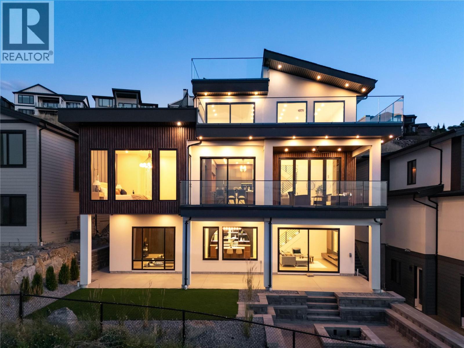 This architectural masterpiece blends modern sophistication with timeless elegance, set high above the city for sweeping lake, valley & mountain views. Designed for both grand entertaining & intimate living, the main level flows from a dramatic 2-storey living room with marble fireplace to a chef’s kitchen with Fisher & Paykel appliances, waterfall-edge marble island, butler’s pantry & dining area opening to a covered deck. The primary suite is a private retreat with panoramic views, spa-inspired ensuite & boutique-style walk-in closet. A stylish den, powder room & mud/laundry complete this level. Upstairs offers two view bedrooms with walk-in closets & ensuites, plus a lounge with wet bar & sun deck leading to the rooftop patio. The lower level is an entertainer’s dream — recreation room, wet bar, glass-enclosed gym, wine room & walkout to a covered patio. A fully self contained 1-bedroom legal suite with private entry provides flexibility for guests or premium rental income. Throughout, luxury finishes — marble, custom millwork, Lutron lighting & accent stair lighting — create a cohesive, elevated style. This is Upper Mission living without compromise. (id:58842)