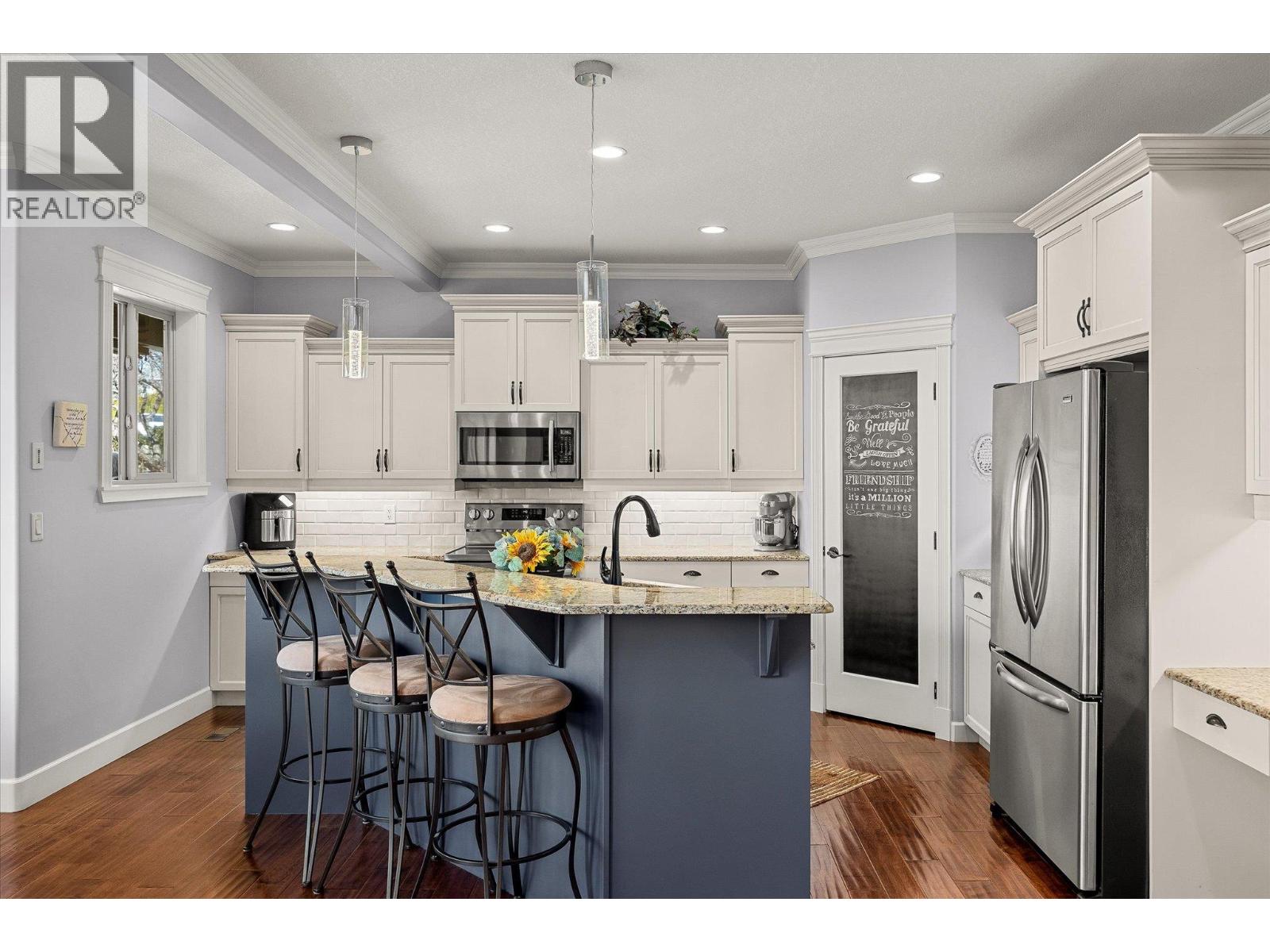 Welcome to this exceptional 4-bedroom + den, 4-bathroom family home, perfectly positioned on a quiet cul-de-sac in the highly sought-after Black Mountain community. Offering a seamless blend of luxury, versatility, and income potential, this property features a beautifully finished 1-bedroom, 1-bathroom in-law suite—ideal for extended family or Airbnb revenue. This home showcases a bright, open-concept layout filled with natural light and big lake views. The inviting living room is anchored by a cozy gas fireplace, while the well-appointed kitchen flows effortlessly into the dining and living areas—perfect for hosting family and friends. The spacious primary suite is a true retreat, complete with a walk-in closet and a luxurious ensuite. Additional bedrooms and a versatile den offer flexibility for growing families. Curb appeal shines with low-maintenance synthetic turf in the front yard. The oversized garage provides ample space for vehicles, tools, and all your Okanagan lifestyle toys. Step out back to your private oasis—featuring a large covered deck, ideal for morning coffee or evening sunsets. The tiered, thoughtfully landscaped backyard offers space to unwind and entertain, and is hot tub ready for year-round enjoyment. Located in a peaceful, family-friendly neighbourhood close to schools, parks, and endless outdoor recreation, this home truly checks all the boxes. Book your private showing today. (id:58842)