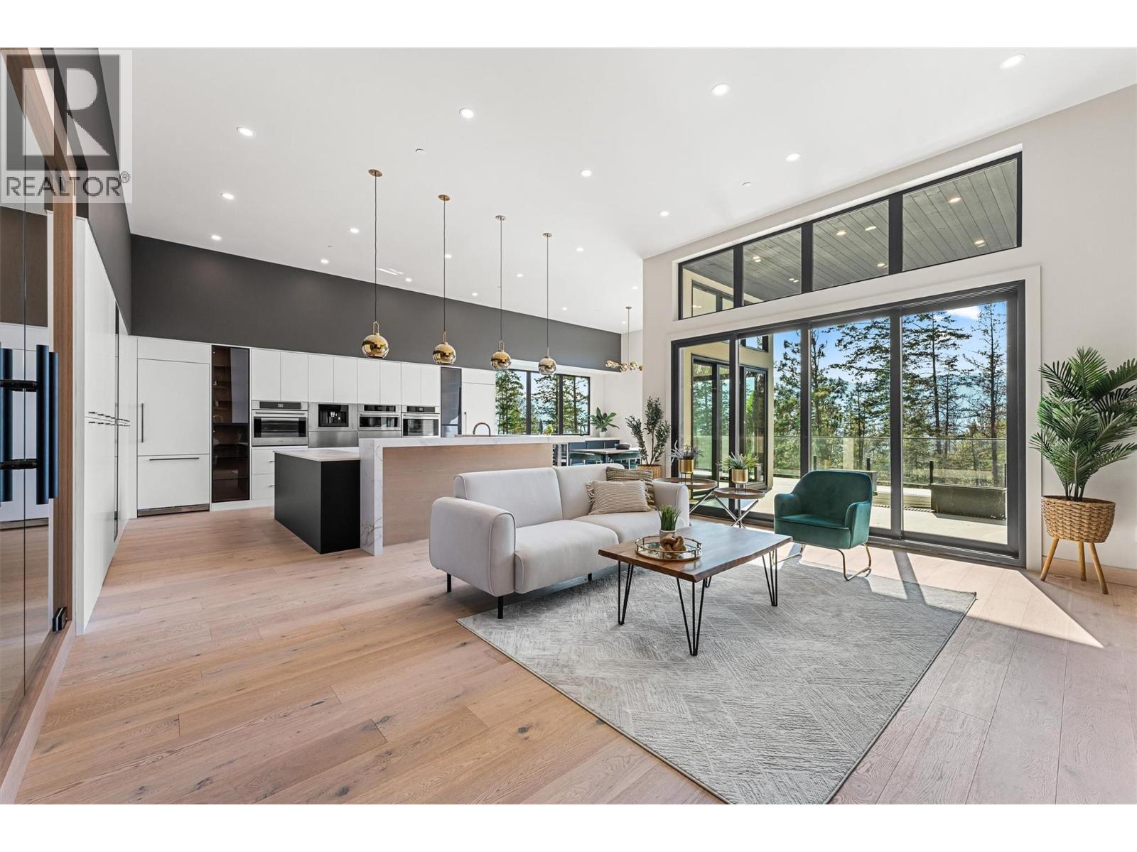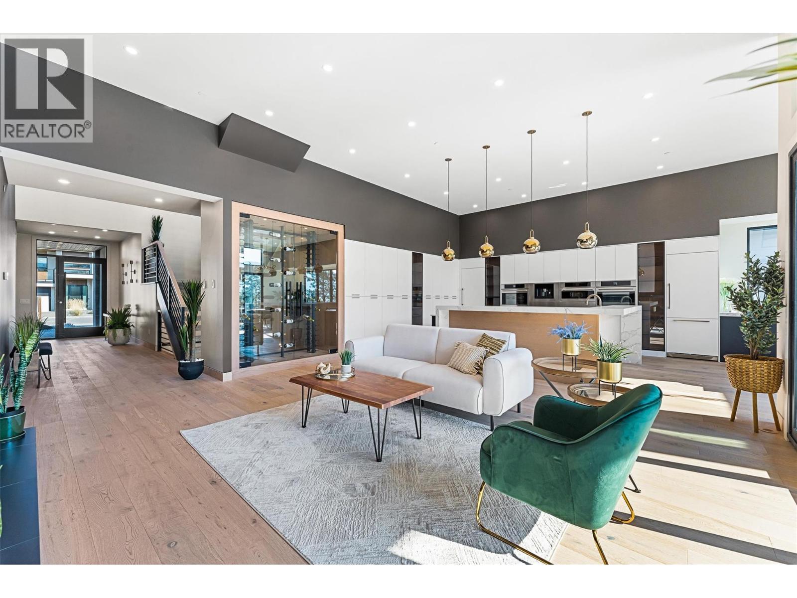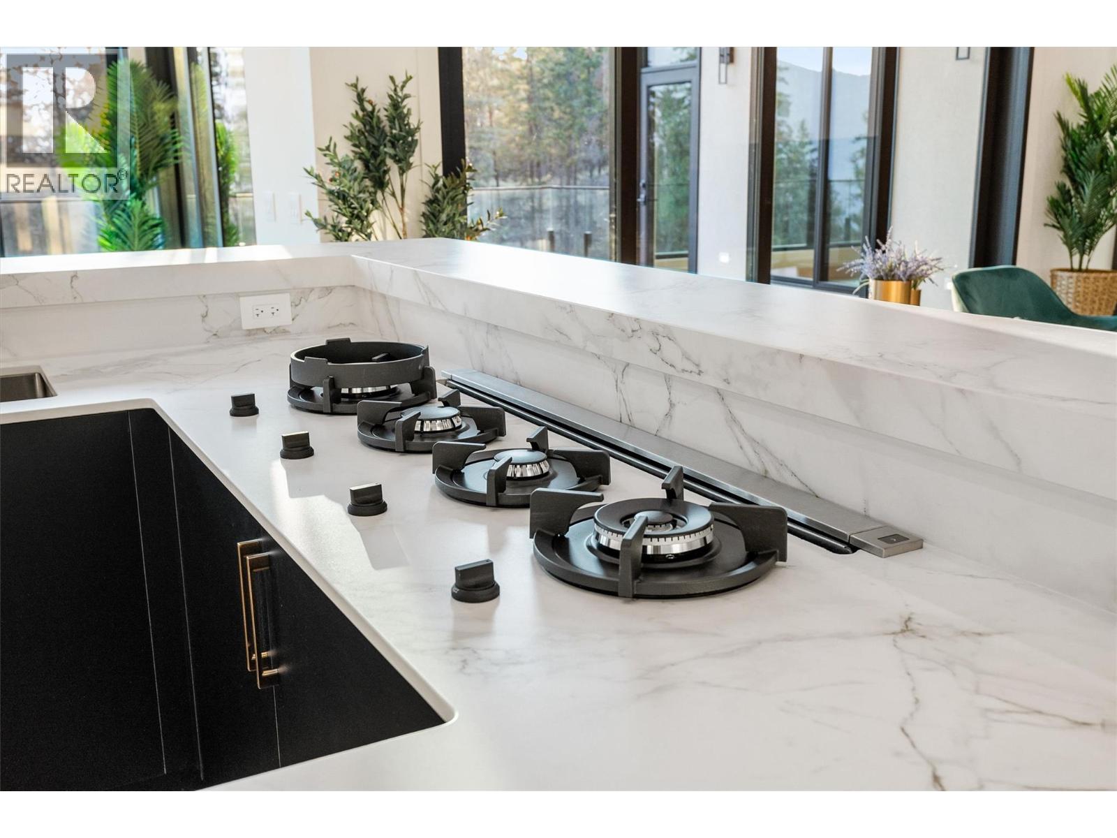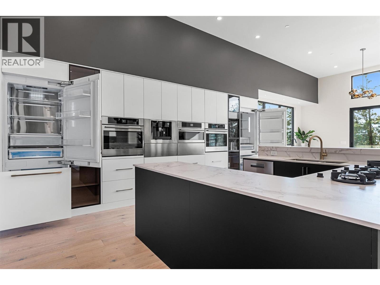 Brand New! Sprawled over 3 levels & 5400+ square feet, this home offers 5 beds +den & 4 baths with the Primary on Main. The kitchen features a Fulgor Milano appliance package w/ dual panelized fridges, 2-wall ovens w/warming drawer & speed oven, built-in coffee maker & custom Pitt Danau cooktop draped with Dekton solid surfaces. Upstairs is designed with a wet bar/entertaining area & opens wide to a huge Roof Top Patio w/ Lake Views (roughed in for hot tub and fire table). The lower level has a yoga room with rubberized floor, wet bar with bar height seating and multiple TV's for Sunday sports. It is also highlighted with a flex room waiting for your creative ideas. A Golf Simulator Room? Theater room or huge Gym? The options are endless. Other features include; White oak hardwood throughout, a showcase wine display, linear gas fireplace & in-floor heating in all baths. Life at Lakestone includes 2 multi mullion dollar amenities center's with pools, hot tubs, gyms along with access to multi-sport courts and over 25km of hiking and nature trails to enjoy. Price is + GST (5%). This Home is National Finalist for Home of the Year, built by award winning Vicky's Homes with all your dreams in mind. Come see it today! (id:58842)