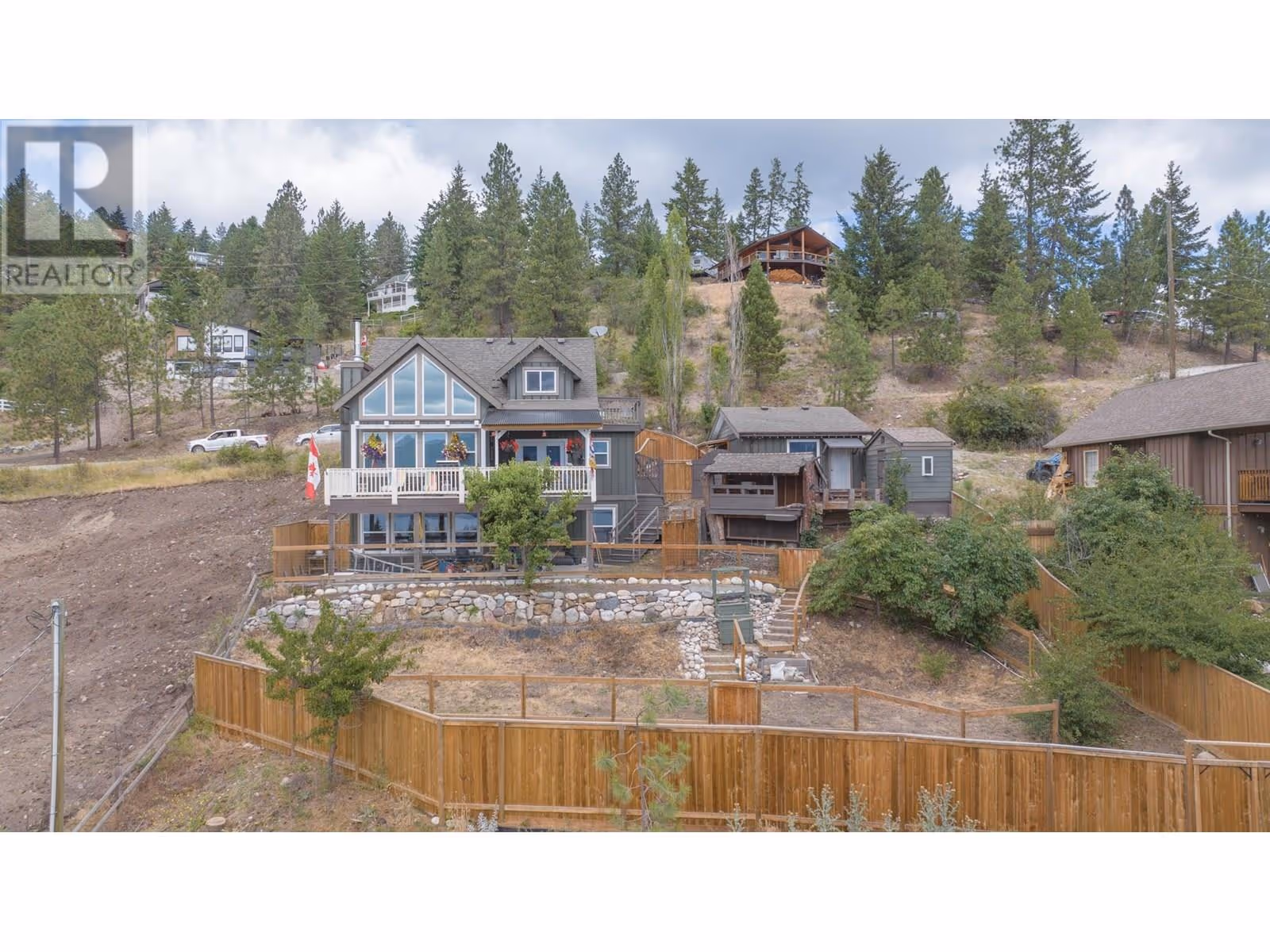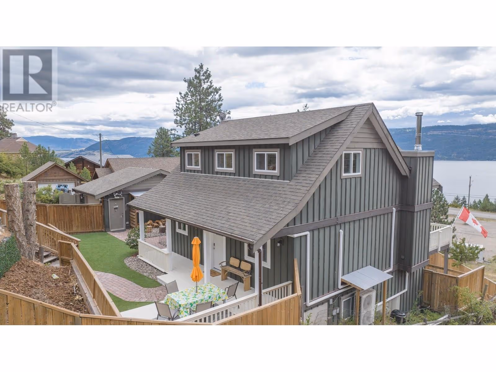 Welcome to your slice of heaven—where peaceful lake views, modern comfort, and thoughtful design come together in perfect harmony. This custom-built 4-bedroom, 3-bath home offers a warm, functional layout ideal for families, retirees, or anyone seeking a serene lifestyle. The main level features an open-concept kitchen, dining, and living area with expansive lake views, soaring cathedral ceilings, oversized windows, and a cozy, energy-efficient riverstone fireplace. A newly installed heat pump keeps you comfortable through the Okanagan seasons, while the oversized, partially covered deck invites you to relax and soak in the surroundings from spring to fall. The walkout basement includes a fully self-contained (non-legal) suite, perfect for guests, extended family, or income potential. Outside, the fully fenced yard offers low-maintenance AstroTurf, a pear tree, and two mature plum trees. Additional highlights include a 16x24 heated detached shop, a brand-new water system with UV light, reverse osmosis, and water softener, plus surge protector and fast speed Telus Fiber internet for those who work from home. With the charm of country living and the convenience of Amazon, Costco, and Save-On deliveries, this is the perfect retreat to call home. (id:58842)