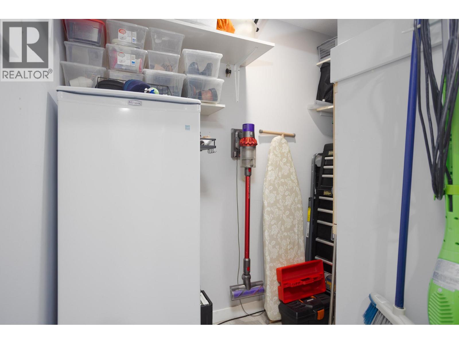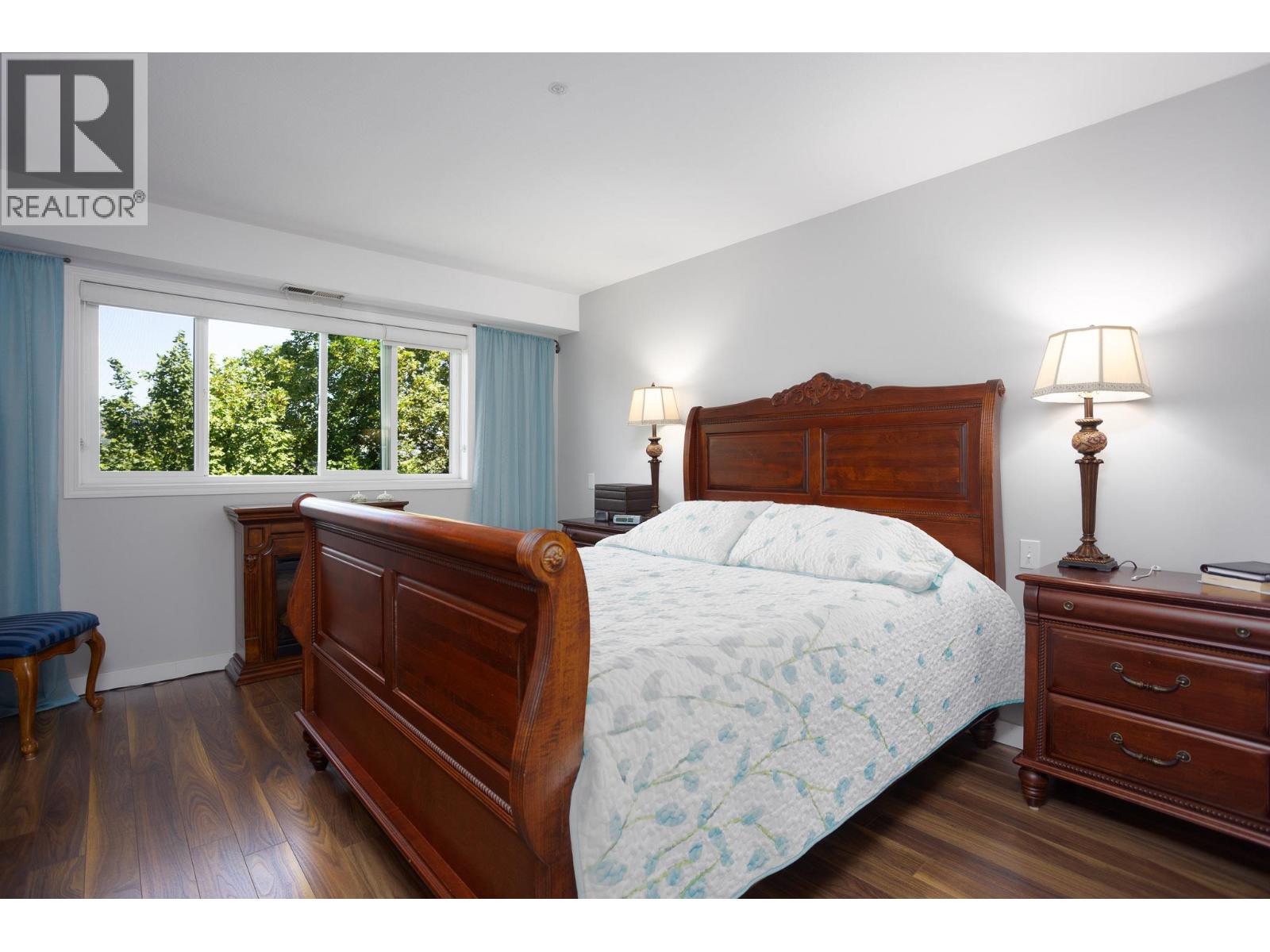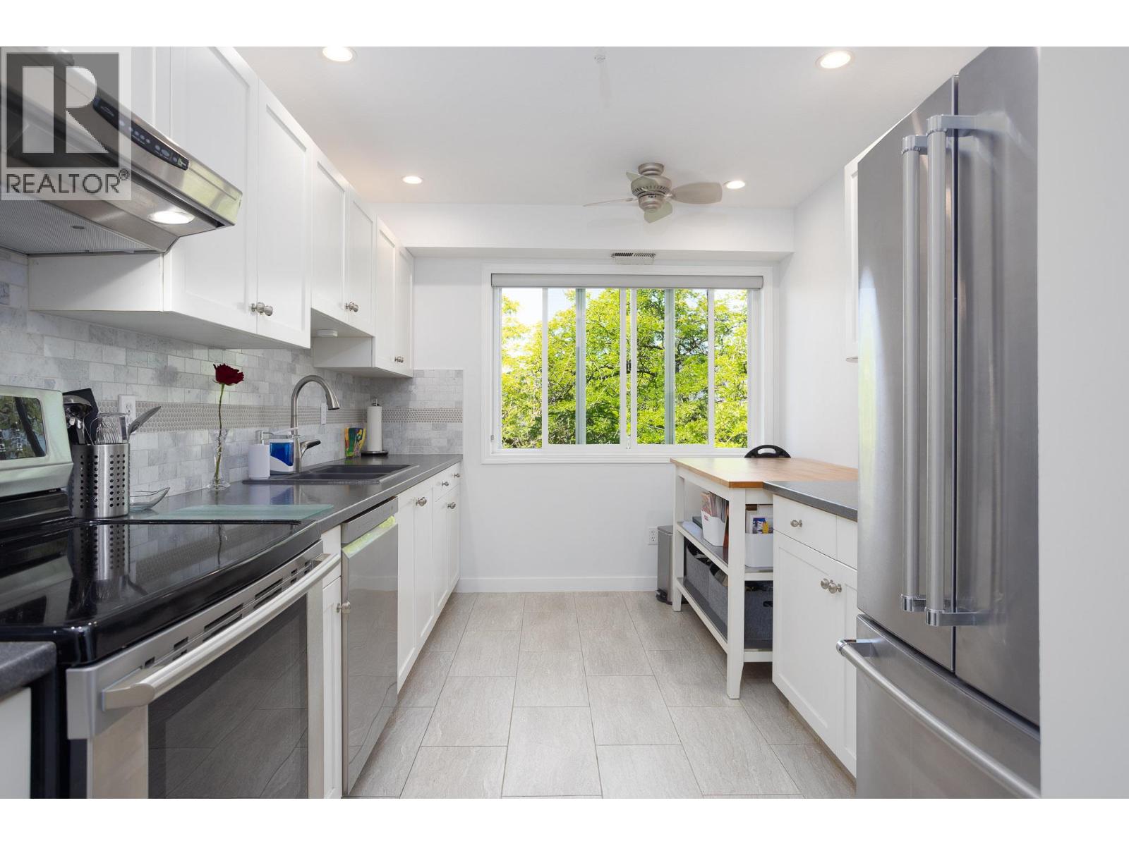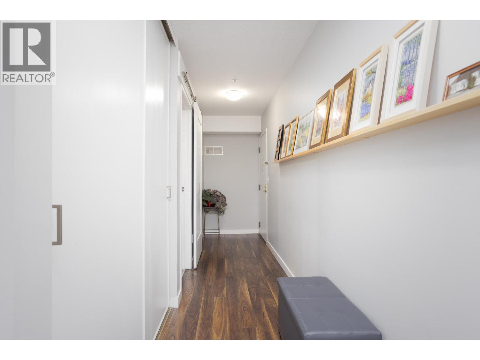 Welcome to Wedgewood! This UPDATED quiet and spacious 55+ northwest-facing corner unit offers over 1,600 sqft of beautifully updated living space with 2 bedrooms plus a den. Ideally located near Millbridge Park and just minutes from Hwy 97 and across from shopping. Enjoy peace of mind with all-new windows and modern upgrades throughout, including laminate and vinyl plank flooring, LED pot lights, and forced air heating and cooling throughout. The stylish kitchen features stainless steel appliances with an induction cooktop. French doors open to a bright den with a window, while the oversized living room includes roller blinds and access to the enclosed balcony - complete with views of Knox Mountain, opening windows, and a sliding glass door. The king-sized primary suite includes a walk-through closet and private ensuite with a walk-in tub and generous counter space. The second bedroom offers a full closet, while the main bath features a modern glass and tile walk-in shower. The oversized laundry room truly is a dream with built-in cabinets, a folding area, sink, and built-in vacuum. The unit also includes 1 underground parking stall and storage locker. (id:58842)