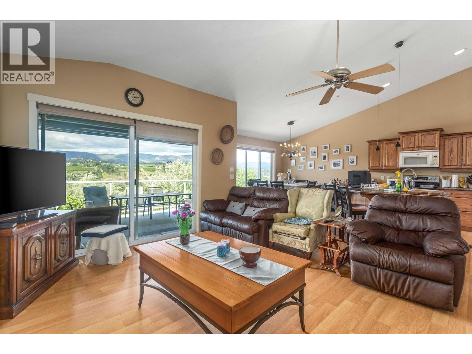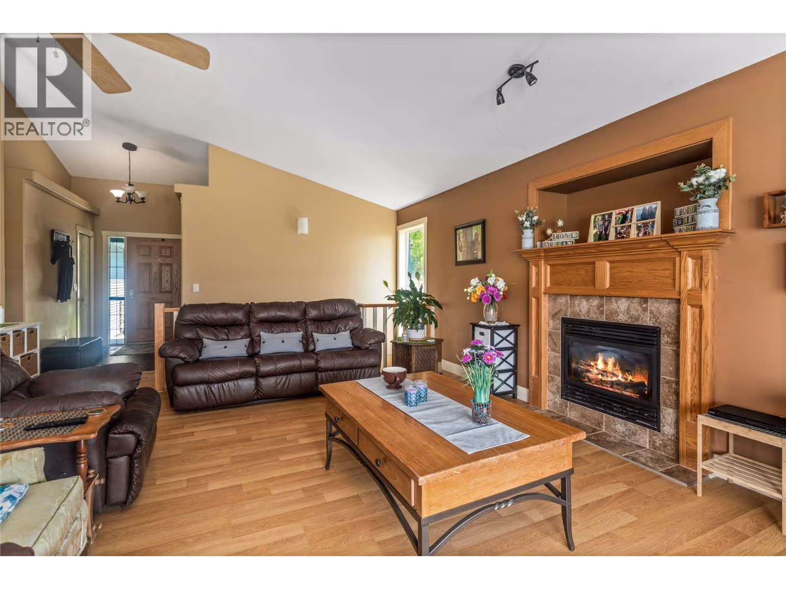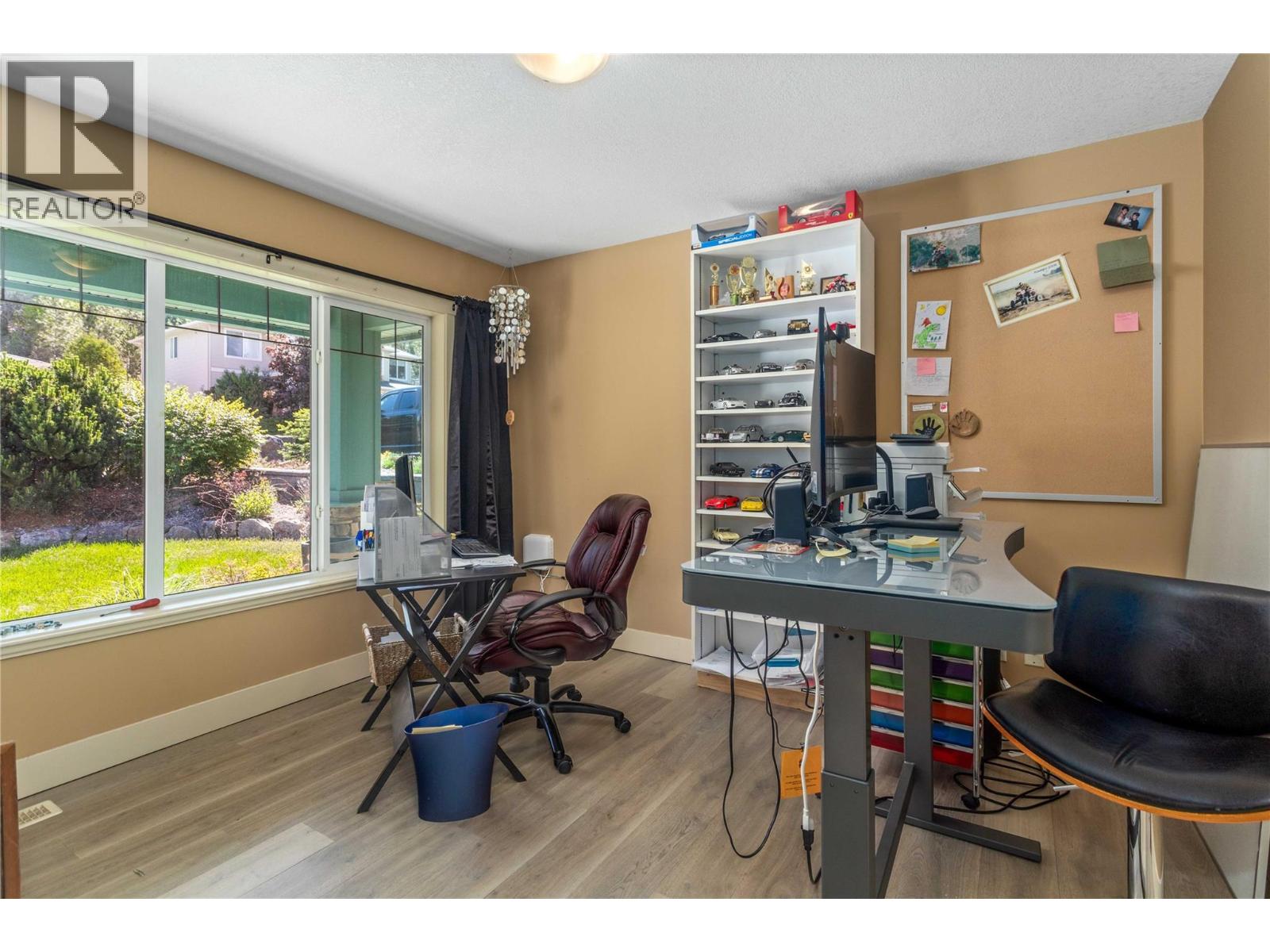 This 4 bedroom plus den, 3 full bath walk out Rancher home is ready for its new family! Located in a desirable area of Lake Country with pleasant valley views that provide absolutely stunning sunsets. Vaulted ceilings and large windows allow plenty of natural light to create a warm and inviting atmosphere. Open concept living room with gas fireplace and vaulted ceilings lead to the kitchen where you will find a functional workspace with an island and seating space. 2 bedrooms with a den that could be used as a 3rd bedroom on the main floor along with 2 full bathrooms. Downstairs are 2 more bedrooms and a full bath. There is a large laundry room that could be used as a kitchen space in the basement. Lower level has all vinyl plank flooring and direct grade level access to the yard. AC, underground irrigation and plenty of parking on the driveway! Great family home in a very desirable neighbourhood. Check out the virtual tour in the media tab! (id:58842)