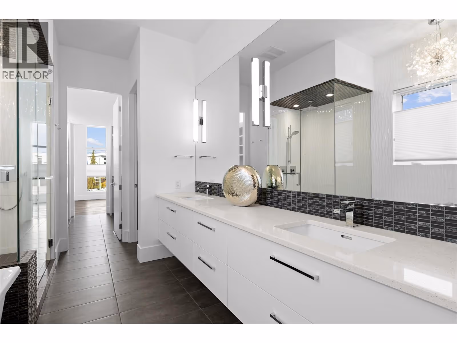 Welcome to the Pinnacle of Luxury Living in this Exquisite Custom Home in Woodland Hills Estates. One of The most Impressive homes in Kelowna’s Exclusive Lower Mission. This stunning estate underwent a substantial renovation in 2024, with no detail overlooked. Offering an exceptional blend of elegance, grandeur, and modern design, it is a true Masterpiece. The interior showcases soaring ceilings, high-end finishes and top-quality renovations. The chef’s kitchen is equipped with premium appliances, elegant cabinetry, and thoughtfully designed spaces for both cooking and gathering. The main floor primary suite is a private retreat, complete with ensuite, walk-in closet and bonus dressing room or nursery. A second suite is located on the upper level, which also features another bedroom or office and spacious family room. The lower level offers a generous sized media/games room with custom panels, bar and wine feature, 2 more bedrooms and gym. Designed for both relaxation and entertainment, the home boasts a beautifully landscaped backyard oasis with a private inground pool. Surrounded by lush new landscaping and artificial grass, the outdoor space is both stunning and low-maintenance. The property offers lake views from both the North and South sides, ensuring breathtaking scenery throughout the day. Every aspect of this home has been meticulously upgraded to the highest standards, offering a rare opportunity to own this Polished, Luxurious and Sophisticated Estate. (id:58842)