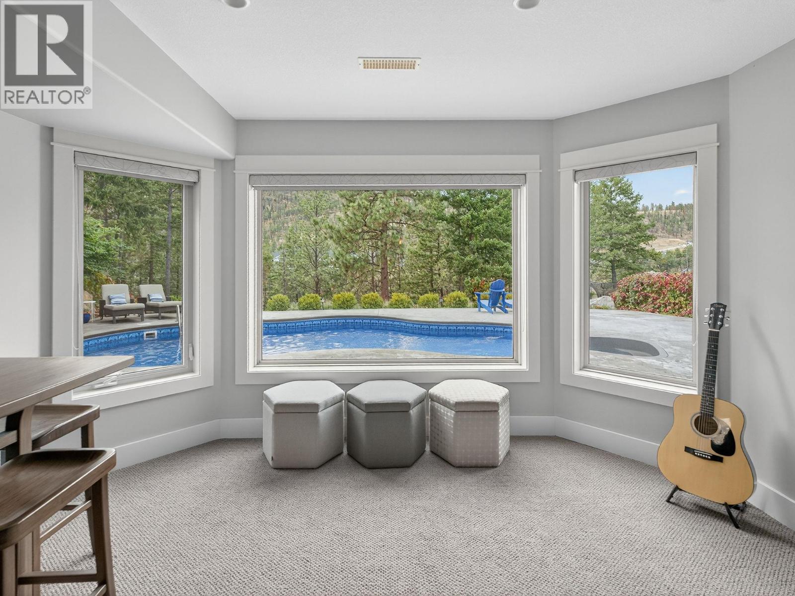 Elevated Setting with Serene Hidden Lake Views. Discover this elegant 4-bedroom, 4-bathroom sanctuary offering over 3,600 sq ft of refined living space with calming views over Hidden Lake. Thoughtfully designed for both comfort and sophistication, this meticulously maintained home features a Carolyn Walsh–designed gourmet kitchen with granite countertops and premium finishes—an ideal centerpiece for everyday living and entertaining. The open-concept layout flows seamlessly to a sunlit backyard retreat, complete with a shimmering pool perfect for relaxing summer afternoons. The main level hosts a peaceful primary suite, while the lower level is built for entertaining with a spacious rec room, wet bar, and custom built-ins. A whole-home sound system enhances every moment, whether you're enjoying quiet evenings or hosting lively gatherings. Enjoy year-round beauty—from skating on Hidden Lake in winter to soaking in tranquil views through every season. Ideally located near schools, UBCO, and the airport, this home offers a rare blend of luxury, lifestyle, and convenience. (id:58842)