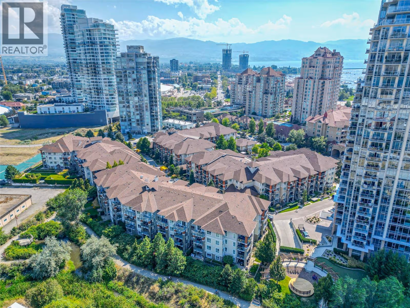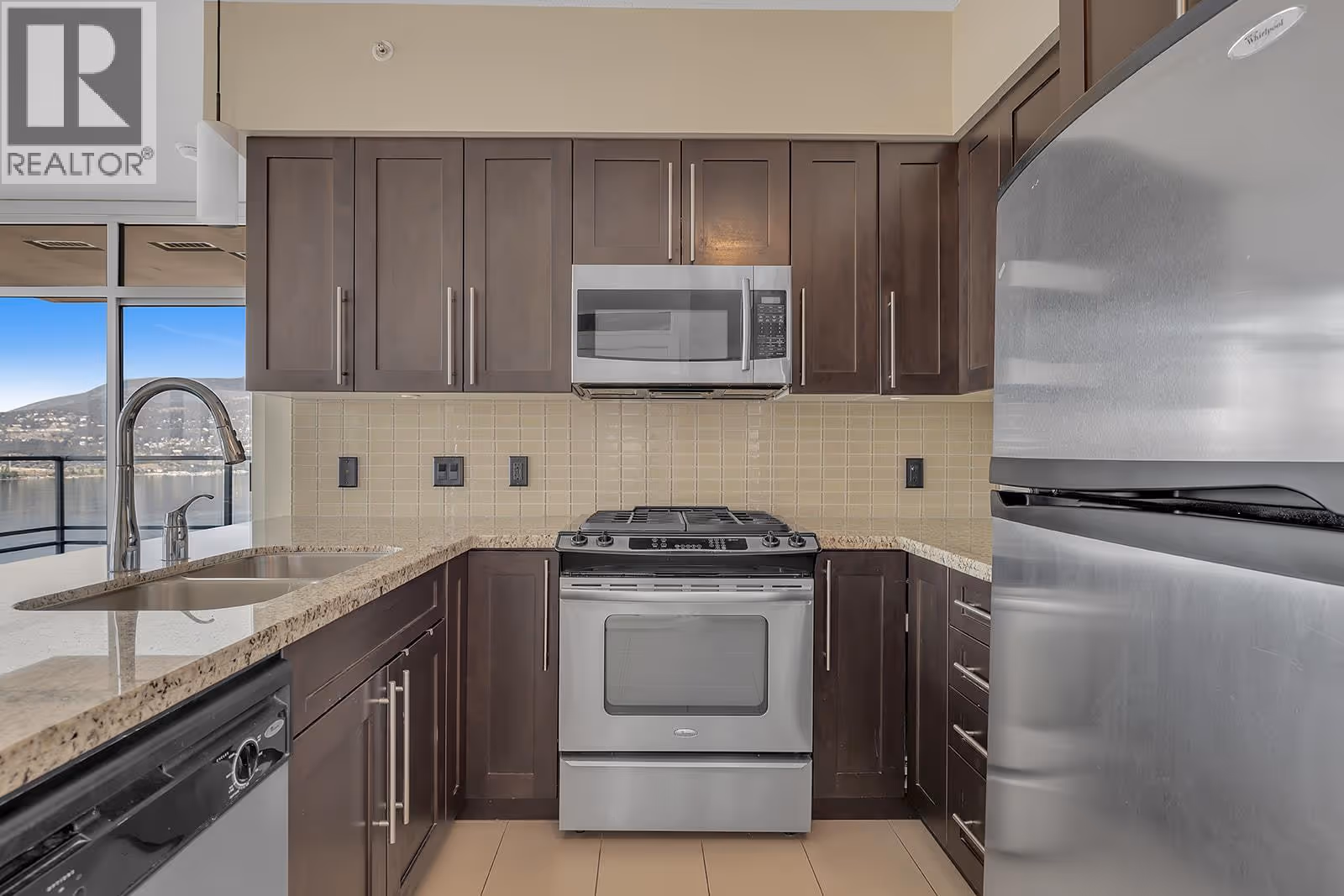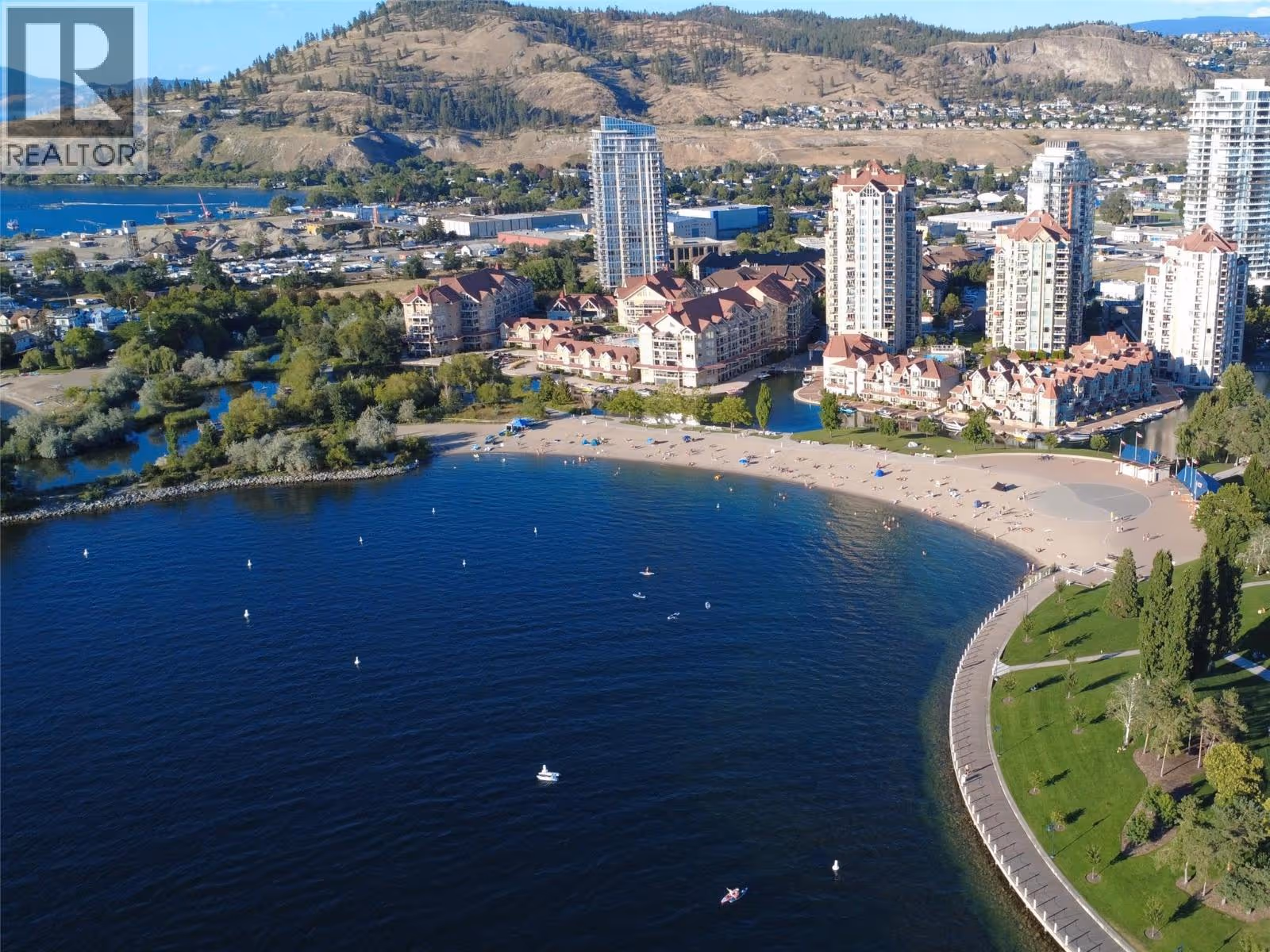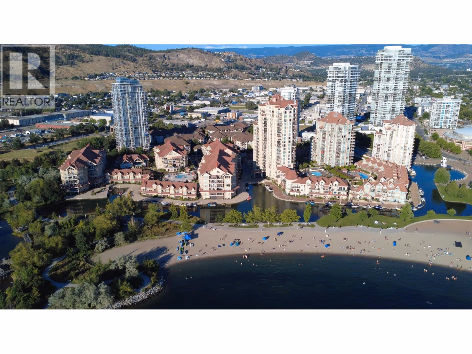 You’ll be impressed by this 2-bedroom plus den condo, offering stunning, unobstructed views of the lake, city, mountains, bridge, bird sanctuary, and yacht club. Perfectly located in the heart of downtown Kelowna, just steps from the beach, this home is perfect for the Okanagan lifestyle. From the moment you walk in, you’ll be greeted by breathtaking panoramic views through the expansive wall of windows in the living room. The flooring has been beautifully updated throughout, and the kitchen features a gas stove, granite countertops, and a generous breakfast bar, perfect for bar style seating. The open layout flows seamlessly onto the deck, extending your living space outdoors where you can relax with a morning coffee or evening glass of wine while soaking in the incredible views. The primary bedroom offers the same spectacular outlook, along with a walk-in closet and a full ensuite featuring double sinks, a separate shower, and tub. The second bedroom, set on the opposite side for added privacy, also enjoys beautiful views. Plus there is convenient access to a second bathroom with a walk-in shower and a den you can use for an office, bar or added living space. As an owner, you'll enjoy access to the Cascade Club, where you can unwind by the outdoor pool, soak in one of the two hot tubs, or stay active in the fitness centre. The club also features pool tables and a rentable guest suite for visiting friends or family. (id:58842)