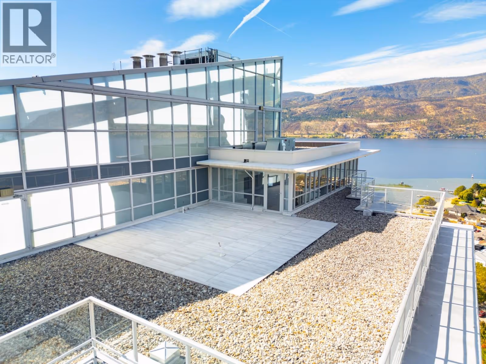 Welcome to Penthouse 1 at Waterscapes, an exceptional residence offering panoramic views of downtown Kelowna, Okanagan Lake, & the surrounding mountains. This fully renovated and redesigned penthouse is stunning & boasts a modern, sophisticated living space & an additional 1,400 sq ft rooftop terrace for outdoor living. The interior was designed with high-end finishes: hydronic in-floor heating throughout, engineered hardwood floors, porcelain countertops, Magnetic track lighting w/ moveable light components, & Integrated LED strips throughout. The open-concept layout features 17-foot ceilings, expansive windows, & a floating LED-lit staircase with glass railings leading to the rooftop patio. The Poliform kitchen is a culinary masterpiece with Gaggenau appliances (a gas cooktop, soft-touch fridge). Enjoy sensational lake views from the primary retreat. The spa-inspired en suite features Dornbracht fixtures and a spacious rain shower with a fully customized Poliform walk-in closet. One add’l bed w/ an en suite and a glass-enclosed office complete the space. SMART home technology: Ecobee thermostat, motorized solar shades, Lutron lighting. The private rooftop terrace features 3 gas lines, power outlets, a waterline, and plans for an outdoor kitchen, pergola, and fire pit. W 2 prime underground parking stalls, 3 storage lockers, and access to Waterscapes’ Cascade Lounge amenities, including a pool, gym, and sauna, this penthouse combines luxury, comfort, and community living. (id:58842)
