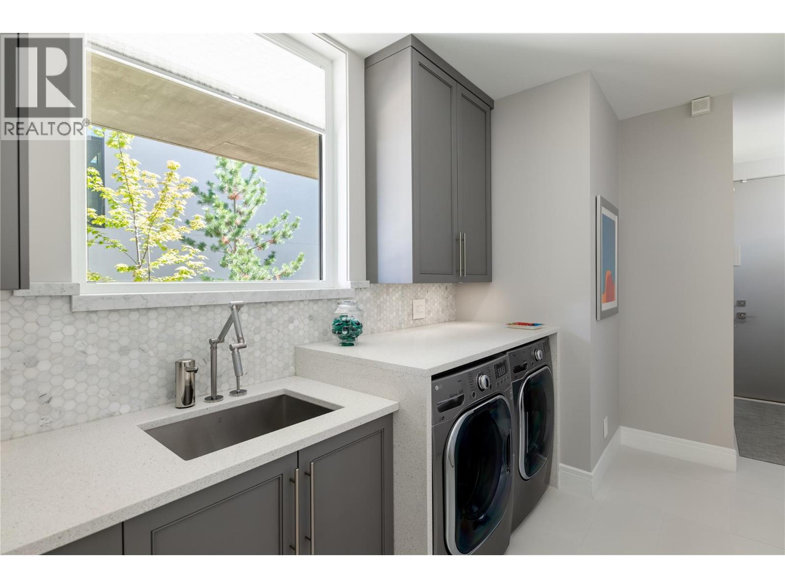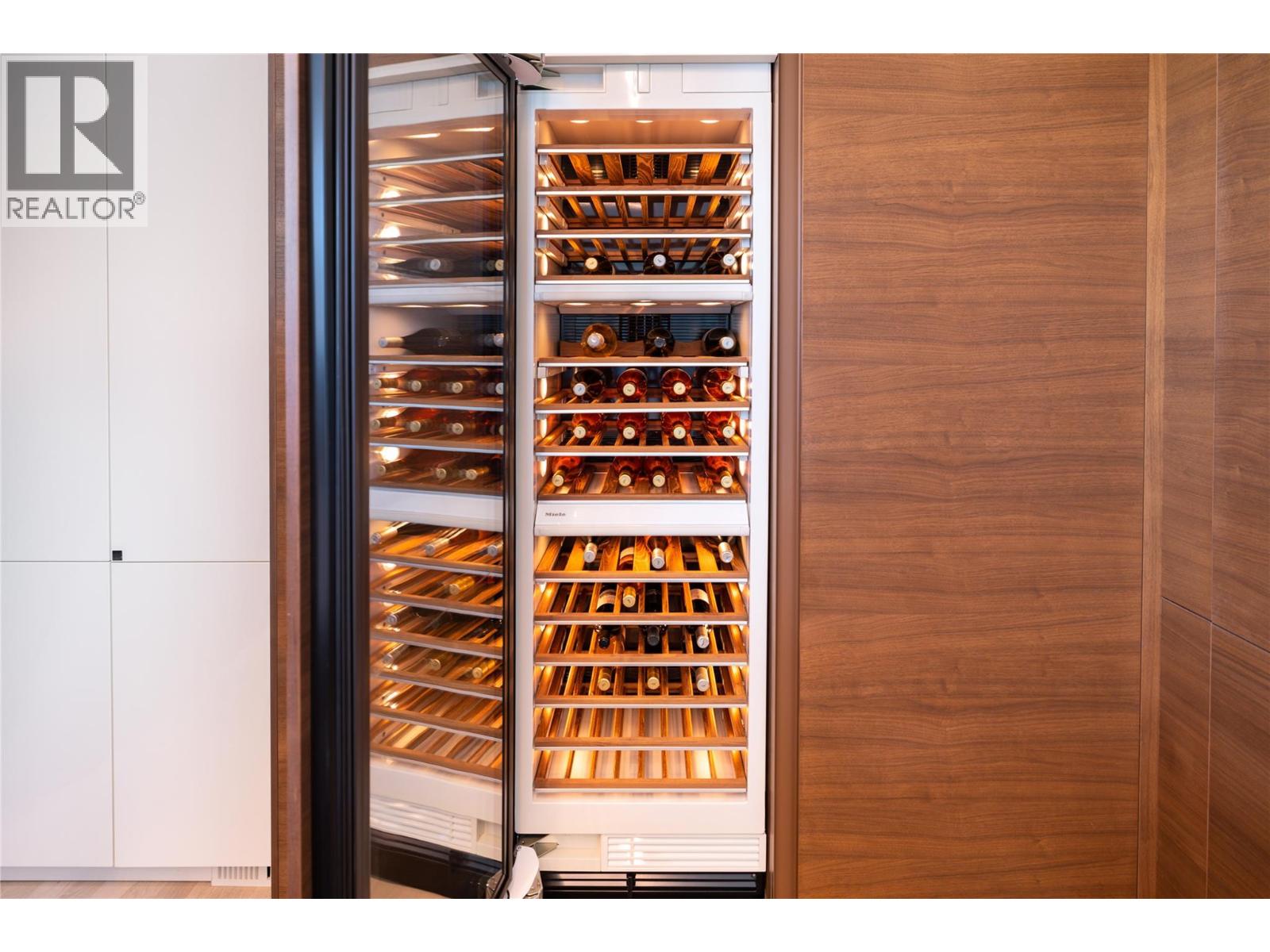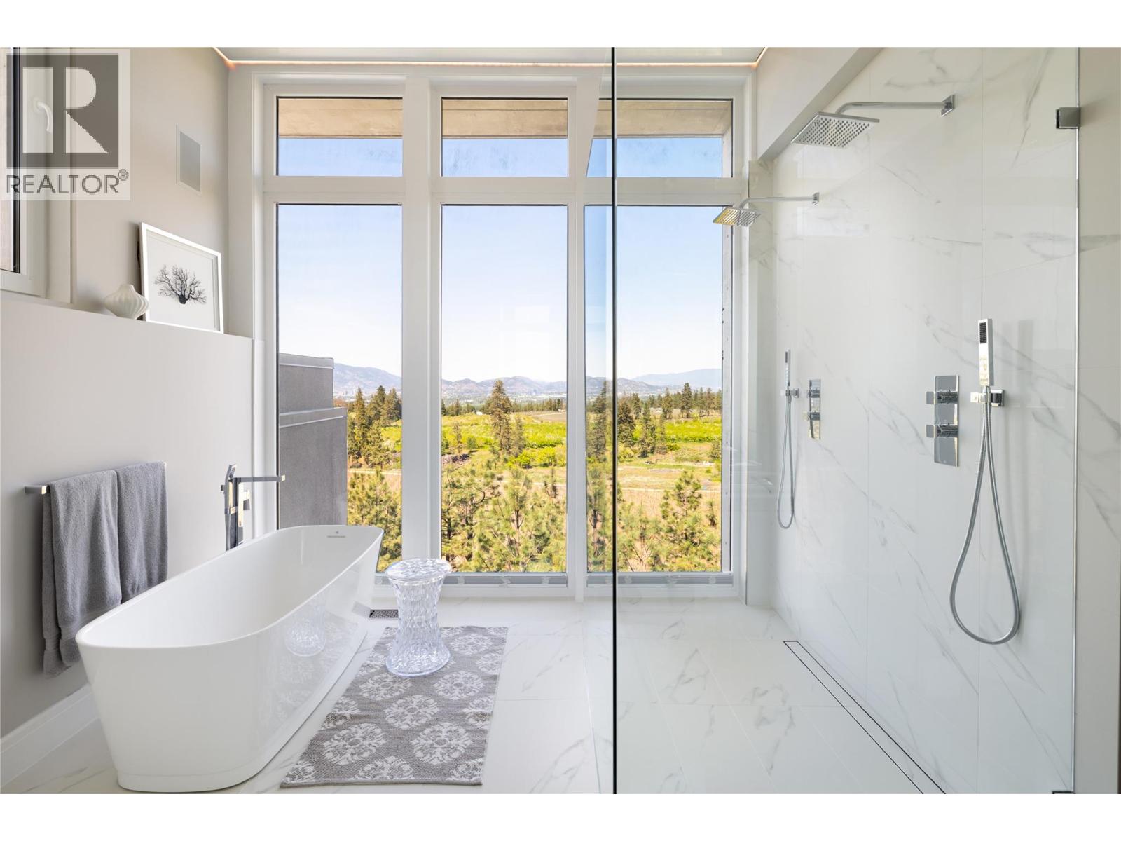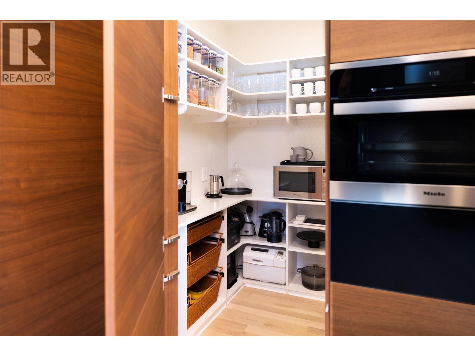 Discover extraordinary design and elevated living in this striking concrete-and-glass home in Kelowna’s coveted Lower Mission. This one-of-a-kind residence captivates with panoramic views of Okanagan Lake, the city skyline, and surrounding vineyards. From the moment you arrive, the home’s bold form and refined craftsmanship set the tone. A dramatic floating-stair staircase, European white oak floors, and high-gloss stretch ceilings with ambient inset lighting underscore the sophisticated aesthetic. Floor-to-ceiling commercial-grade windows capture the landscapes, while open-concept living flows effortlessly to the outdoors. Entertain on a grand scale: full nano-doors open from the main floor to multiple patios and seating areas, including a built-in eating bar with a nano pass-through window. Head up to the rooftop patio and unwind in the hot tub or the eye-catching infinity pool—designed to appear as though it’s floating above the terrain. The designer kitchen is built for both performance and show-stopping style: two-tone Liecht cabinetry, top-of-the-line Miele appliances. A built-in espresso machine, double ovens, cooktop, fridge, freezer, wine fridge, all seamlessly integrated to host gatherings of any magnitude. See firsthand how this home sets a new standard for contemporary living in Kelowna. (id:58842)