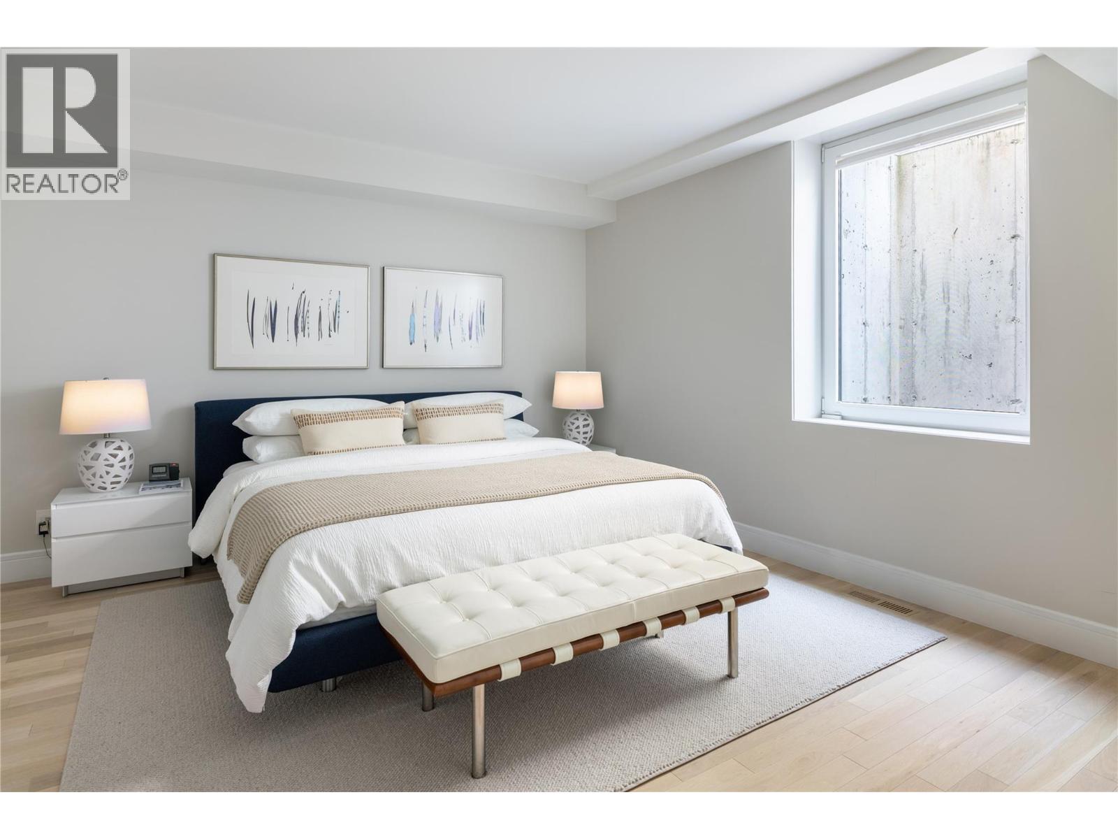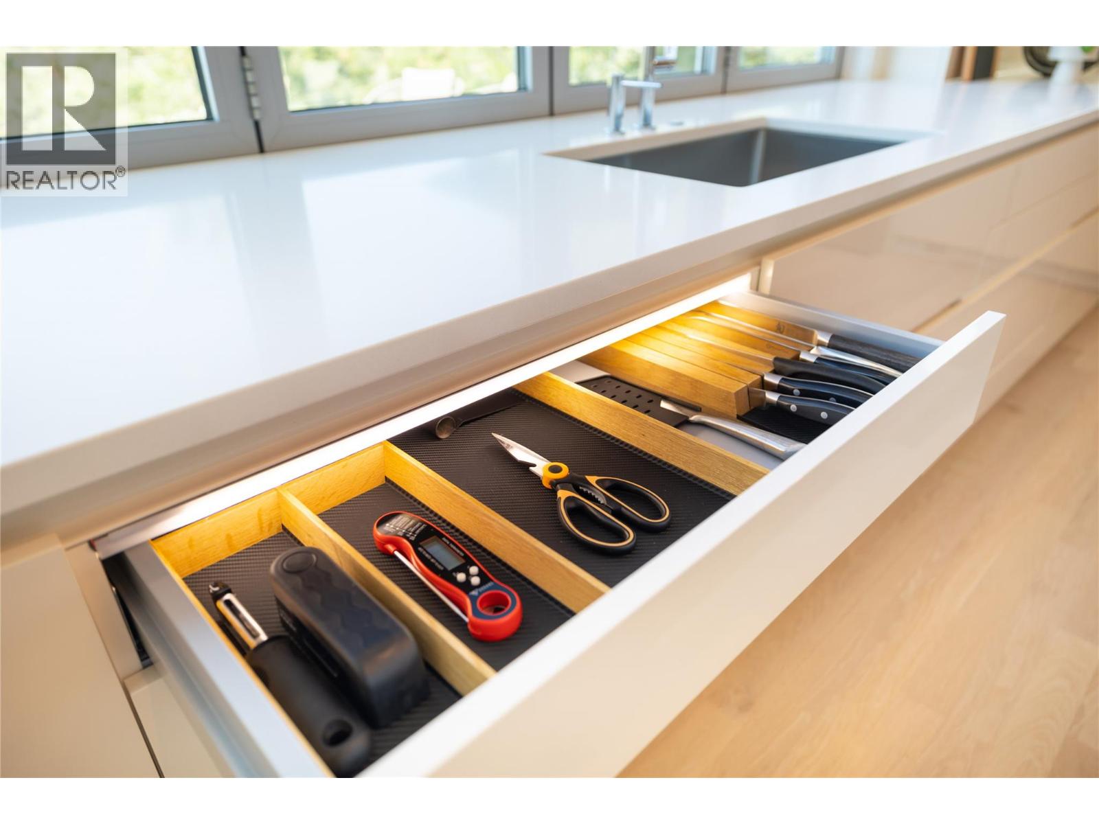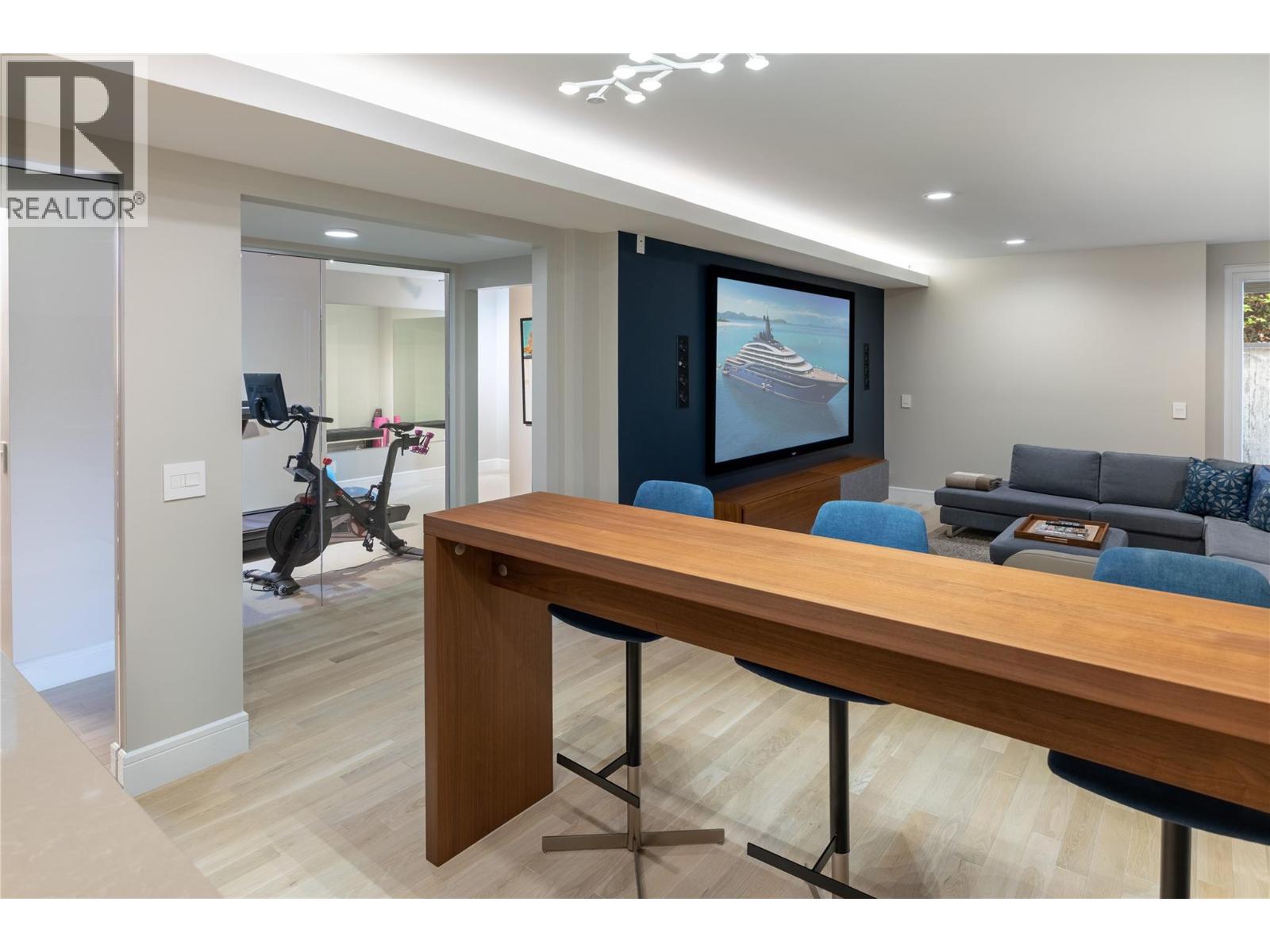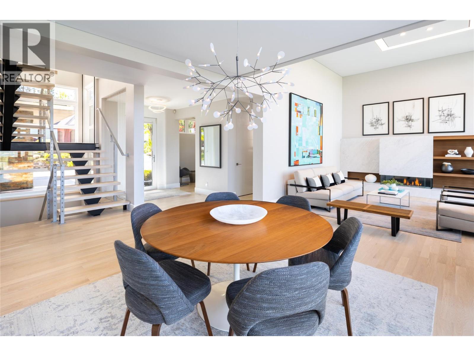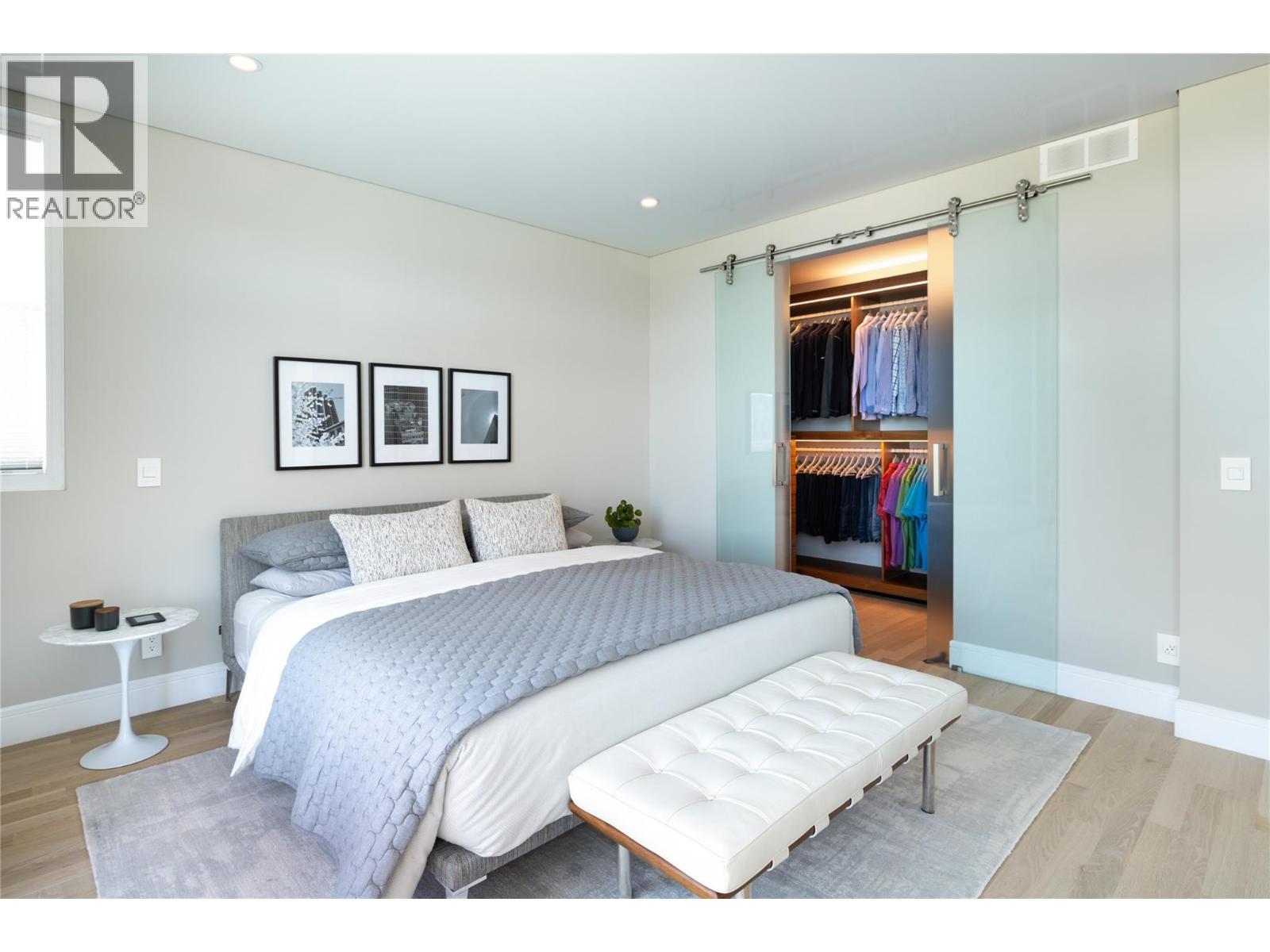 Discover extraordinary design and elevated living in this striking concrete-and-glass home in Kelowna’s coveted Lower Mission. This one-of-a-kind residence captivates with panoramic views of Okanagan Lake, the city skyline, and surrounding vineyards. From the moment you arrive, the home’s bold form and refined craftsmanship set the tone. A dramatic floating-stair staircase, European white oak floors, and high-gloss stretch ceilings with ambient inset lighting underscore the sophisticated aesthetic. Floor-to-ceiling commercial-grade windows capture the landscapes, while open-concept living flows effortlessly to the outdoors. Entertain on a grand scale: full nano-doors open from the main floor to multiple patios and seating areas, including a built-in eating bar with a nano pass-through window. Head up to the rooftop patio and unwind in the hot tub or the eye-catching infinity pool—designed to appear as though it’s floating above the terrain. The designer kitchen is built for both performance and show-stopping style: two-tone Liecht cabinetry, top-of-the-line Miele appliances. A built-in espresso machine, double ovens, cooktop, fridge, freezer, wine fridge, all seamlessly integrated to host gatherings of any magnitude. See firsthand how this home sets a new standard for contemporary living in Kelowna. (id:58842)