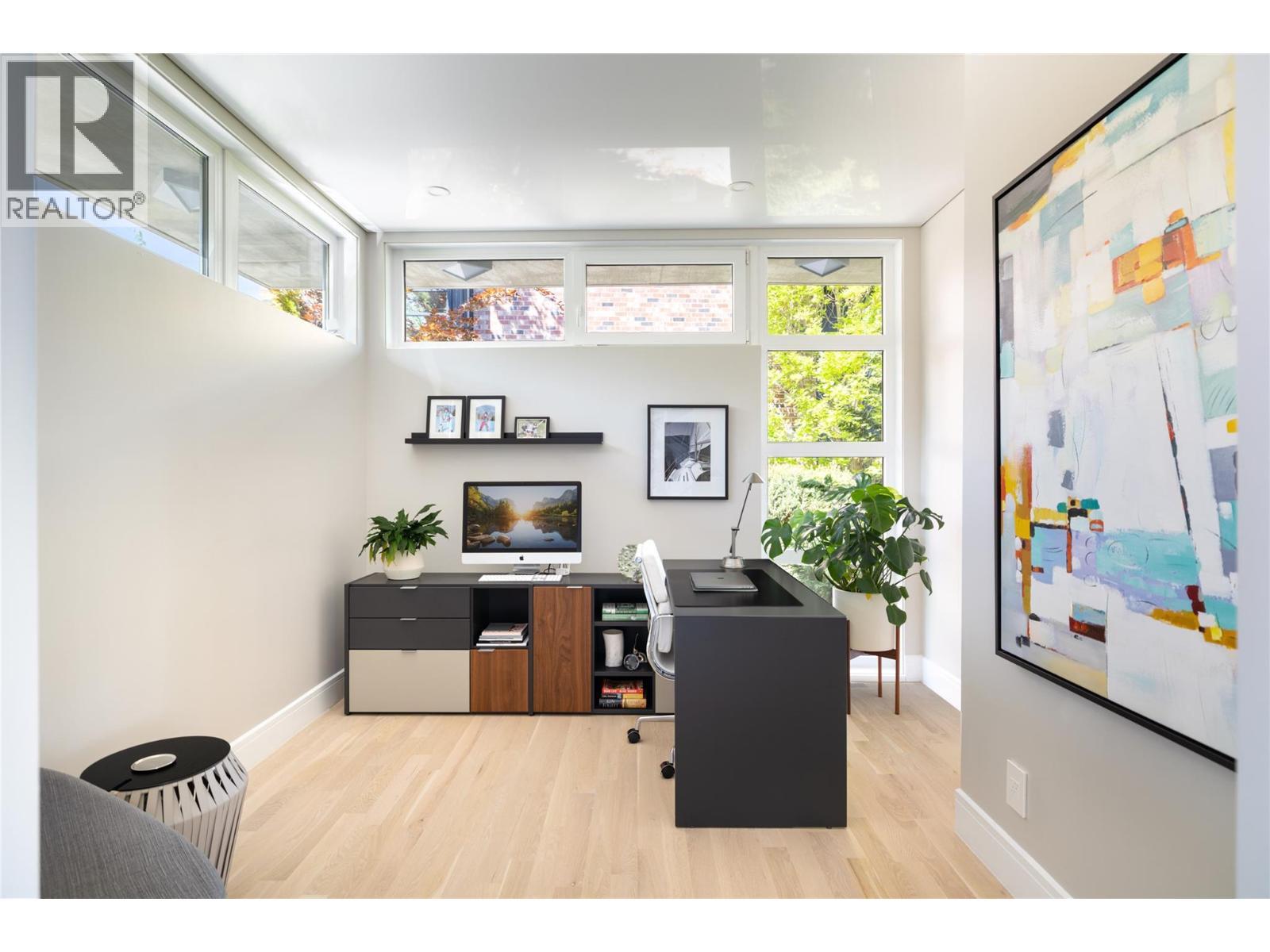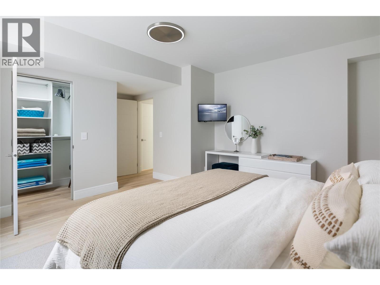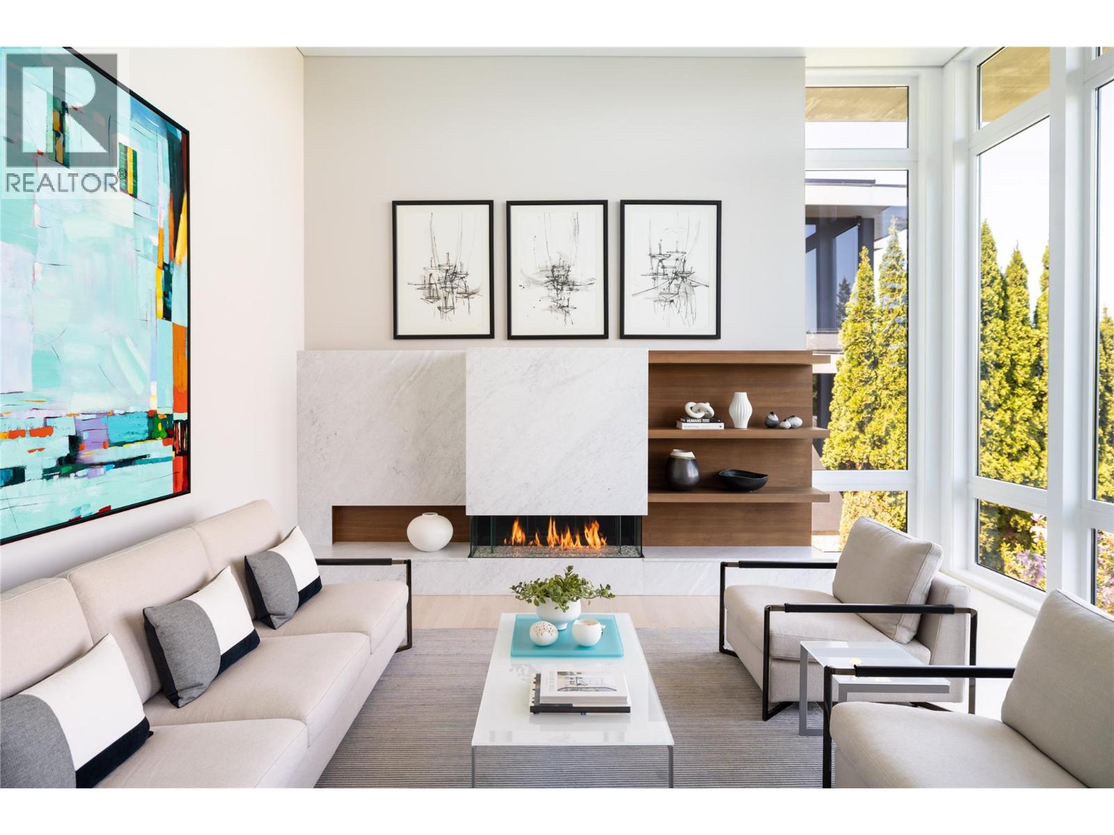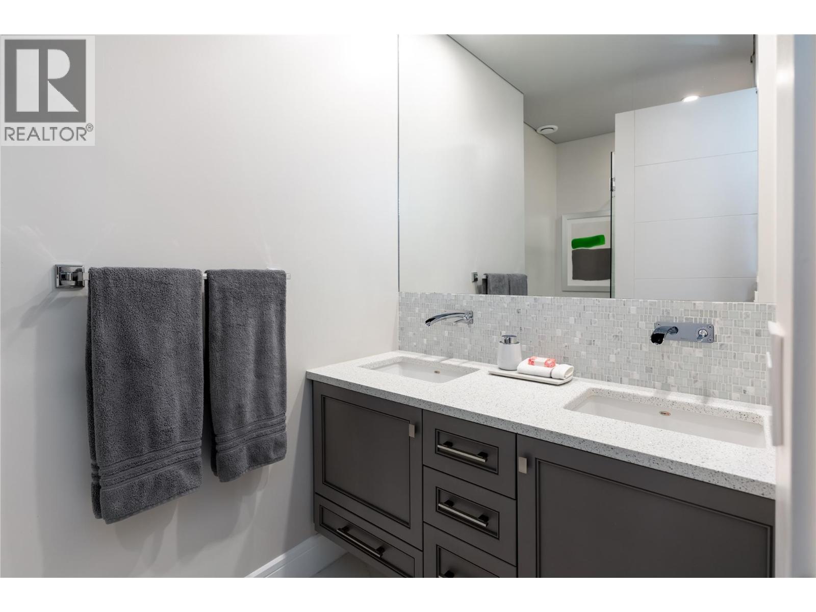 Discover extraordinary design and elevated living in this striking concrete-and-glass home in Kelowna’s coveted Lower Mission. This one-of-a-kind residence captivates with panoramic views of Okanagan Lake, the city skyline, and surrounding vineyards. From the moment you arrive, the home’s bold form and refined craftsmanship set the tone. A dramatic floating-stair staircase, European white oak floors, and high-gloss stretch ceilings with ambient inset lighting underscore the sophisticated aesthetic. Floor-to-ceiling commercial-grade windows capture the landscapes, while open-concept living flows effortlessly to the outdoors. Entertain on a grand scale: full nano-doors open from the main floor to multiple patios and seating areas, including a built-in eating bar with a nano pass-through window. Head up to the rooftop patio and unwind in the hot tub or the eye-catching infinity pool—designed to appear as though it’s floating above the terrain. The designer kitchen is built for both performance and show-stopping style: two-tone Liecht cabinetry, top-of-the-line Miele appliances. A built-in espresso machine, double ovens, cooktop, fridge, freezer, wine fridge, all seamlessly integrated to host gatherings of any magnitude. See firsthand how this home sets a new standard for contemporary living in Kelowna. (id:58842)