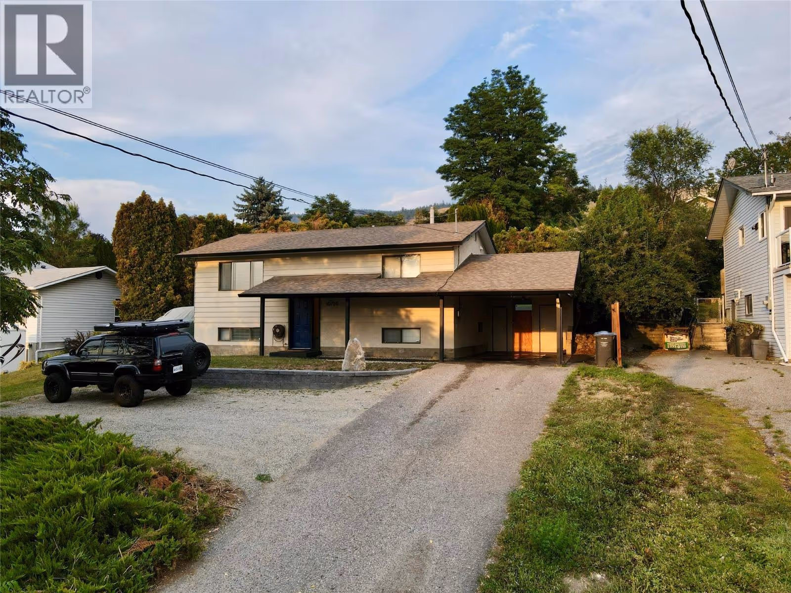 Welcome to your next home sweet home! This inviting property offers peaceful views, a spacious yard, and a brand-new deck that’s perfect for summer BBQs and family gatherings. With 3 bedrooms, 2 bathrooms, a shed, playhouse, and a fully fenced private backyard, it’s a wonderful mix of comfort and lifestyle. Upstairs features a bright living room with mountain views, a dining area, and a cheerful kitchen with walkout access to the new deck and patio. Two bedrooms and a full bathroom complete this level. The lower level adds flexibility with a large open space ideal for extra bedrooms, a home gym, office, or hobby room—tailored to your needs. You’ll also find the third bedroom, a second full bathroom, and the laundry/furnace room. Notable upgrades include a new kitchen backsplash, fir timber cabana, stylish feature walls, a 14-foot rear yard access gate, stucco exterior retaining wall, and Allan block landscaping in the front yard. Outside, enjoy an oversized front yard, big driveway, and a single carport for added convenience. Tucked in a friendly neighbourhood just steps from the Rail Trail, schools, shopping, and everyday amenities—this home truly checks all the boxes. (id:58842)