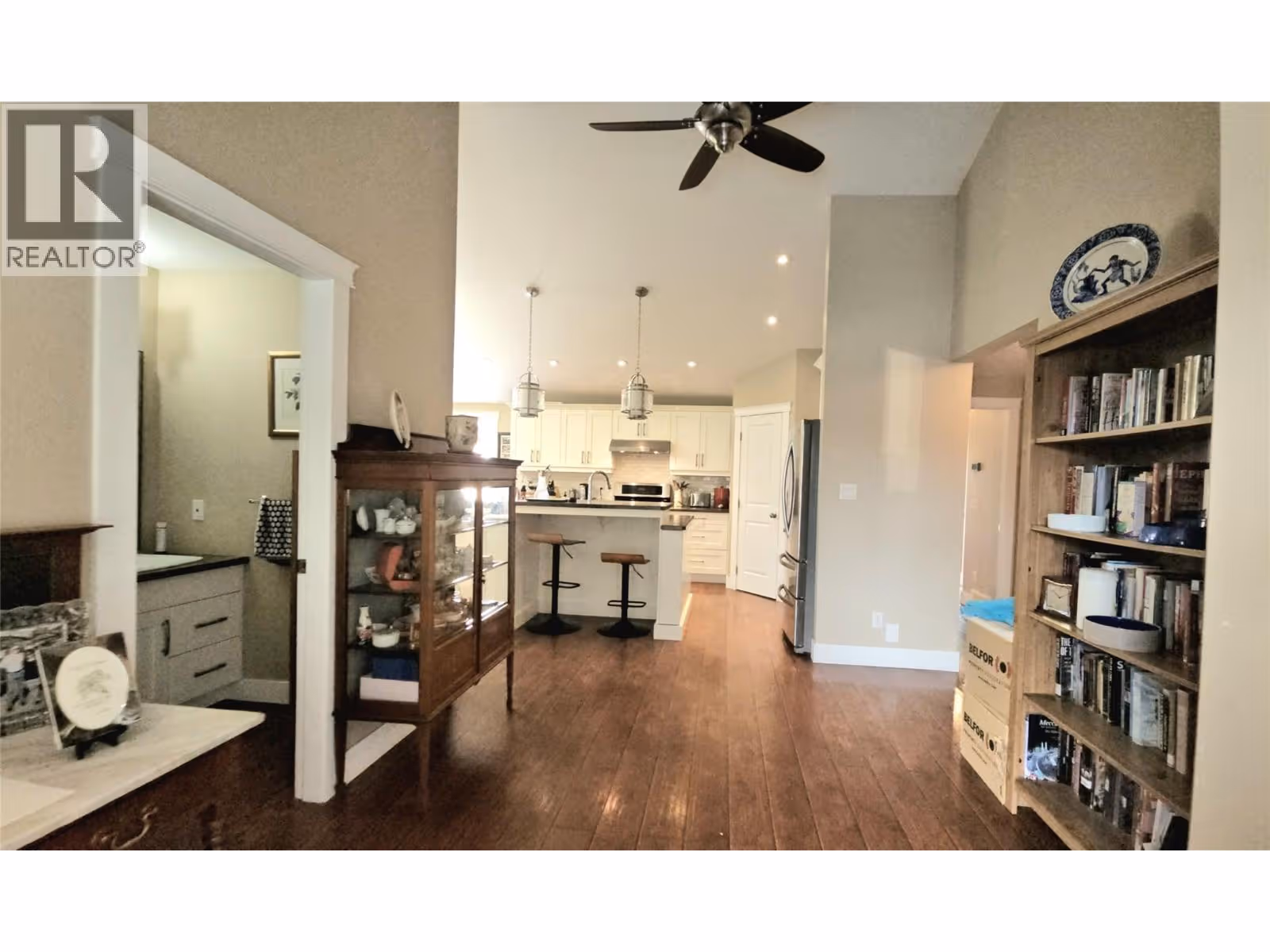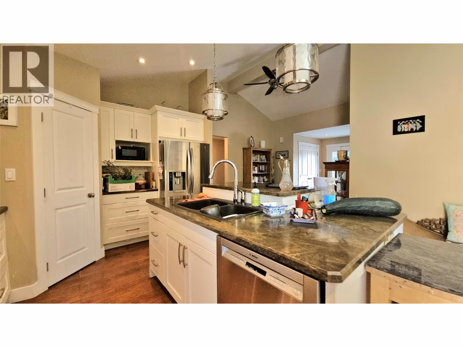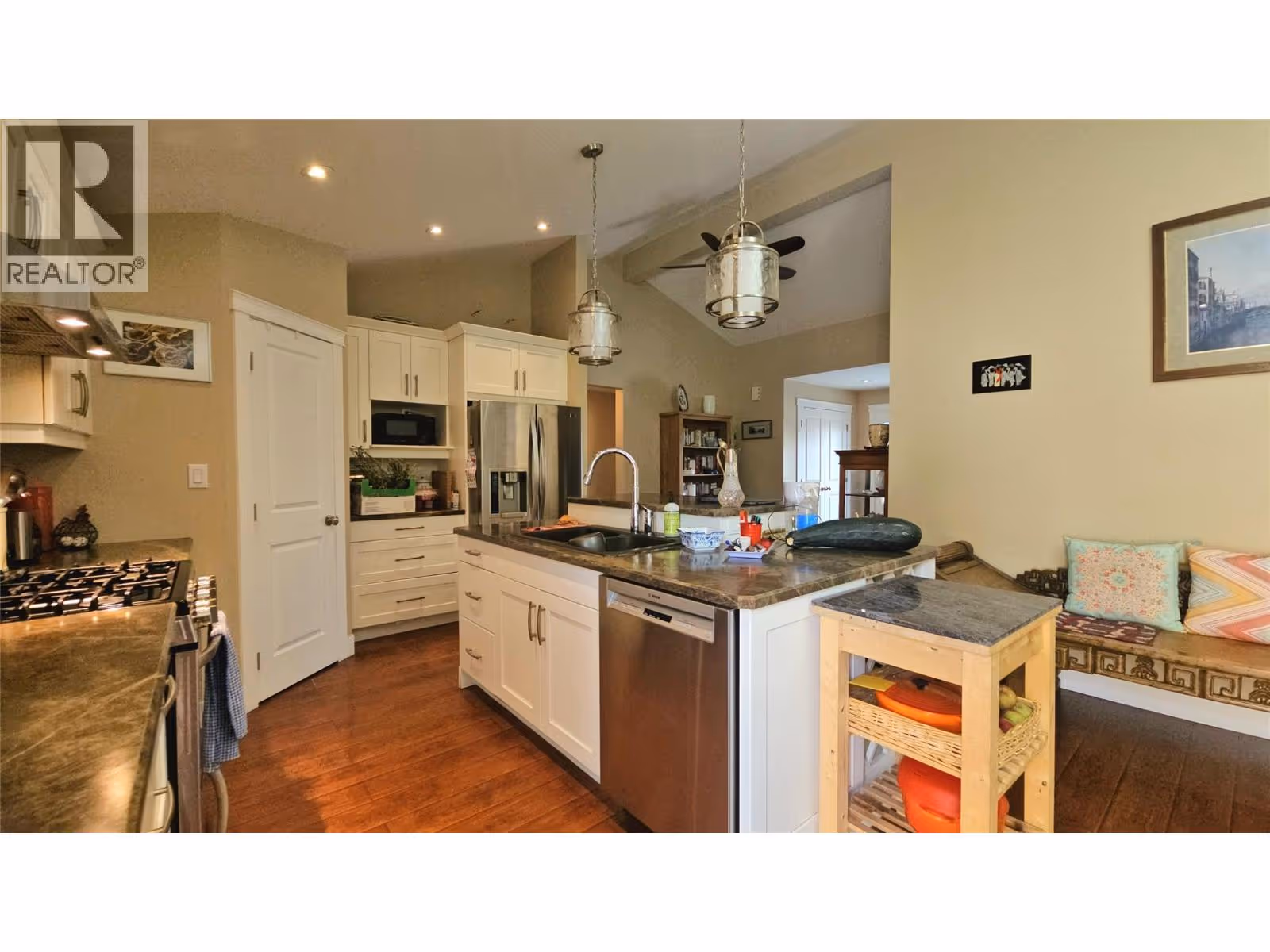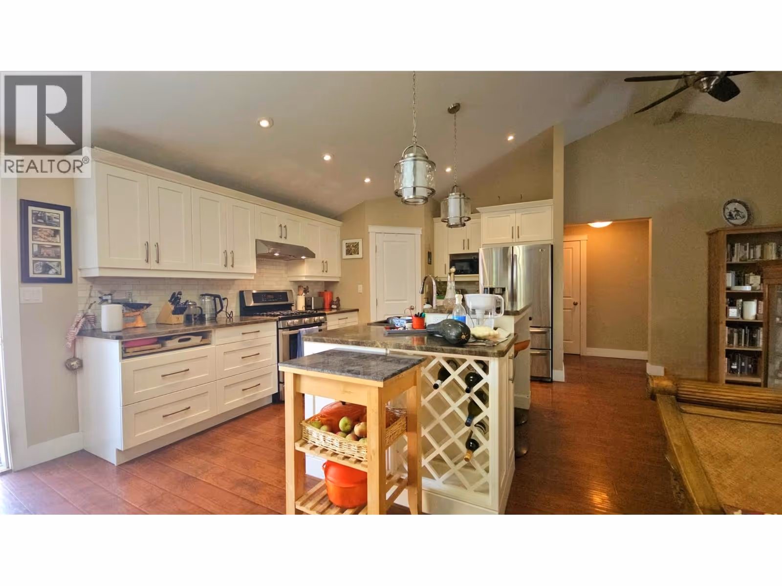 Welcome to your dream acreage in the heart of Lake Country, a rare opportunity to own a beautifully renovated rancher on 2.92 flat, fully usable acres with a thriving cherry and apple orchard that generates revenue. This charming 4-bedroom + den, 2.5-bath home has been tastefully updated and designed for comfort. Both bedrooms feature ensuite baths, including a spacious primary suite with walk-in closet. Hardwood flooring flows throughout the main living spaces, complemented by a cozy freestanding gas fireplace with brick surround. Skylights and large windows fill the home with natural light, creating a warm and inviting atmosphere. Car enthusiasts & hobbyists will love detached dream shop (30’ x 36’) with three bay doors (two 8’ & one 10’), 220 amp power, gas heating, & excellent insulation. Two additional powered storage sheds (10’x10’ and 10’x12’) add even more utility. Planted with high-yield Centennial & Sweetheart cherries plus Ambrosia & Pink Lady apples, all young and entering prime production years. Privacy is paramount here. As you pass through elegant iron gates and follow the private driveway, the home is tucked away from the road, surrounded by chain-link fencing on three sides. Minutes to Lake Country Town Centre, 15 minutes to Kelowna International Airport & UBCO. (id:58842)