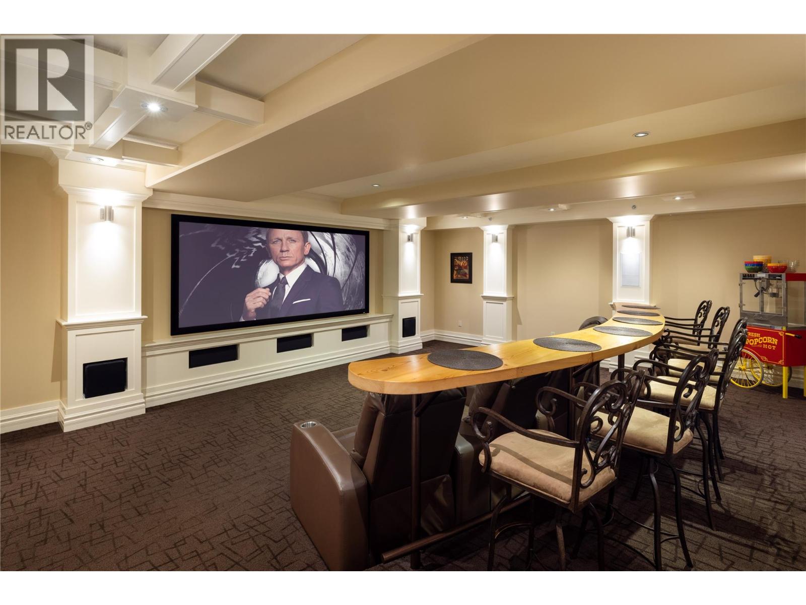 Experience resort-style living in the hills of THE RISE. Designed for luxurious living and effortless entertaining, this custom built masterpiece offers PANORAMIC LAKE VIEWS, THREE PRIMARY SUITES, A CINEMA-STYLE THEATRE, A TEMPERATURE-CONTROLLED WINE CELLAR, and COUNTLESS HIGH-END FINISHES throughout. The open-concept main living area features a chef-inspired kitchen with gas stove, double ovens, and custom cabinetry - seamlessly flowing into a bright living space framed by nano doors that open fully to the expansive patio, surrounded by endless views. Also on the main floor, one of the 3 primary suites offers ideal privacy, while the elegant office - complete with coffered ceilings, French doors, and its own patio -could easily serve as a 4th bedroom. The lower level is an entertainer’s dream. Host movie nights or the big game in your PRIVATE CINEMA FEATURING 138"" SCREEN & 3D 4K PROJECTOR, then gather at the ARTISAN BAR and WINE CELLAR. Guests can unwind by the cozy fireplace and wake up to the floor-to-ceiling views. Additional highlights include a Control4 smart home system, geothermal heating, and a double garage with built-in cabinetry & workbench. Perfectly positioned within The Rise Resort community, home of the 18-HOLE CHAMPIONSHIP GOLF COURSE, this home offers EASY ACCESS TO MULTIPLE LAKES AND SKI DESTINATIONS, including the world-class Silver Star Mountain Resort - making it a true four-season retreat for those who love the slopes and the lake. (id:58842)