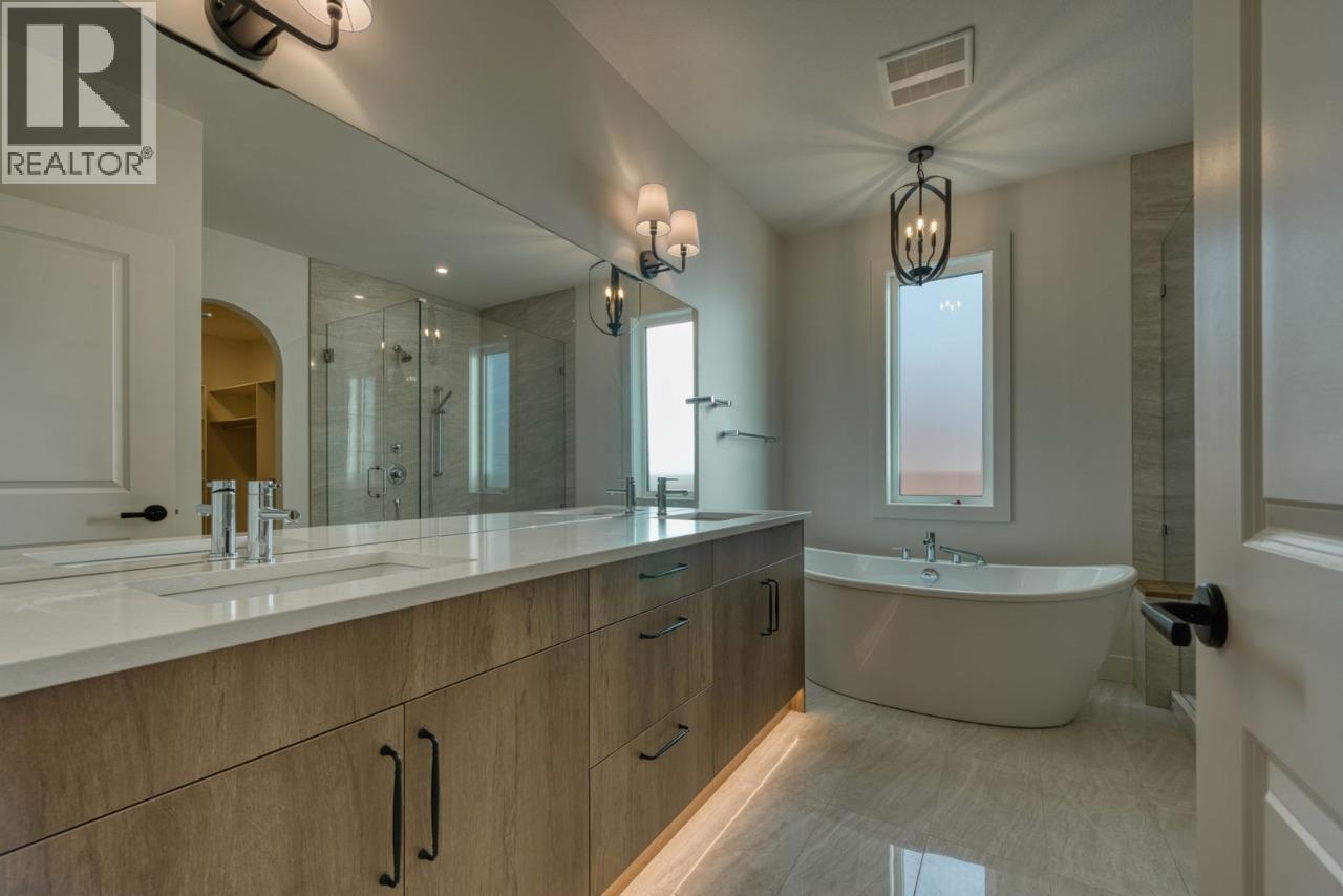 Endless views, convenience, and access to nature are calling you! Come home to Carrington Homes’ newest model located in the Upper Mission community of Trailhead at the Ponds. This European inspired modern farmhouse has it all. This entry level rancher offers 4 bedrooms, 3 full baths, plus a 1 bedroom full legal suite. Designer-picked soft tones with wood accents, arches, custom wall details, ample storage, built-in shelving, and vast lake views make this home one you’ll want to call your own. Designed to support every version of you throughout the year: the natural entertainer will love hosting holiday dinners or intimate gatherings in the open-concept kitchen, dining, great room, and covered patio. The cozy homebody will enjoy the comfort of the primary bedroom with its large shower and soaker tub, plus movie nights in the rec room. The slow-living soul can wander Kuipers Peak trails, linger on the deck soaking up Okanagan views, and relax in the backyard oasis. **GST Applicable** (id:58842)