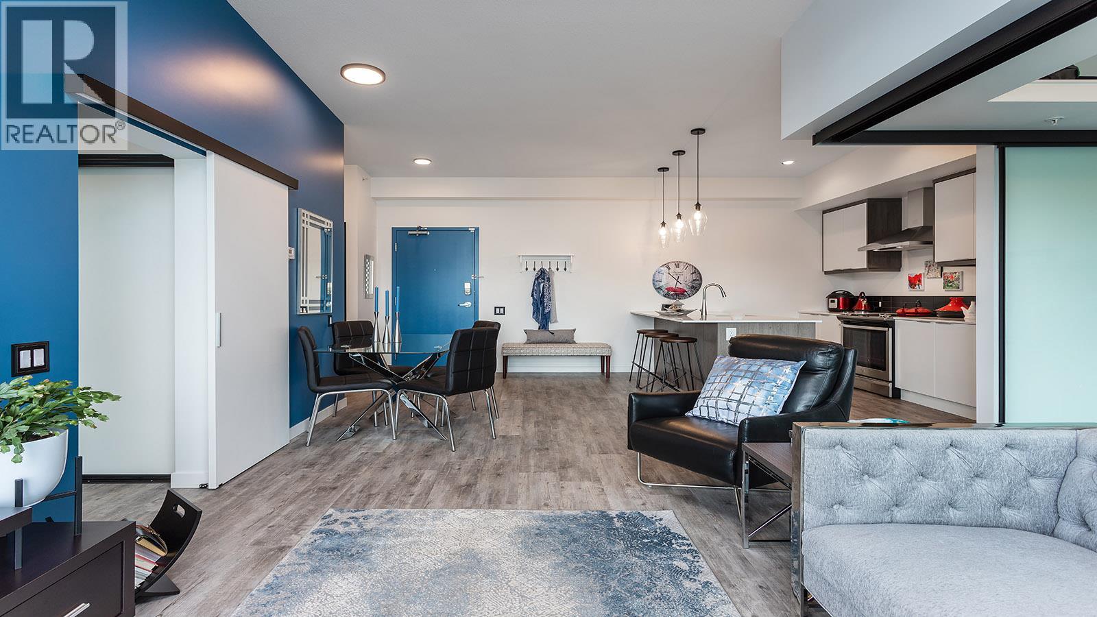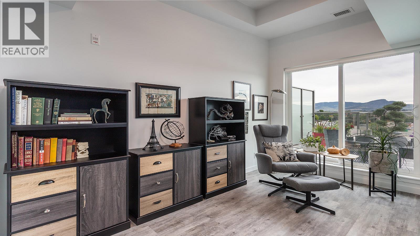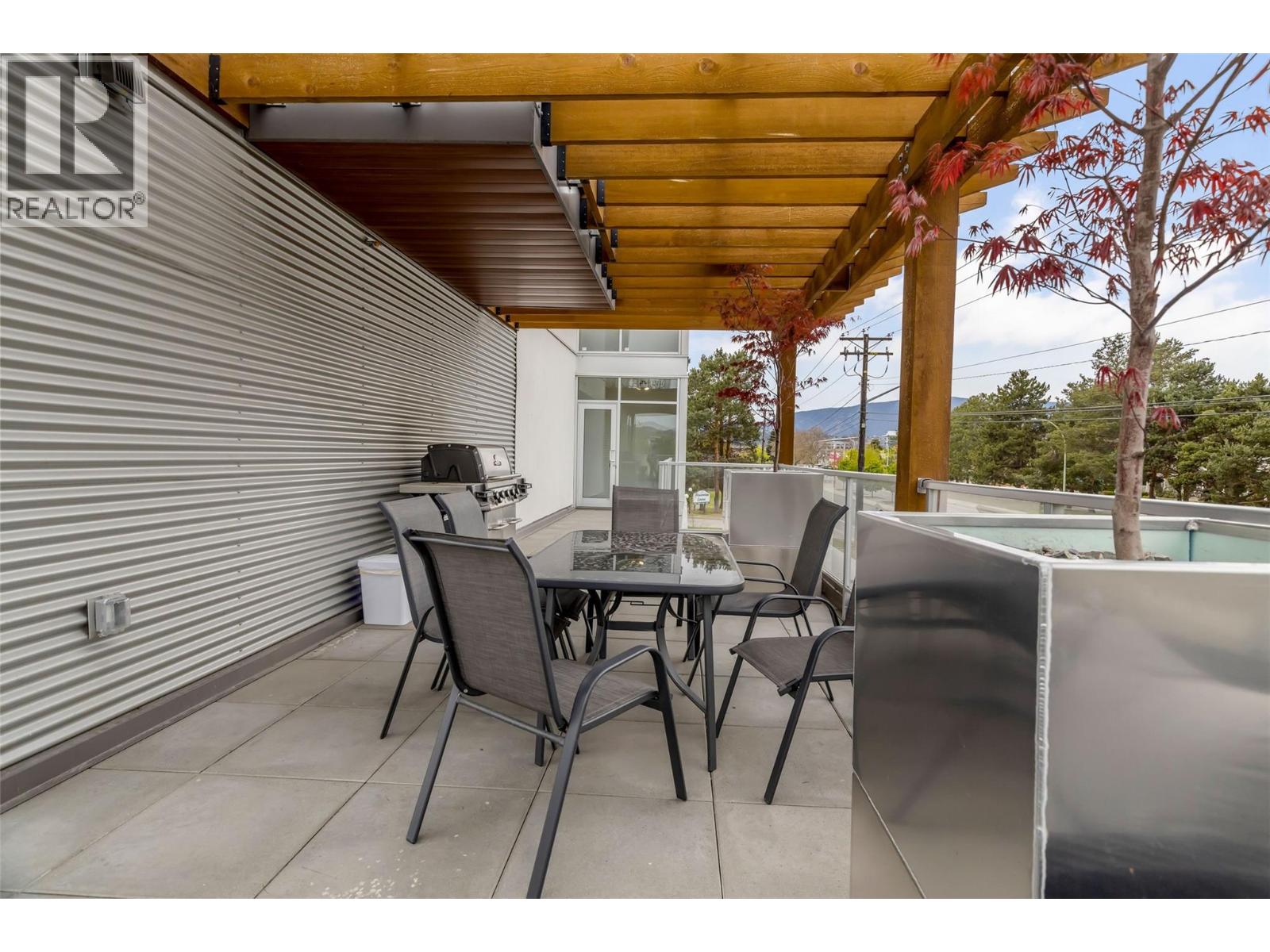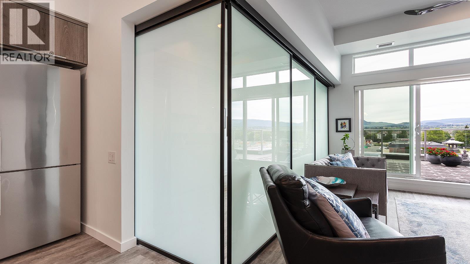 Welcome to SOLE on KLO — a bright, contemporary retreat perfectly positioned in the heart of the Lower Mission. This 1 bedroom plus den, 1 bathroom residence offers effortless modern living with a rare nearly 300 sq. ft. outdoor terrace capturing expansive east-facing mountain views and gentle morning light. Inside, an open-concept layout is enhanced by sleek finishes, including quartz countertops, stainless steel appliances, modern cabinetry, and durable vinyl plank flooring. The spacious den provides valuable flexibility, easily functioning as a second sleeping area with room for a queen Murphy bed, ideal for guests or hybrid living needs. The bedroom is paired with a well-appointed bath featuring clean, modern lines and a glass-enclosed shower. Large windows and sliding doors draw natural light throughout the home while seamlessly connecting the interior living space to the oversized terrace, perfect for outdoor dining, relaxing, and taking in the panoramic landscape. Additional features include in-suite laundry and a generously sized parking stall. Located directly across from Okanagan College and moments from the boutiques, cafes, and waterfront pathways of Pandosy Village, this residence offers exceptional walkability and a vibrant urban lifestyle. (id:58842)