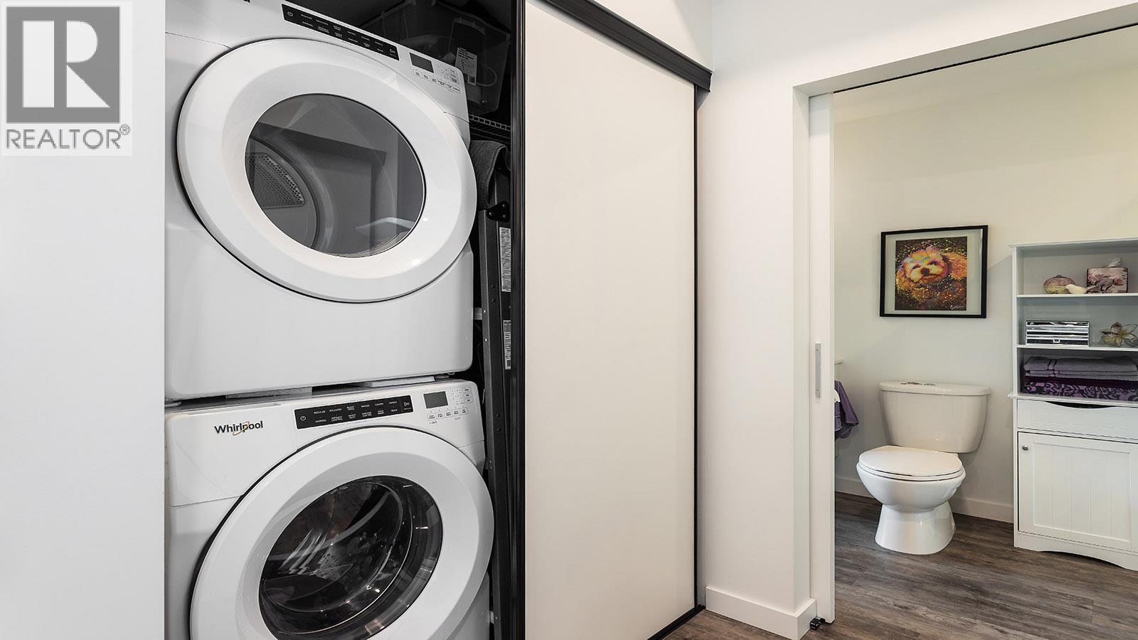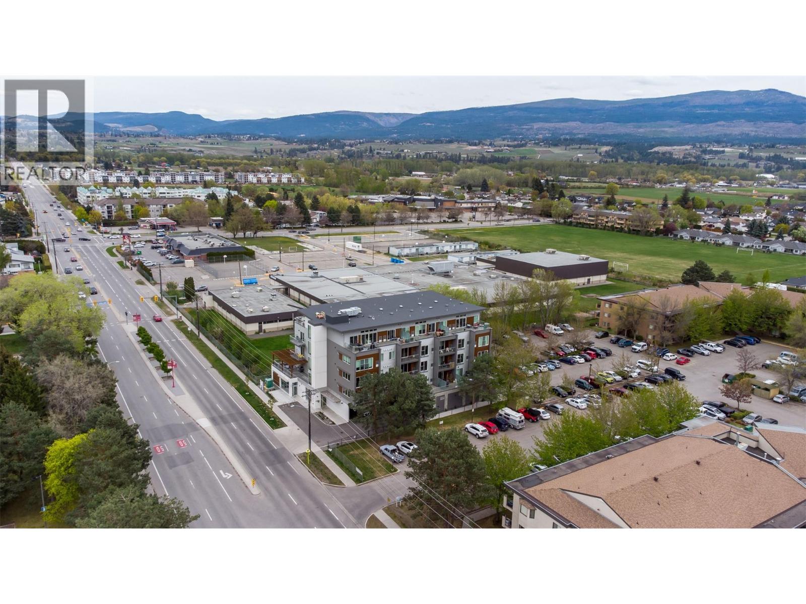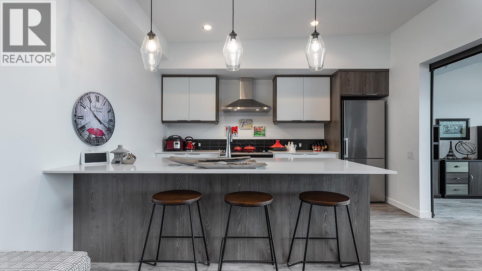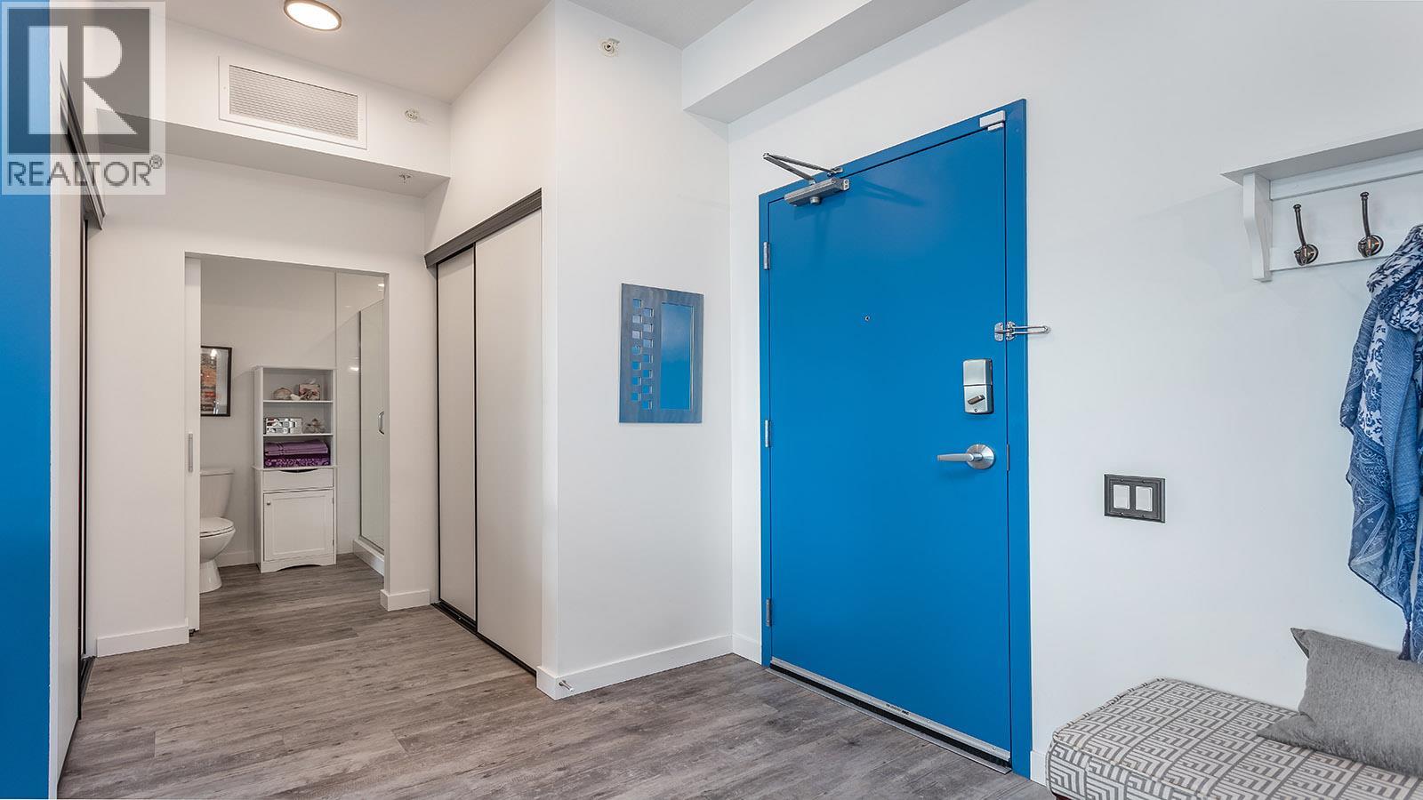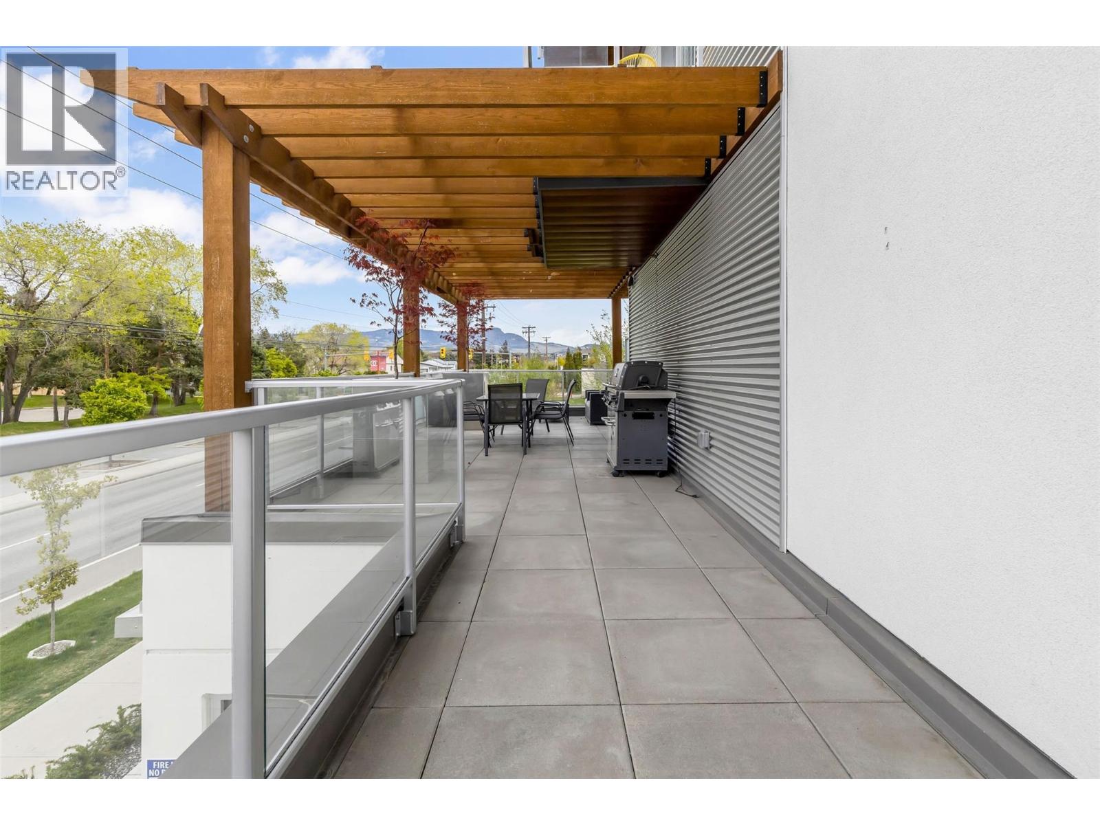Welcome to SOLE on KLO — a bright, contemporary retreat perfectly positioned in the heart of the Lower Mission. This 1 bedroom plus den, 1 bathroom residence offers effortless modern living with a rare nearly 300 sq. ft. outdoor terrace capturing expansive east-facing mountain views and gentle morning light. Inside, an open-concept layout is enhanced by sleek finishes, including quartz countertops, stainless steel appliances, modern cabinetry, and durable vinyl plank flooring. The spacious den provides valuable flexibility, easily functioning as a second sleeping area with room for a queen Murphy bed, ideal for guests or hybrid living needs. The bedroom is paired with a well-appointed bath featuring clean, modern lines and a glass-enclosed shower. Large windows and sliding doors draw natural light throughout the home while seamlessly connecting the interior living space to the oversized terrace, perfect for outdoor dining, relaxing, and taking in the panoramic landscape. Additional features include in-suite laundry and a generously sized parking stall. Located directly across from Okanagan College and moments from the boutiques, cafes, and waterfront pathways of Pandosy Village, this residence offers exceptional walkability and a vibrant urban lifestyle. (id:58842)