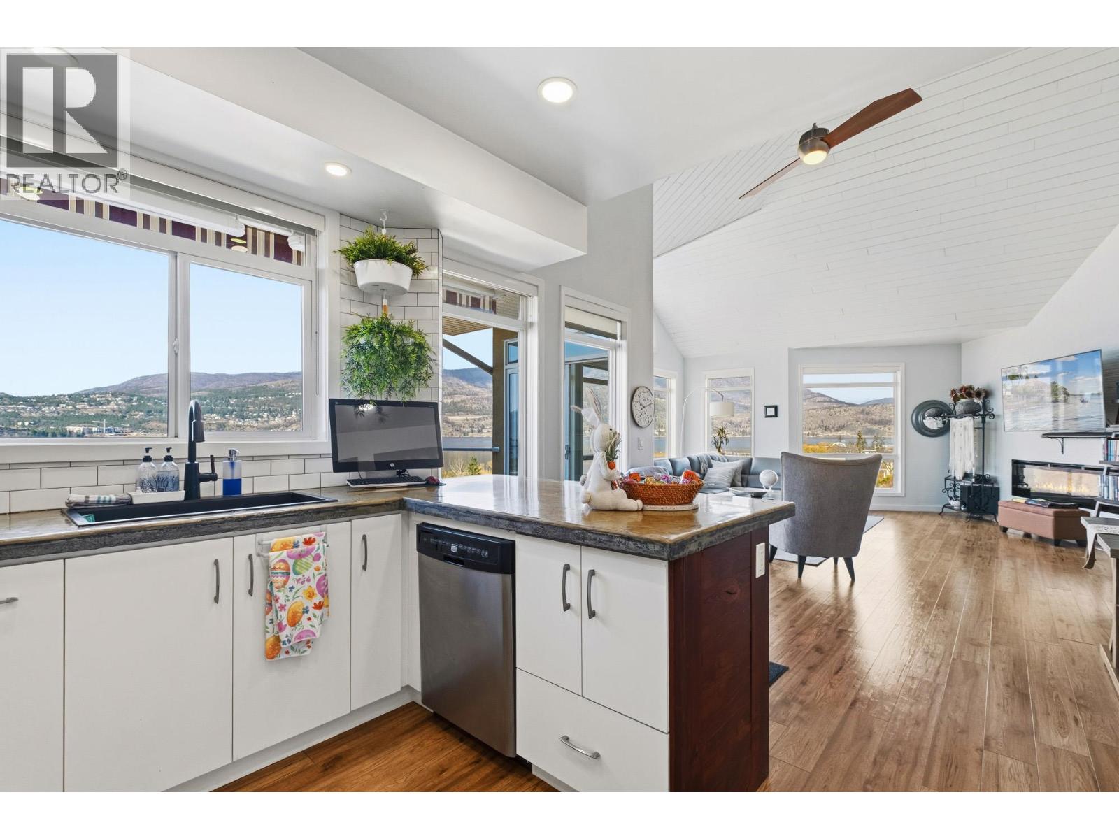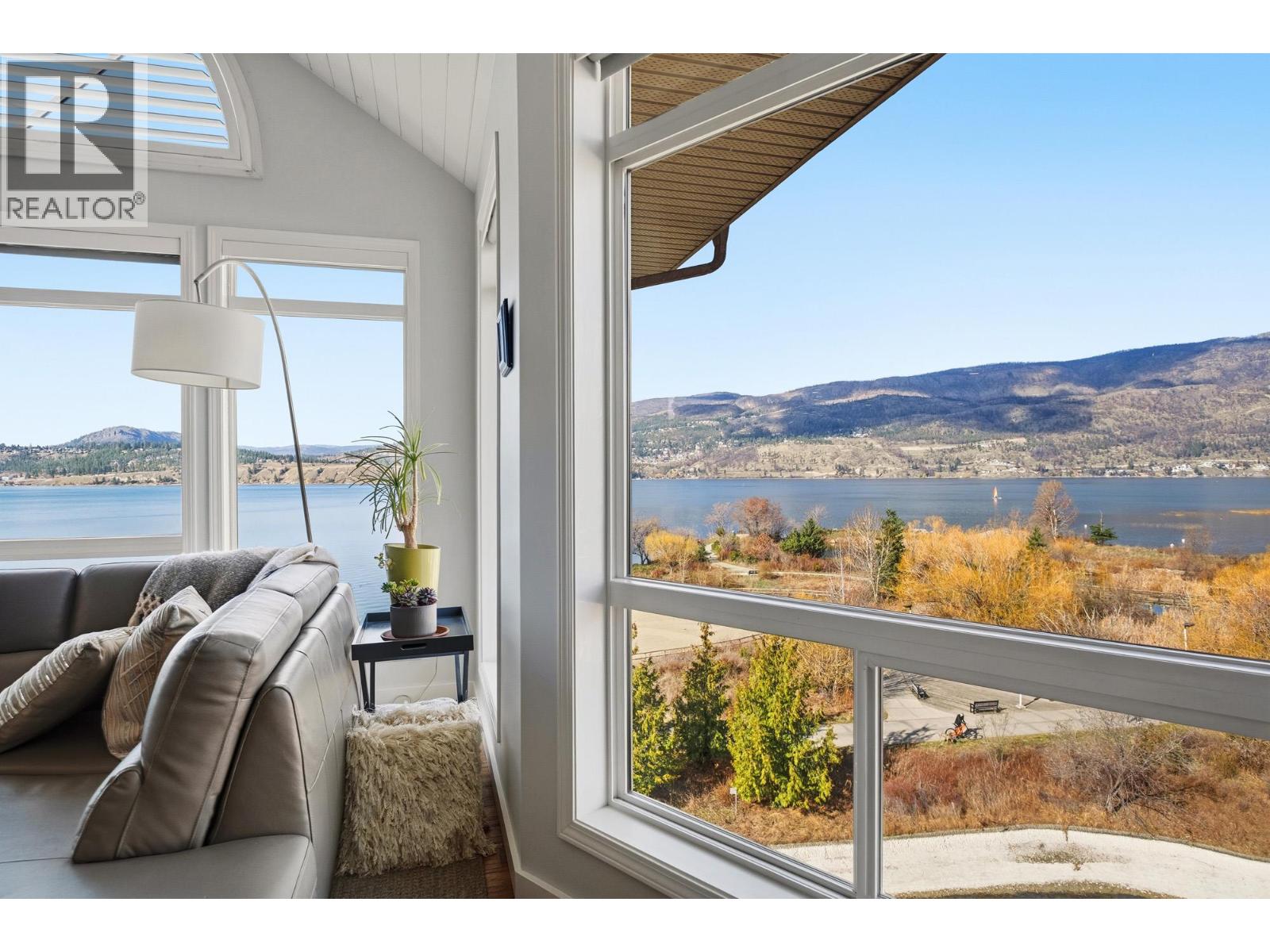 Enjoy close-up waterfront views of Okanagan Lake from this beautifully appointed 2-bedroom, 3-bathroom + loft condo in Discovery Bay. Perfectly positioned along the water, the lagoon offers direct lake access—bringing the Okanagan lifestyle right to your doorstep. Set in the heart of downtown, you’re just steps to sandy beaches, the scenic boardwalk, and moments from Prospera Place, along with an array of restaurants, cafes, shops, and parks. The bright and airy layout features soaring ceilings and oversized windows, flooding the space with natural light while showcasing the lake. The open-concept kitchen flows into the living and dining areas—perfect for entertaining or unwinding. The primary bedroom offers a relaxing retreat. The second bedroom is complemented by a full bathroom and a versatile loft—perfect for a home office or additional living space. Just bring your suitcases because this home features designer furnishings included for your convenience. Resort-style amenities include indoor and outdoor pools, hot tub, fitness center, billiards and event room, and beautifully maintained grounds. Whether as a full-time residence, vacation getaway, or investment, this is effortless lock-and-leave living in one of Kelowna’s most sought-after waterfront communities. This home has been lovingly maintained with fresh paint, both heat pumps replaced, and a state of the art water leak monitoring system for peace of mind, complete with auto shut off. Please view the virtual tour. (id:58842)