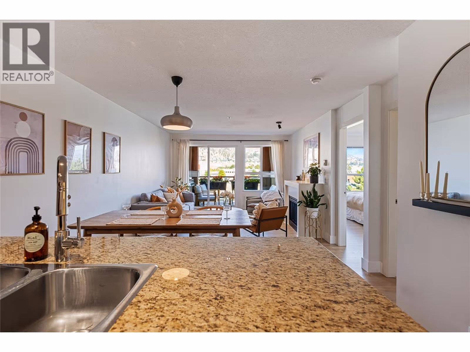 The location couldn’t be better—walk to the lakefront boardwalk, beaches, shops, restaurants, pubs, coffee spots, and the arts & cultural district — this is Okanagan living at its best! This well-cared-for 1 bedroom plus den condo offers a bright open-concept layout that flows seamlessly between the kitchen, dining, and living space (w/ beautiful updated flooring, baseboards and paint throughout). The kitchen is equipped with full appliances, while in-suite laundry adds everyday convenience. Perched on the 3rd floor of Waterscapes with views of Knox Mountain, the unit also includes secure underground parking and a storage locker. Waterscapes residents enjoy access to the impressive Cascade Club, just steps away — spend your days swimming in the outdoor pool, soaking in the hot tub, stay active in the fitness facility, or hosting in the shared kitchen and lounge spaces. Guest suites available. Pet Friendly with no height restrictions for dogs, Rentals allowed (min. 30 days), No age restrictions. *All measurements are approximate and should be verified if important. (id:58842)