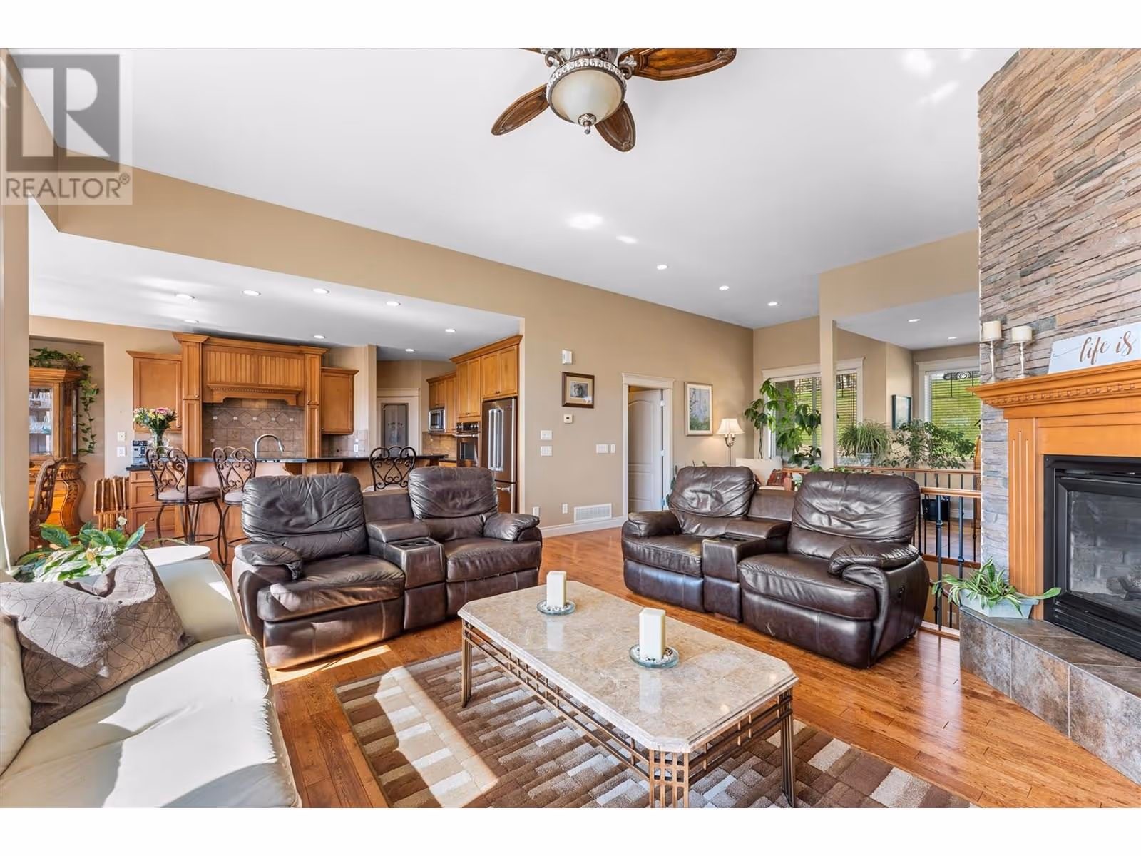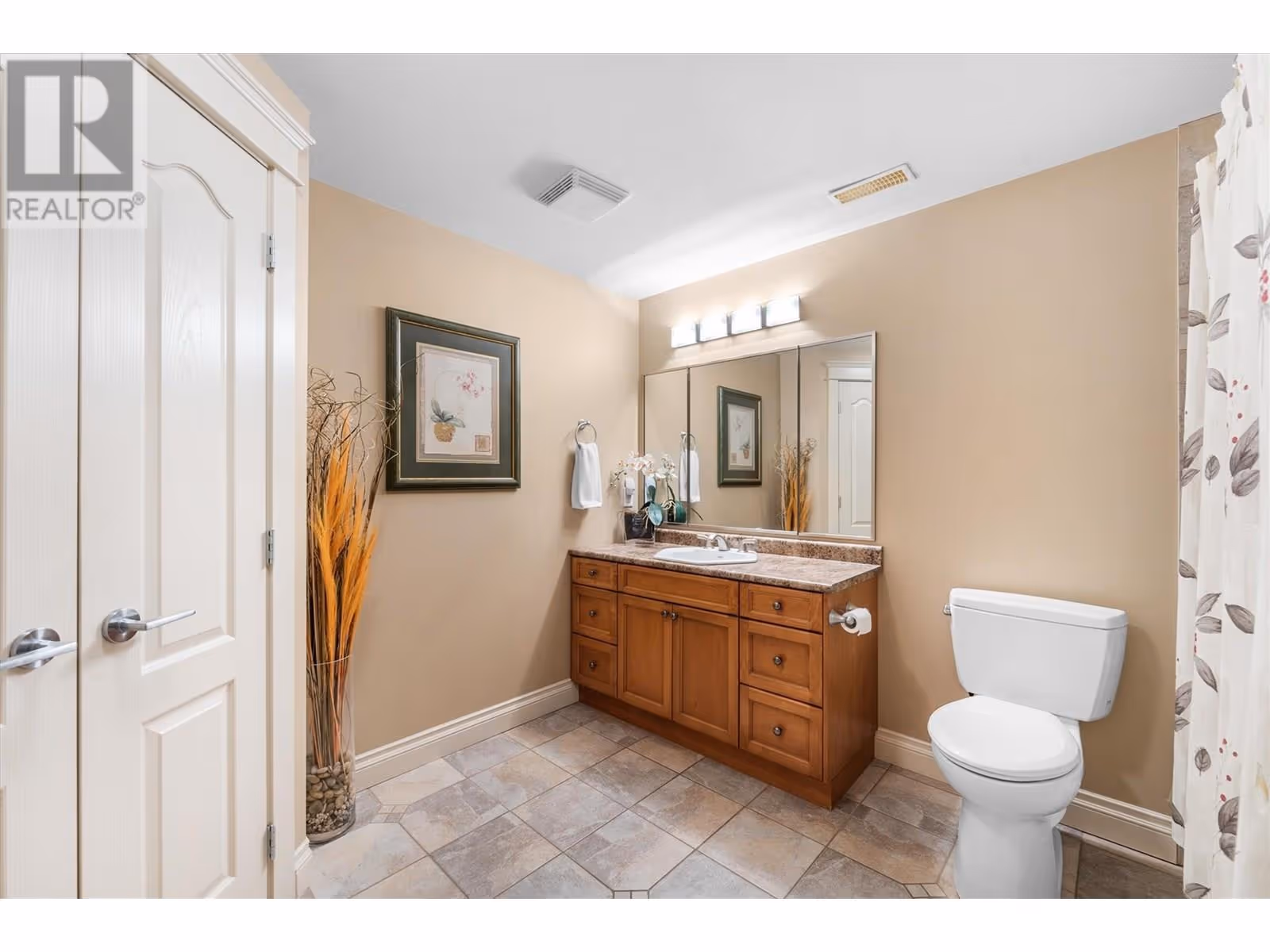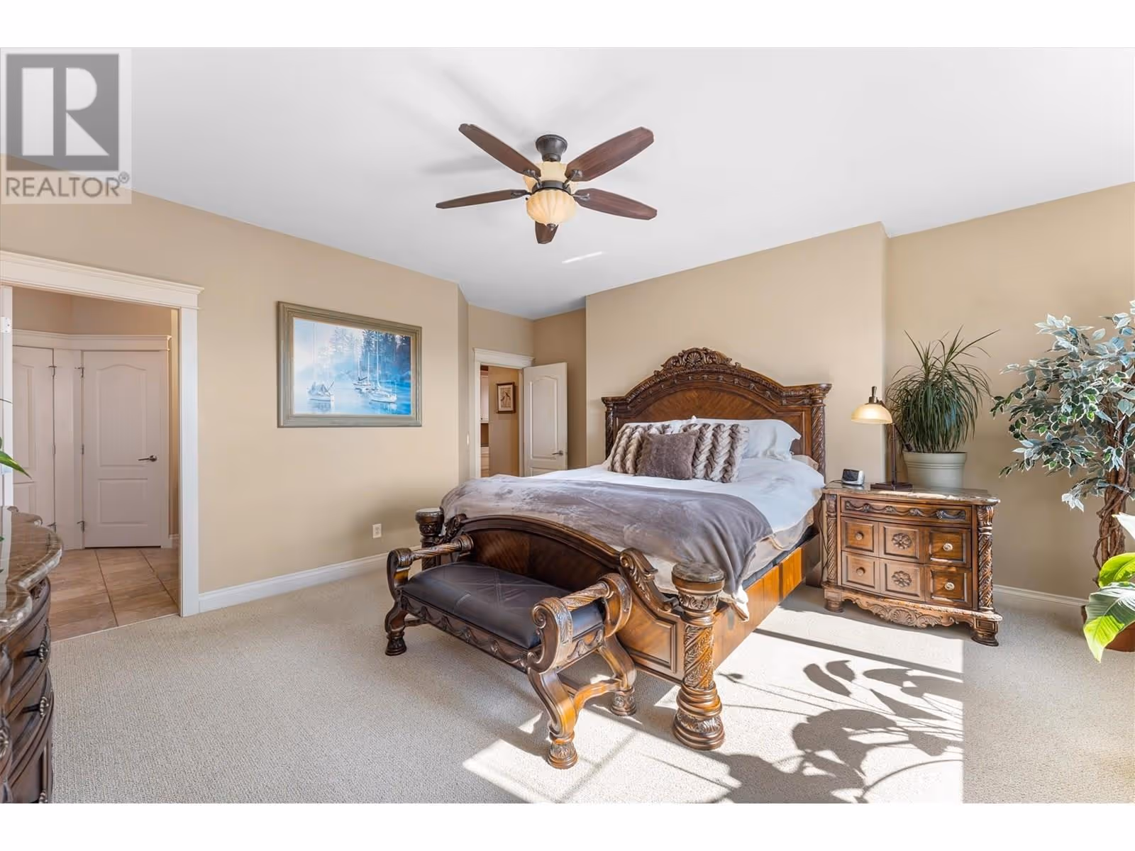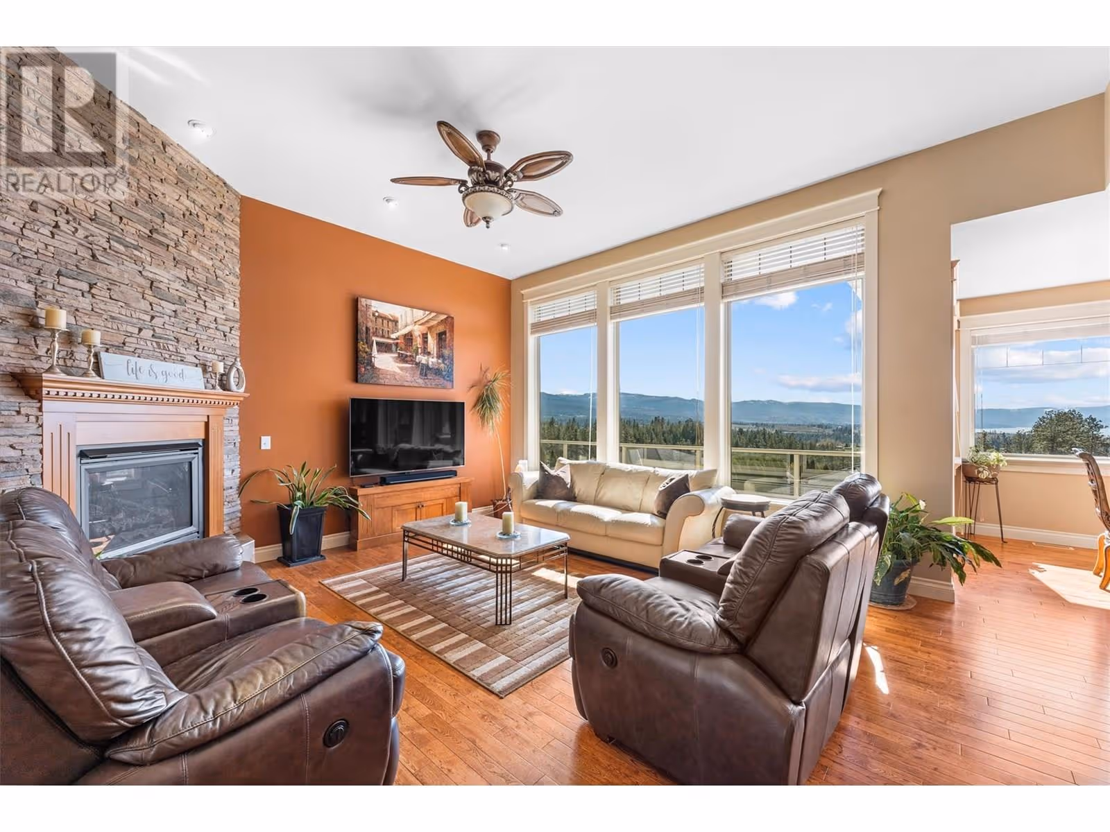 Tucked away in a tranquil Kelowna cul-de-sac, this custom-built home offers luxury & comfort. Situated on a meticulously landscaped corner lot with tiered rock walls its curb appeal is exceptional. This property boasts two distinct garages: an oversized double garage accessing the upper level, and a separate single garage leading to the lower level perfect for a potential suite conversion (with plans for a second kitchen). The expansive REC room featuring in-floor heating, a wet bar, and a versatile gym/media room, all with captivating city and lake views. This level also includes two guest bedrooms, a 4-piece bathroom, and abundant storage, ideal for entertaining or extended family. The upper level, bathed in natural light from large windows, showcases 11-foot ceilings and an open-concept living area framing stunning lake, mountain, and city vistas. The gourmet kitchen is a chef's dream, with a Wolf six-burner range, dual wall ovens, and pantry, flowing seamlessly into the living and dining areas. The wrap-around covered deck is perfect for year-round BBQs and sunsets. A flexible library space can be a formal dining room or home office. The expansive primary suite offers a spa-like ensuite with a soaker tub, steam shower, double vanity, and a dual-entry walk-in closet. A 2nd bdrm with a Murphy bed, a 2-piece powder room, and a full laundry room with garage access complete this level. With 2 driveways and 2 garages, there's abundant parking, including RV or boat space. (id:58842)