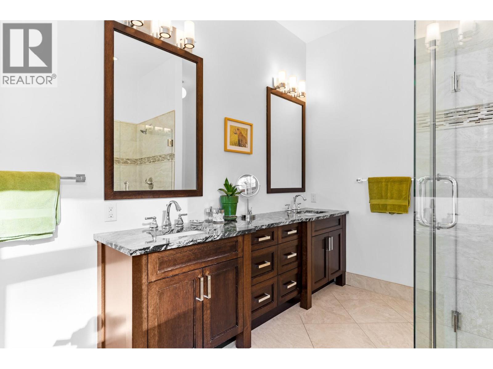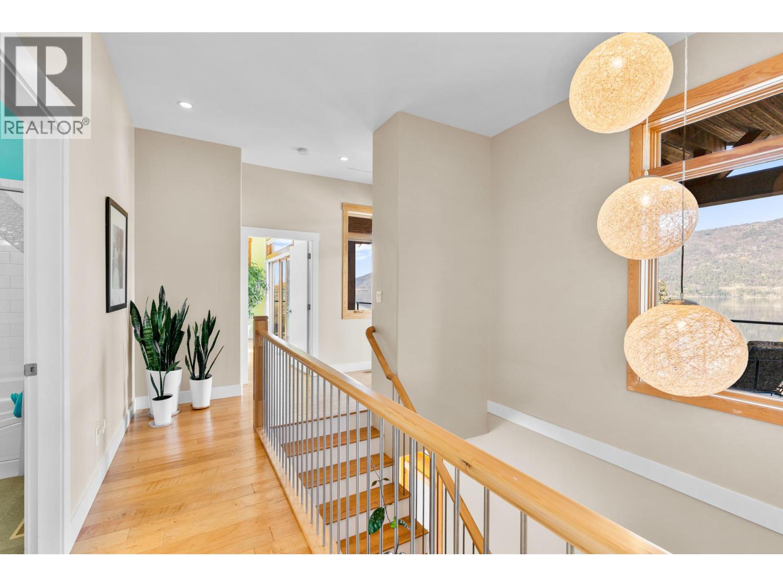 Stunning residence located in the prestigious Okanagan Centre area of Lake Country! With four bedrooms, a media room, an office/den, four bathrooms, and over 3600 square feet on a 1.15 acre lot, this is a turn-key 2014-built home that offers great proximity to the water. Upon entering the property, you are greeted by an abundance of parking that leads you to your oversized double-car garage. Boasting 10' ceilings and engineered hardwood on all levels, almost every room has a spectacular view. The in-floor heated lower level includes a full bedroom, three-piece bathroom, laundry, and a sound insulated media room. The main level offers a spacious kitchen that opens to the dining and living rooms, as well as a large lakeview office space, perfect for those working from home. The kitchen has stainless steel appliances, granite countertops, large island, and a walk-in pantry. The back patio and garden offers a retreat from the afternoon sun and access to a large upper yard and wild space, while the screened front deck offers unparalleled outdoor living directly facing sunsets over Okanagan Lake. Upstairs, the three-bedroom layout is great for families, with two bedrooms serviced by a four-piece bathroom, and a spacious primary bedroom with balcony access and a large five-piece ensuite that includes a soaker tub. The main and upper level decks are both engineered for hot tubs! Okanagan Centre is known for its public lakeshore areas, the boat launch, cafes, wineries, and a quaint community that can't be replicated. (id:58842)