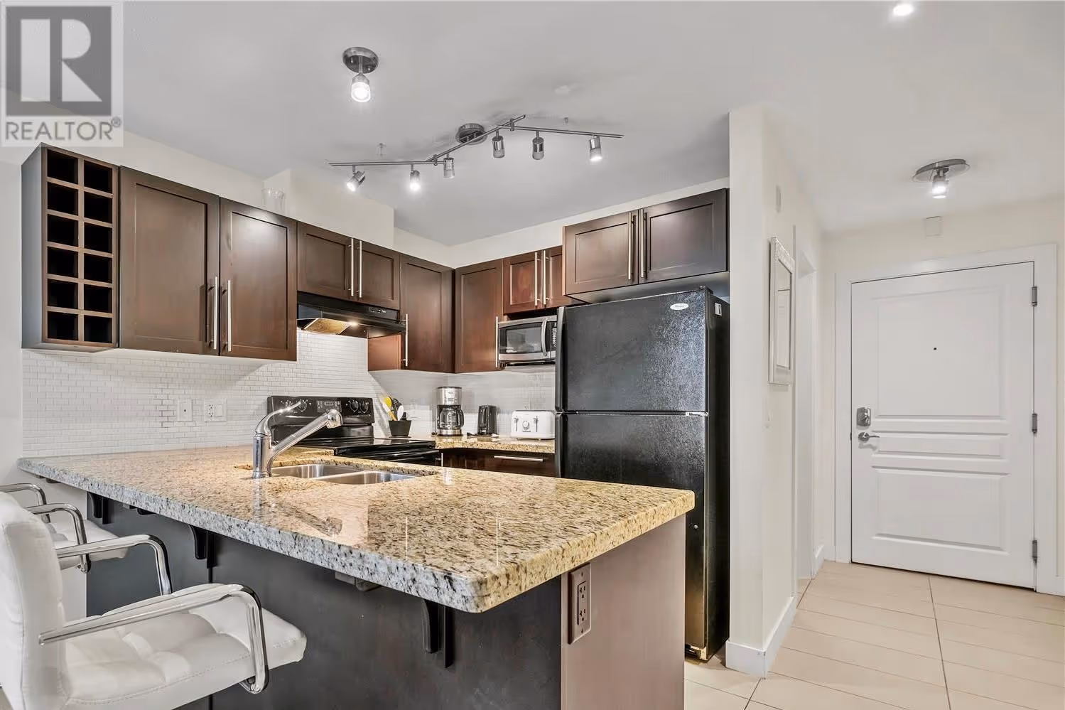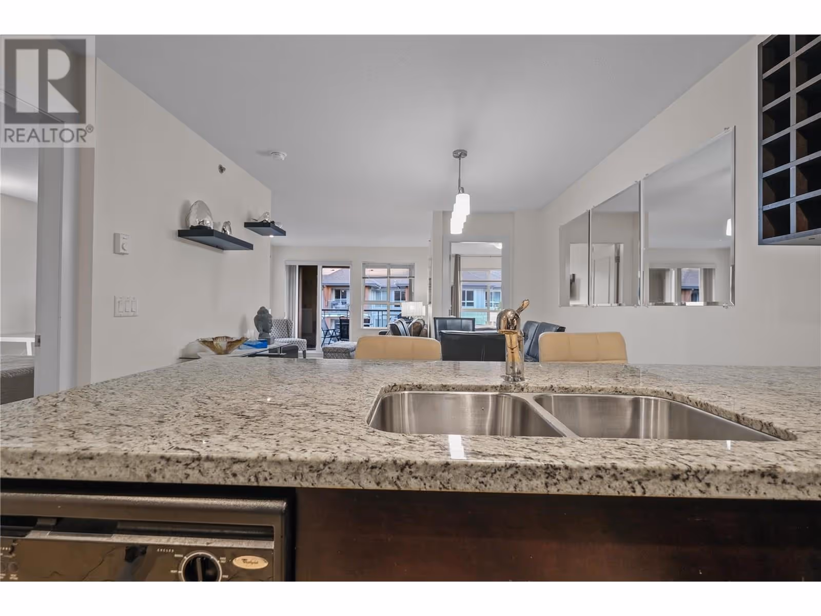 Welcome to Waterscapes, one of downtown Kelowna's most sought after resort style communities. This top floor 2 bedroom, 2 bathroom condo is currently in the final stages of a full professional rebuild, offering the rare opportunity to own what feels like a brand new home, without paying GST! The unit features a bright and functional layout with generously sized separated bedrooms for added privacy, a kitchen with wrap around granite countertops including bar style seating, plus a built-in wine rack, an electric fireplace and access to your spacious deck. The primary bedroom is big enough for a king size bed and includes a walk-in closet and a full ensuite. The 2nd bathroom includes a walk-in shower, and for added convenience, the suite includes its own in suite laundry. Waterscapes residents enjoy access to the Cascade Club, which includes an outdoor pool, two hot tubs, a full fitness centre, a residents lounge with 2 pool tables, guest suites and a putting green. Located just steps from Okanagan Lake, this home is within walking distance to the yacht club, Prospera Place, Knox Mountain, restaurants, cafes, breweries, and Kelowna’s vibrant cultural district. The building is pet friendly with no height restrictions for dogs, making it perfect for animal lovers. Whether you are a first time buyer, investor, or just want to experience downtown living, this is a unique opportunity to own in a nearly new building, with a secure underground parking spot & your own storage locker! (id:58842)
