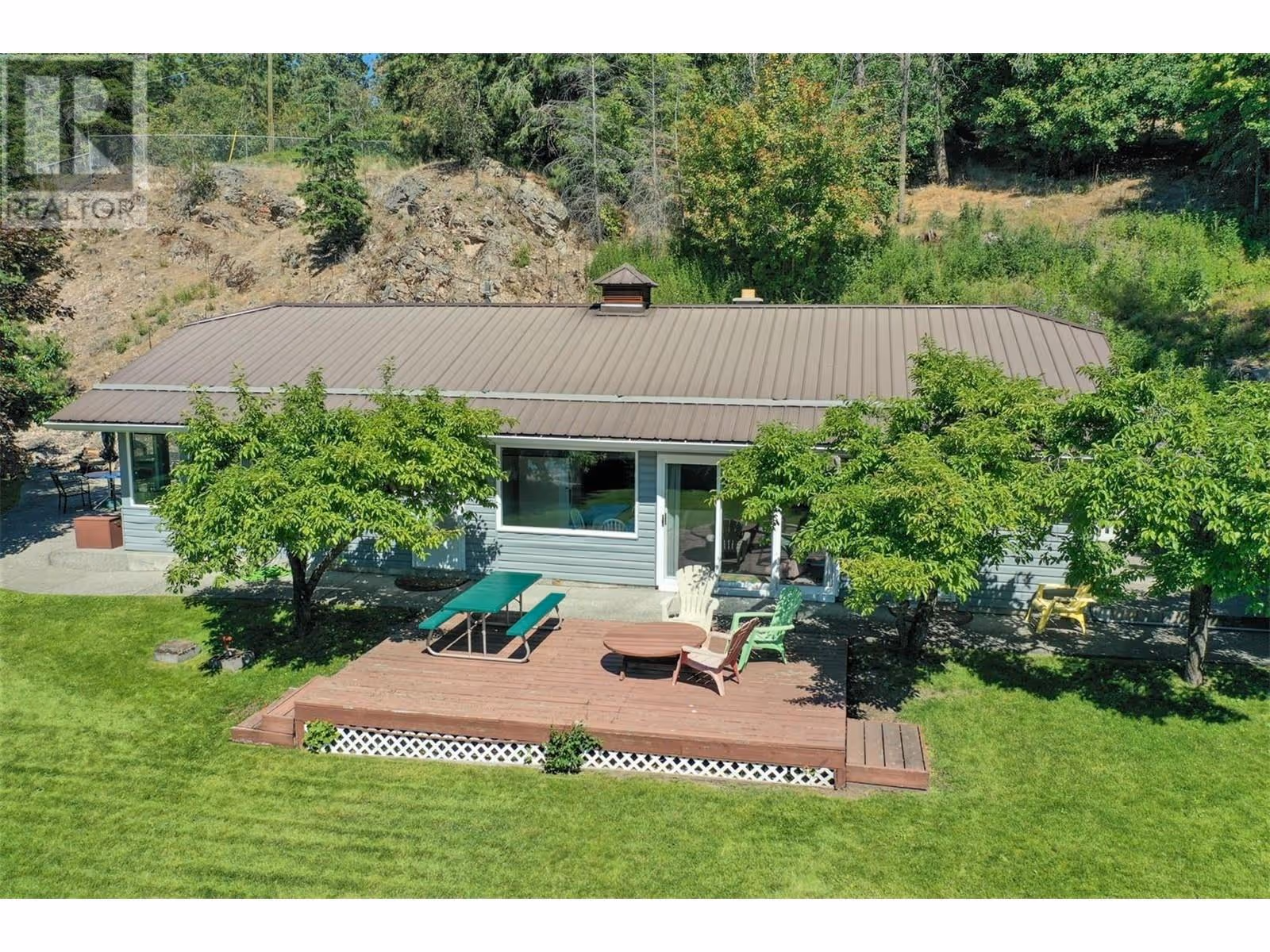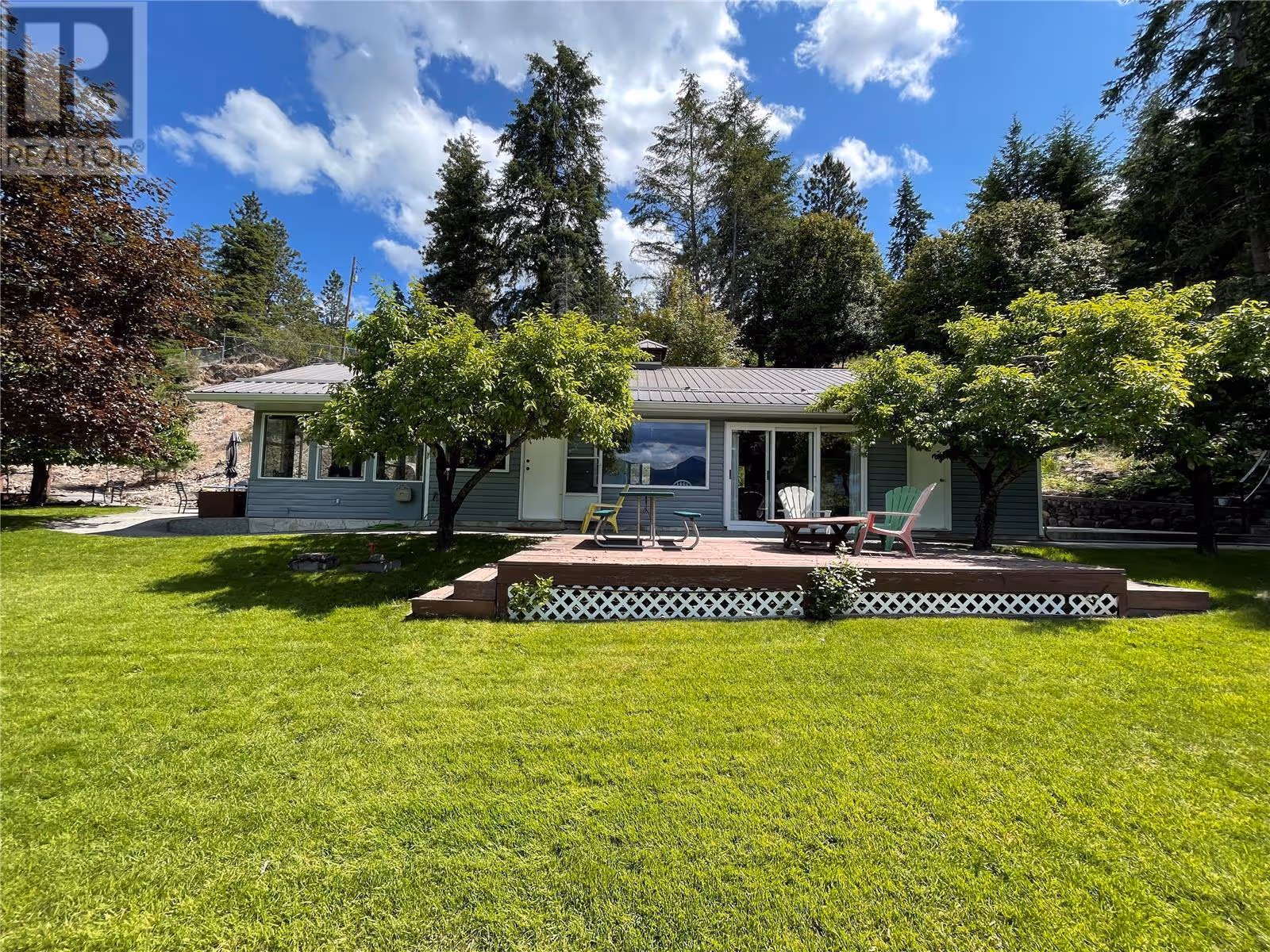 Sand, Sunsets & Space. This is a rare Gem with approx. 3 acres & 415 feet of gorgeous level Lakefront with a Home, Cottage & Shop awaiting your ideas....dream big, this property has it all and more! Large lawn area at Lakeside with the kind of privacy only a large acreage can provide and all gated and fenced. The upper area is huge with fruit trees, shop and an amazing rock bluff view of the lake and mountains. Recent dock with 16,000 Lb lift, end of the road privacy, expansive lawn, wide and deep lake frontage and crystal clear water awaits you. Truly, this property will inspire you and provide decades of enjoyment and memories. There is only one of these properties, don't wait to make it your own! (id:58842)