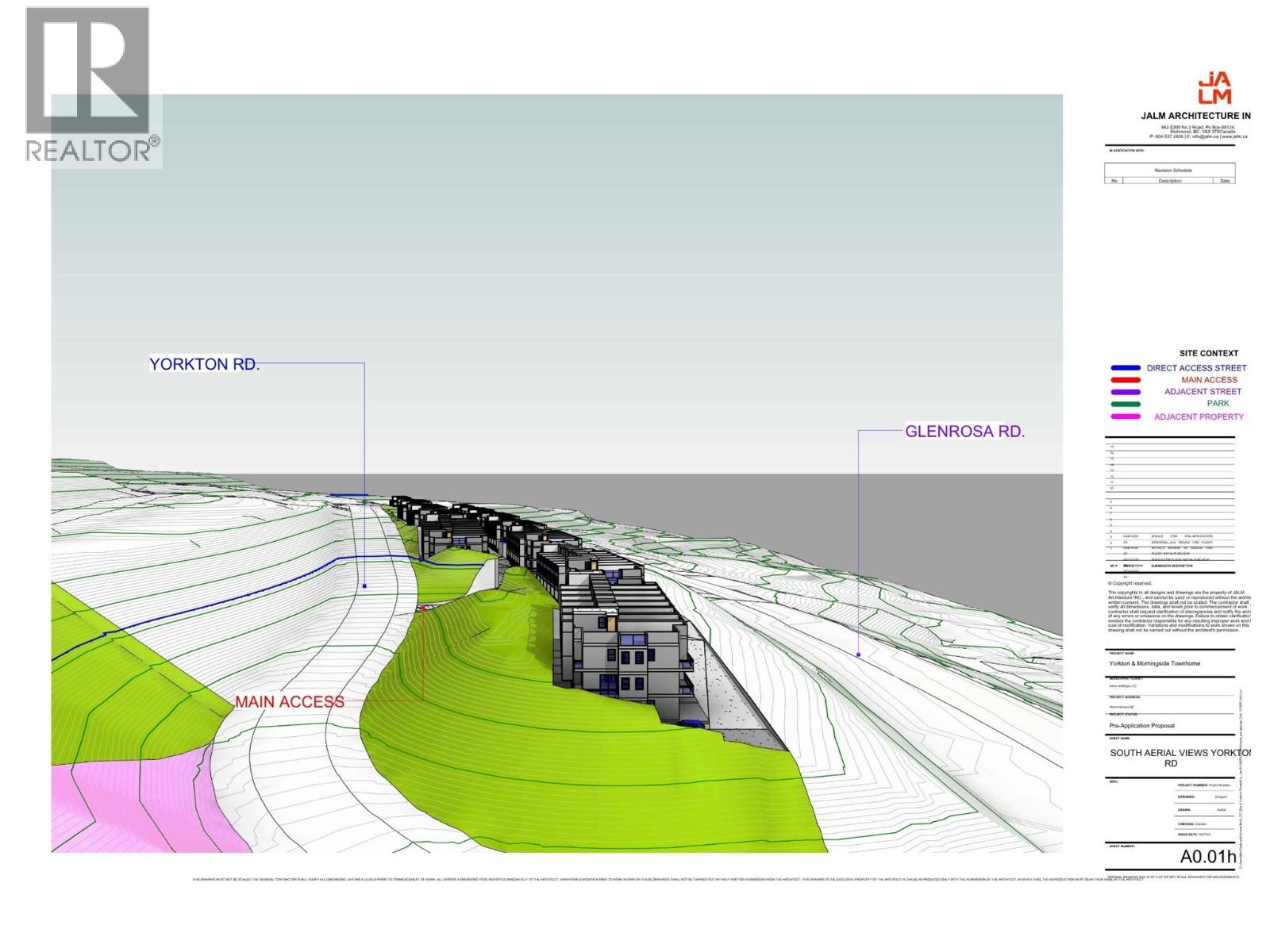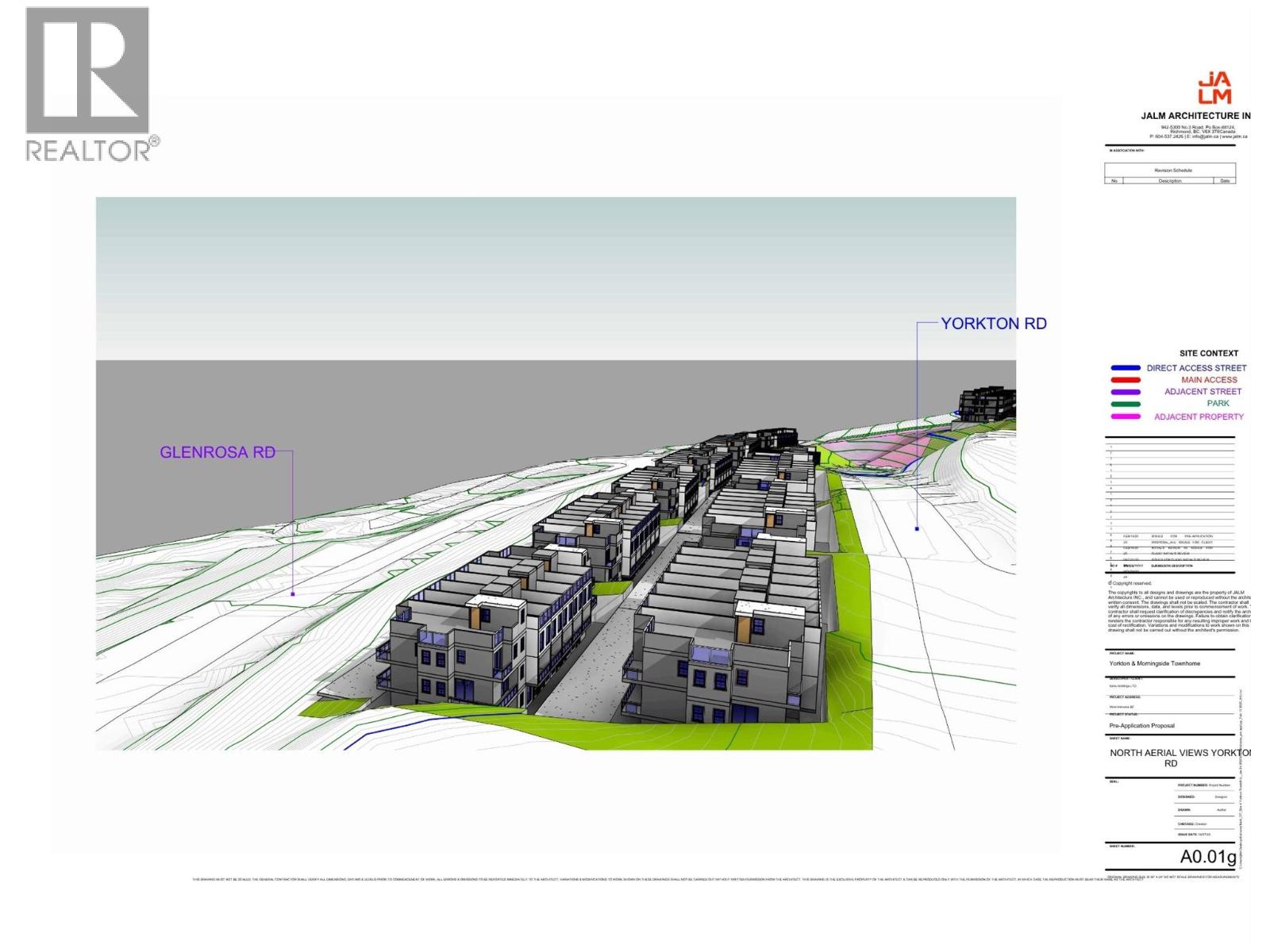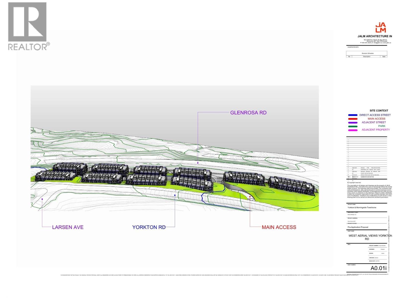 Prime multifamily development opportunity in the rapidly growing Glenrosa neighbourhood of West Kelowna. This 3.435-acre site (Yorkton Rd – Lot 28) is zoned R3 – Low Density Multiple Residential, offering an excellent foundation for a thoughtfully designed townhome project. Preliminary architectural planning supports a 79-unit townhome development featuring a mix of 3-bedroom and 2-bedroom homes, many with rooftop patios with immaculate views and garage parking. The proposed plan includes approximately 223,439 sq.ft. of gross floor area with efficient site coverage (~36%) and a density of 1.47 FAR, maximizing land use while maintaining livability. The site benefits from direct access off Yorkton Road, with proximity to parks, schools, and established residential communities. Servicing include gravity-fed sanitary systems, underground stormwater detention, and access to three-phase power, supporting streamlined development potential. Topography offers moderate slopes, allowing for creative architectural design while remaining more cost-effective relative to surrounding sites. Preliminary analysis suggests standard excavation and grading requirements with retaining walls anticipated. Conceptual plans and site analysis provide a strong basis for development permit advancement. This is a compelling opportunity for builders and developers seeking scale, design flexibility, and strong end-user demand in one of West Kelowna’s most active growth corridors. (id:58842)