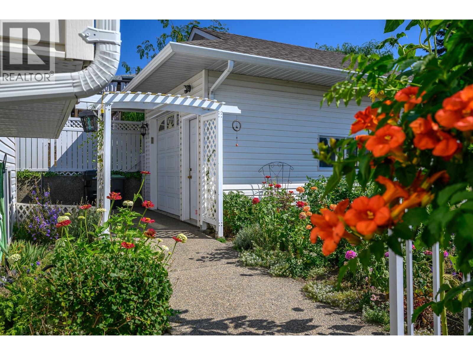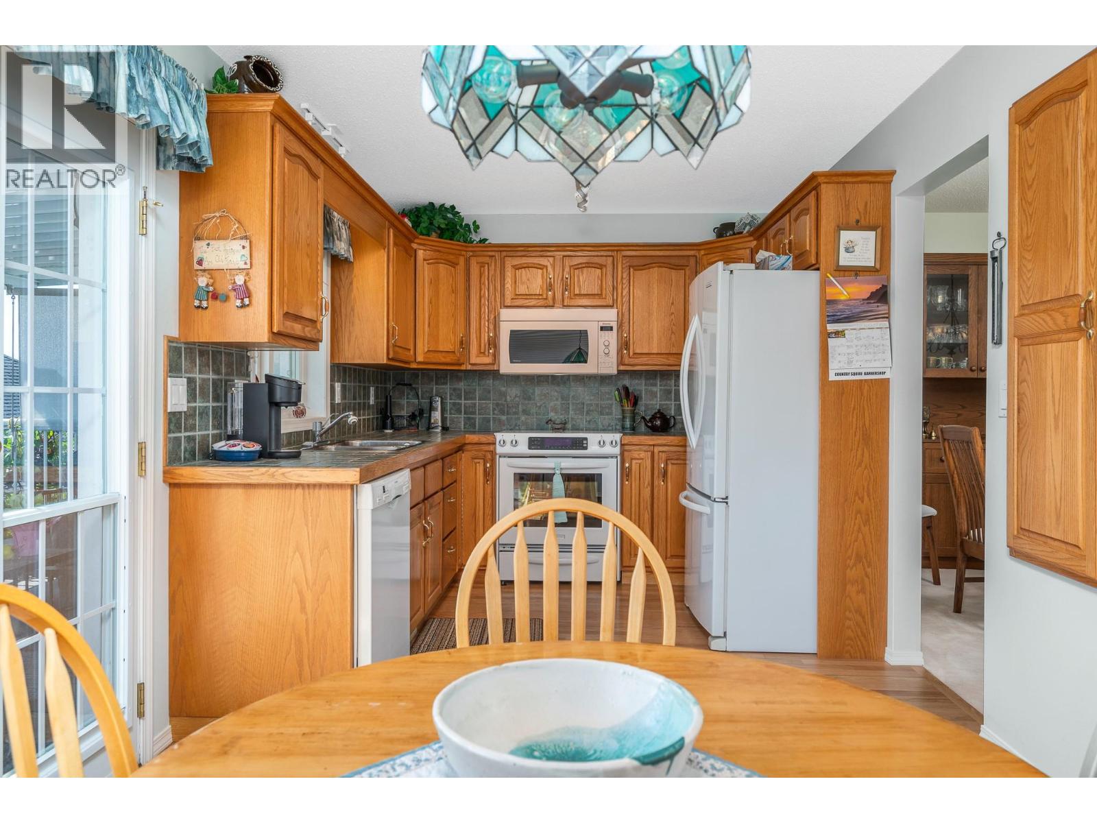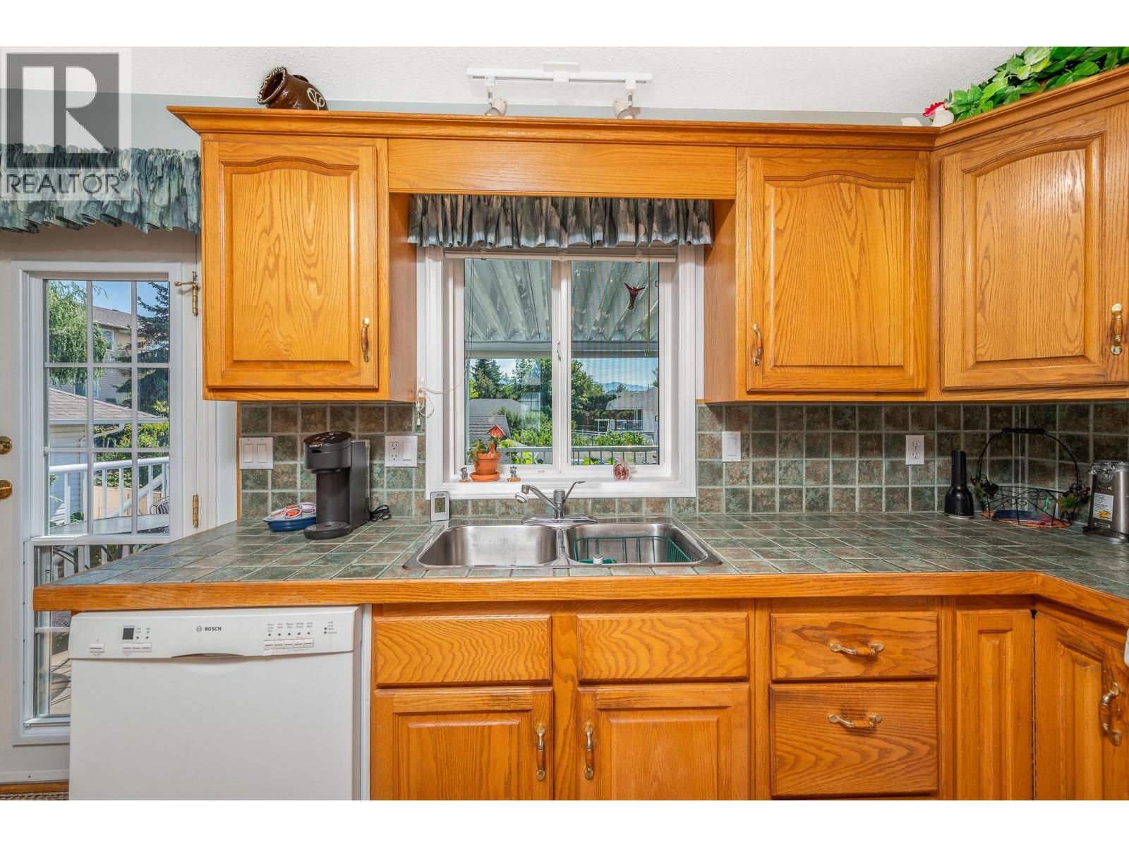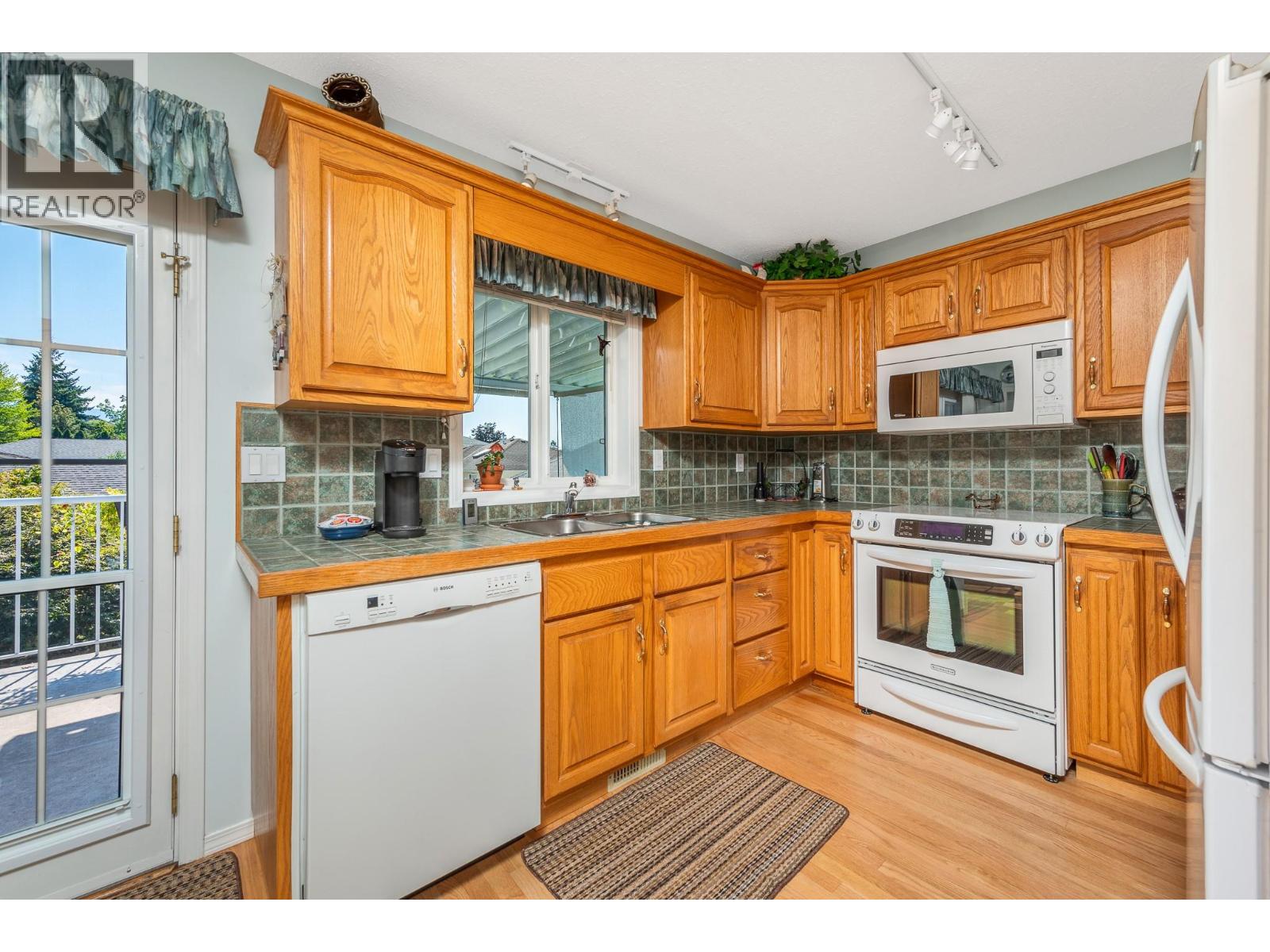 Welcome to this well-kept rancher with walkout basement in Easthill with a SHOP! Offered for the first time, this 5-bedroom, 3-bathroom home features a bright and functional floorplan with space for family, hobbies, or guests. The main level boasts oak hardwood floors, 8 NEW windows, and a cozy gas fireplace in the living room. The dining area is inviting, while the kitchen offers custom oak cabinetry, lots of storage, and quality appliances. A sunny nook opens to the back covered deck with maintenance-free composite stairs perfect for morning coffee or entertaining with views of the garden. The primary suite includes a walk-in closet & 3-piece ensuite, along with a second bedroom and a bright third bedroom/den. The walkout basement provides full patio access and is roughed in for a summer kitchen, making it an excellent suite option. A cold room, full bathroom, and rec room with gas fireplace add comfort, while two additional bedrooms, one oversized with a large closet, offer flexible living space. A standout feature is the detached garage/shop with 60A/240V service, high ceilings, natural gas heat, and full insulation, ideal for projects or hobbies. Parking is plentiful with an attached double garage, detached garage/shop, wide driveway, and gated RV/boat parking. Outdoors, enjoy irrigated landscaping, fully fenced back yard, exposed aggregate walkways, a tiled patio with BBQ hookup, and garden space for the green thumb. Recent upgrades 2023 hot water tank & a new washer & dryer (2025). 100 Amp electrical with room to expand. This property truly offers it all, comfort, functionality, and exceptional workshop space in a peaceful Easthill location close to schools, parks, and Vernon amenities. (id:58842)