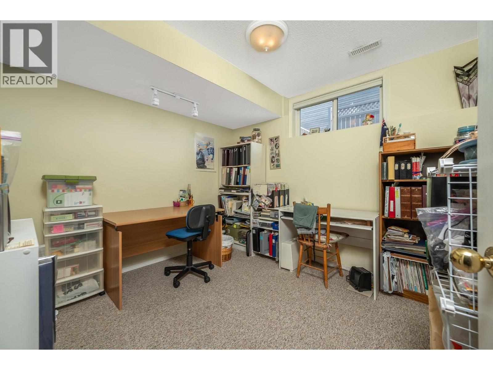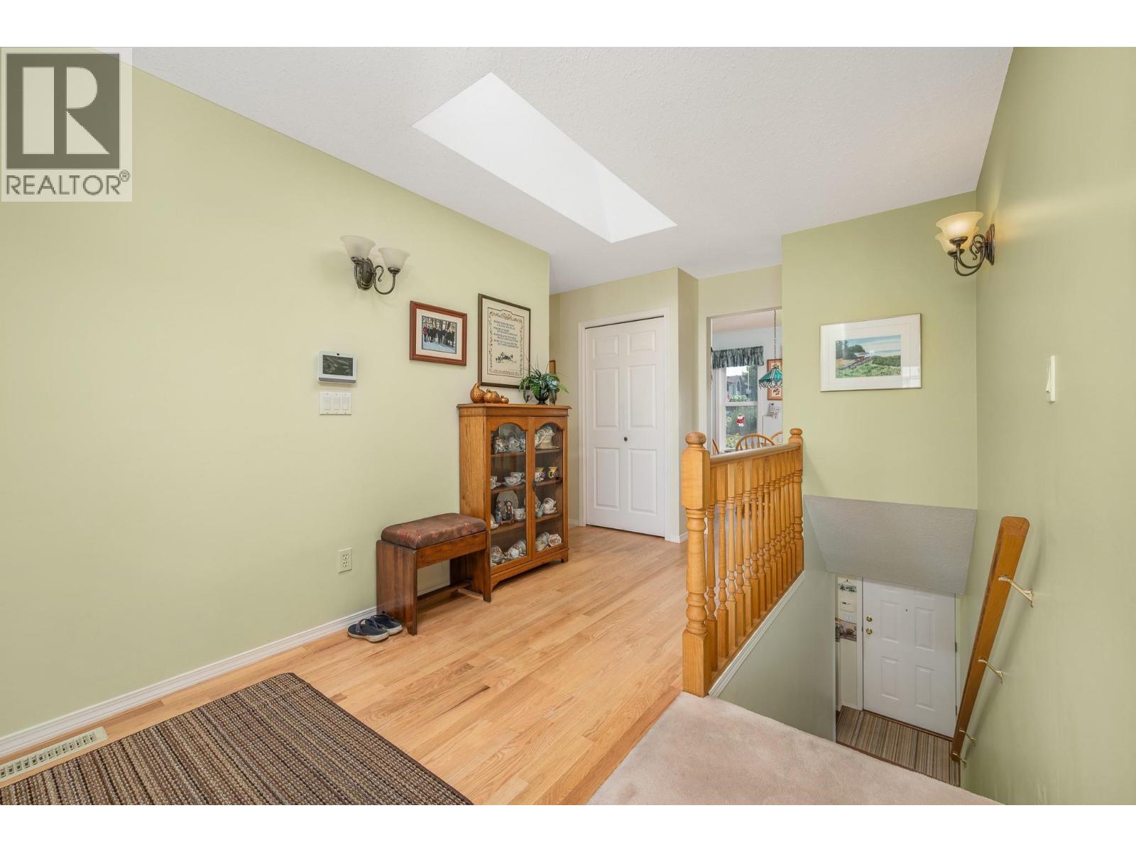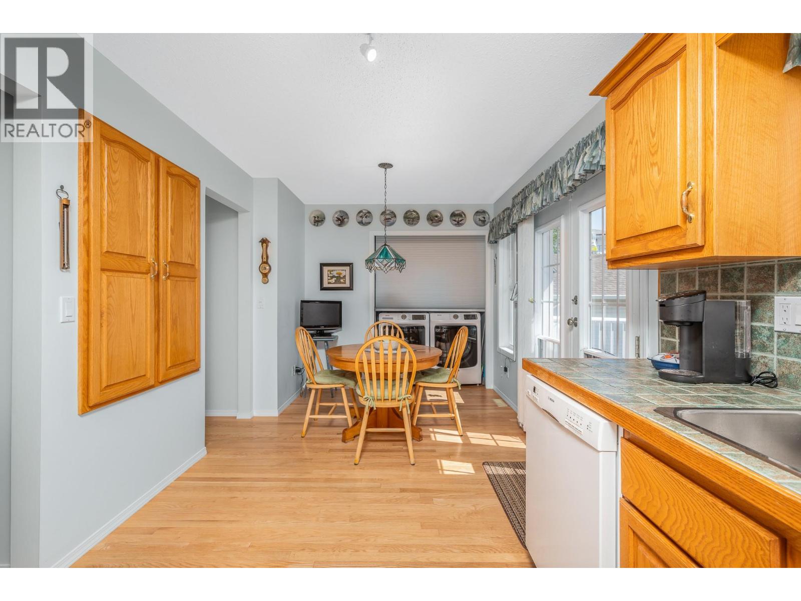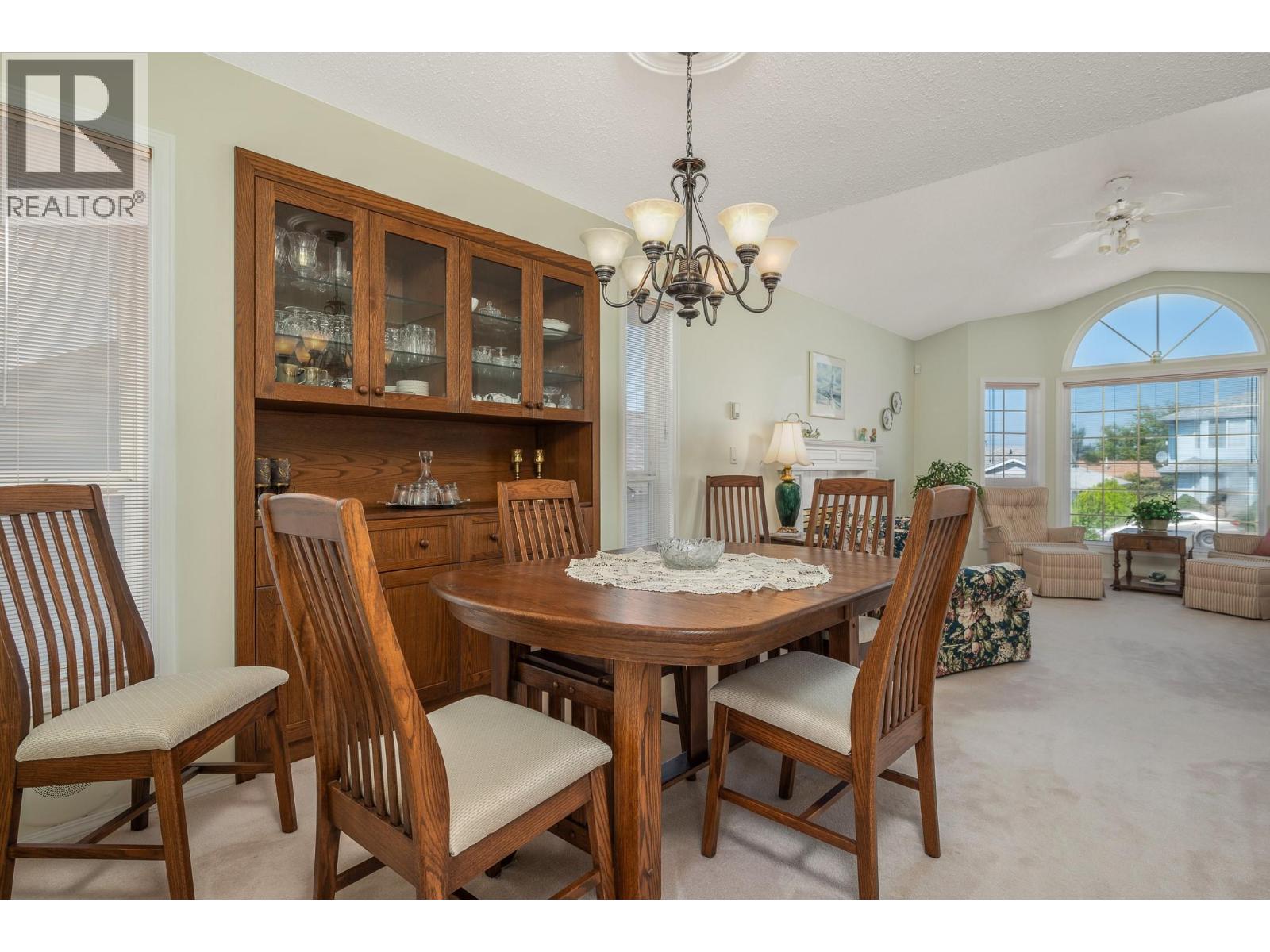Welcome to this well-kept rancher with walkout basement in Easthill with a SHOP! Offered for the first time, this 5-bedroom, 3-bathroom home features a bright and functional floorplan with space for family, hobbies, or guests. The main level boasts oak hardwood floors, 8 NEW windows, and a cozy gas fireplace in the living room. The dining area is inviting, while the kitchen offers custom oak cabinetry, lots of storage, and quality appliances. A sunny nook opens to the back covered deck with maintenance-free composite stairs perfect for morning coffee or entertaining with views of the garden. The primary suite includes a walk-in closet & 3-piece ensuite, along with a second bedroom and a bright third bedroom/den. The walkout basement provides full patio access and is roughed in for a summer kitchen, making it an excellent suite option. A cold room, full bathroom, and rec room with gas fireplace add comfort, while two additional bedrooms, one oversized with a large closet, offer flexible living space. A standout feature is the detached garage/shop with 60A/240V service, high ceilings, natural gas heat, and full insulation, ideal for projects or hobbies. Parking is plentiful with an attached double garage, detached garage/shop, wide driveway, and gated RV/boat parking. Outdoors, enjoy irrigated landscaping, fully fenced back yard, exposed aggregate walkways, a tiled patio with BBQ hookup, and garden space for the green thumb. Recent upgrades 2023 hot water tank & a new washer & dryer (2025). 100 Amp electrical with room to expand. This property truly offers it all, comfort, functionality, and exceptional workshop space in a peaceful Easthill location close to schools, parks, and Vernon amenities. (id:58842)