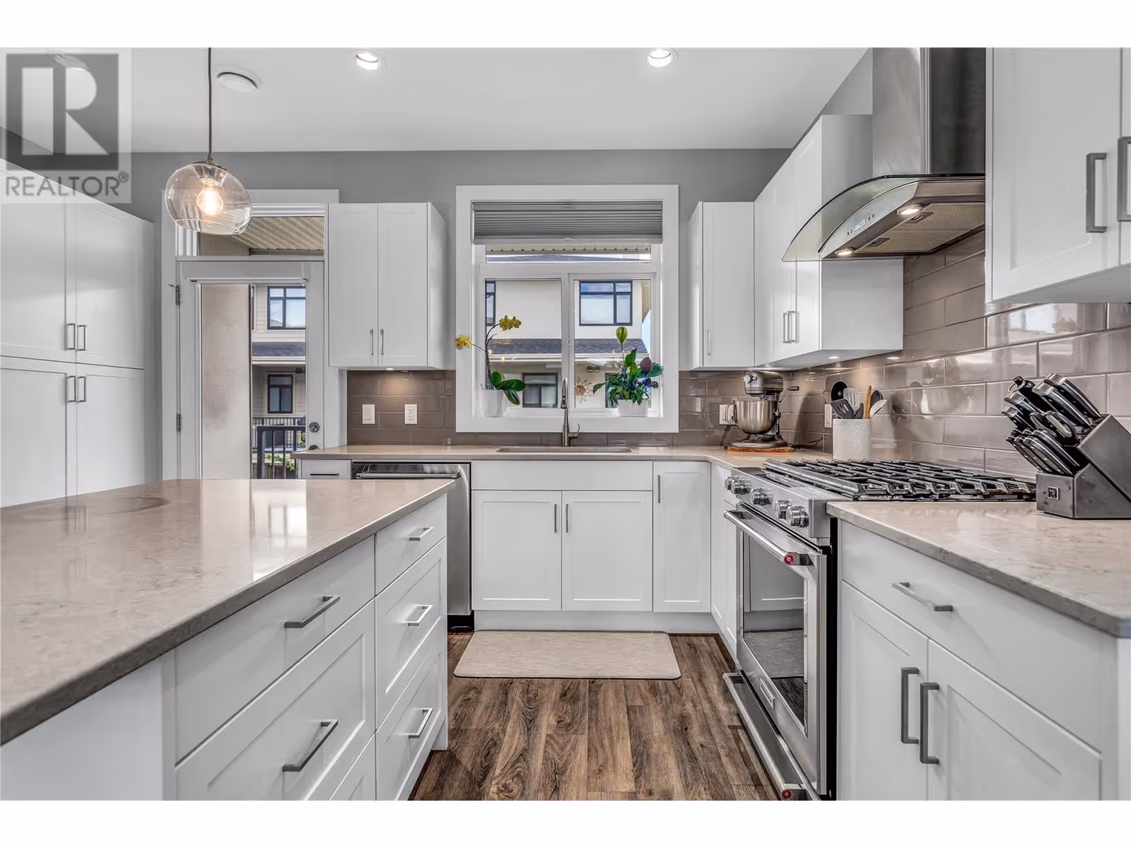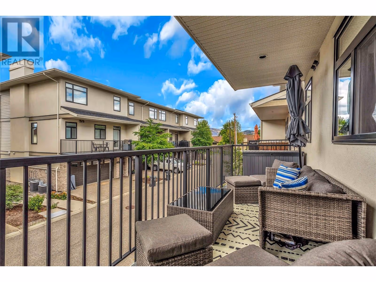 Pristine Townhome in Cameron Mews! Discover this stunning end-unit townhome located in the desirable Cameron Mews community. Offering 3 bedrooms and 2.5 bathrooms, this home sits on the quieter side of the complex, providing a peaceful retreat. Parking is plentiful with space for 4 vehicles, including a 2-car garage. The open-concept living, dining, and kitchen area boasts soaring 9-foot ceilings, creating a bright and airy atmosphere. The kitchen is a chef’s dream with sleek quartz countertops, a large island, stainless steel appliances, and a gas range—making meal prep a delight. Step outside onto two walkout decks, perfect for outdoor entertaining or relaxation. Upstairs, you'll find three spacious bedrooms. The primary bedroom features a luxurious 4-piece ensuite, a large walk-in closet, and its own private balcony—ideal for unwinding. A full bathroom and convenient laundry area complete the second level. Additional features include a versatile first-floor den suited for a home office or additional living space, a charming front porch, and ample visitor parking just steps away. Built with exceptional craftsmanship and backed by a 2-5-10 New Home Warranty, this home offers style, comfort, and convenience in a prime location close to shopping, schools, parks, and the hospital. Don’t miss the opportunity to make this exceptional townhome your new home! (id:58842)
