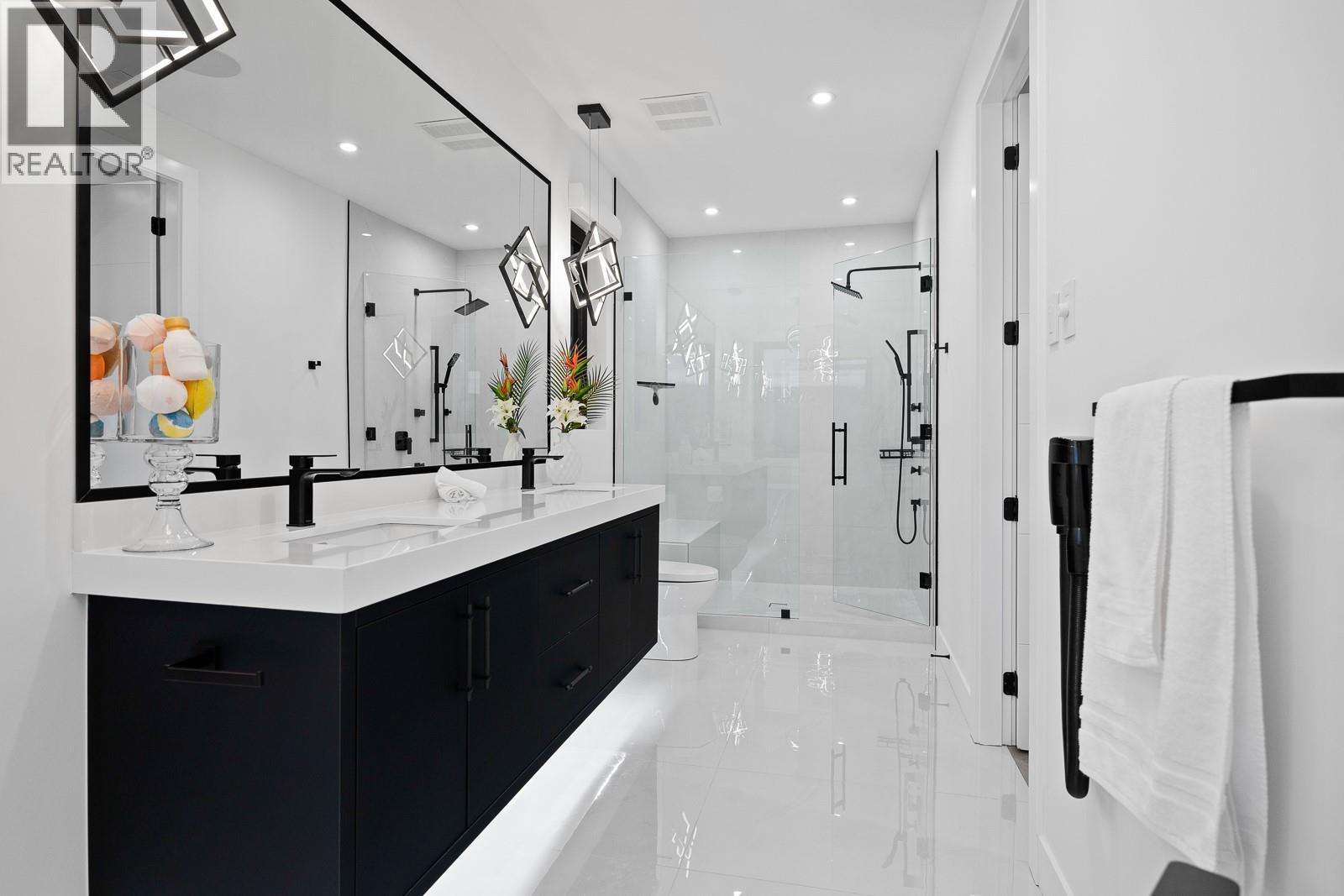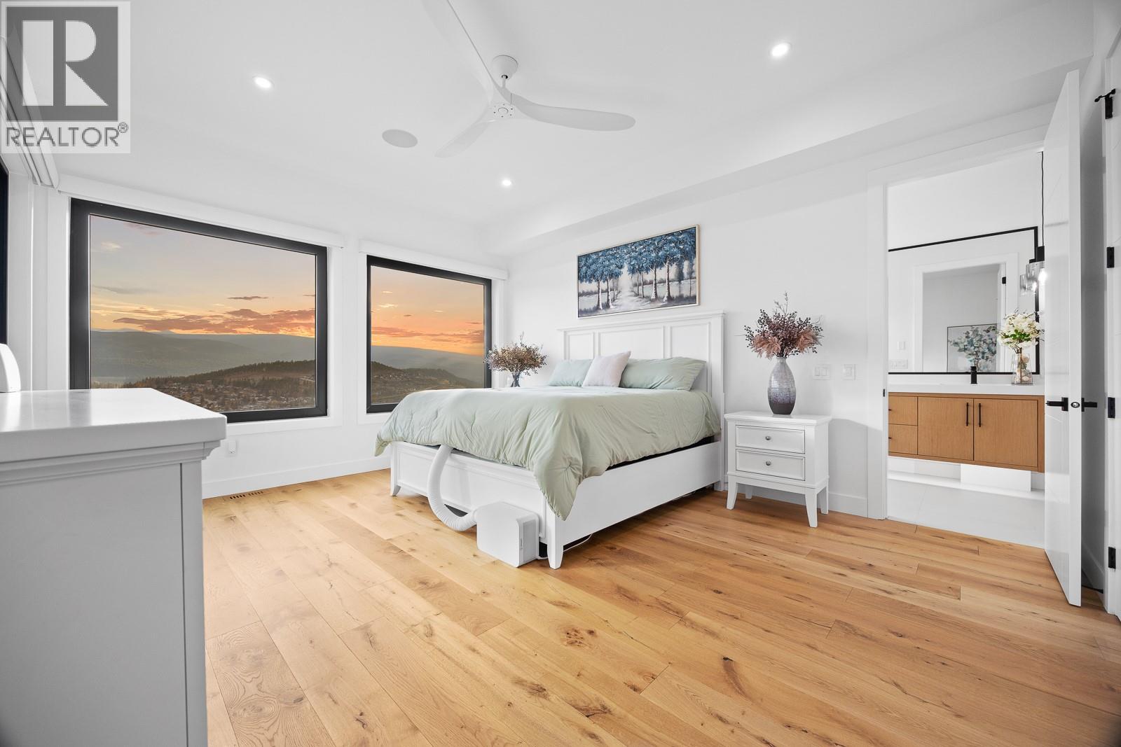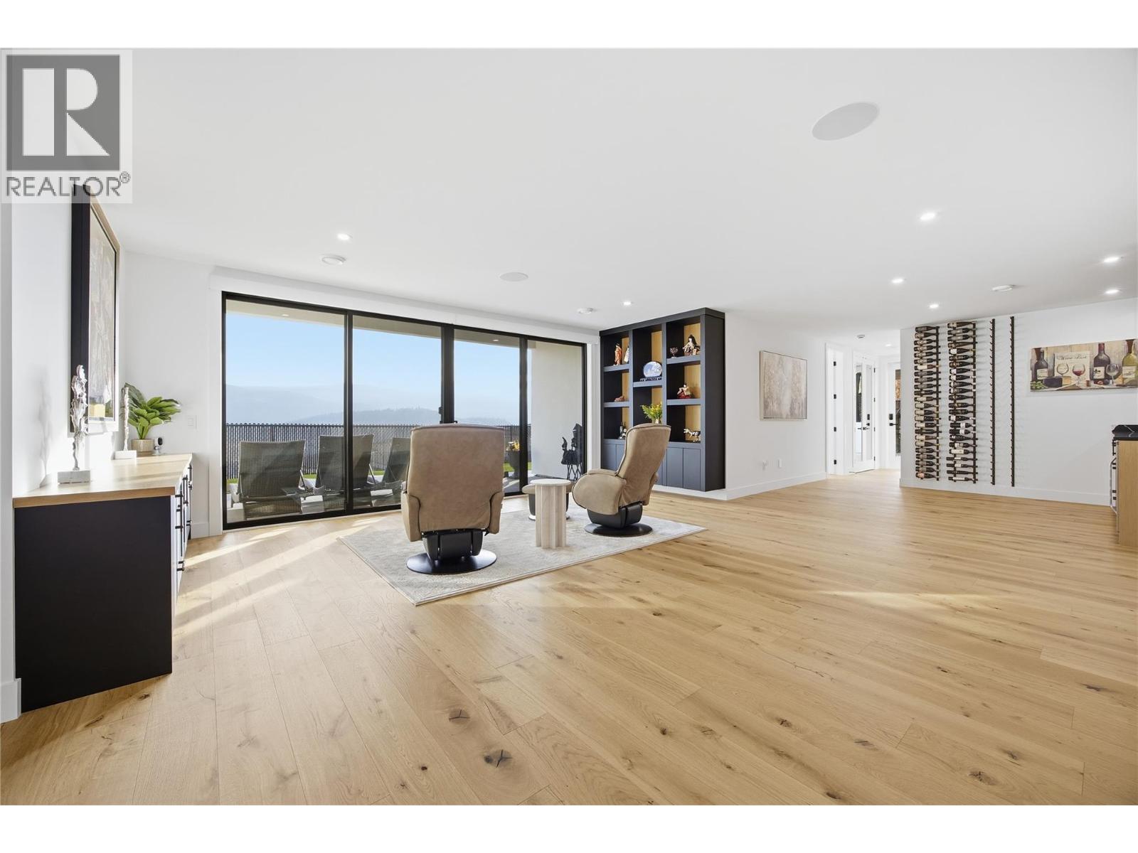 Better Than New! Step into this modern, custom-built masterpiece, meticulously designed for those who appreciate living at the highest level. Spanning 7,144 sq.ft. this residence seamlessly blends grand scale with exquisite finishes, including engineered hardwood, custom cabinetry, high-end appliances, & 2nd kitchenette in the pantry with private patio access, perfect for elegant dining with panoramic views. Expansive south-facing windows illuminate the 30-foot ceilings, showcasing a chef’s kitchen with an oversized island at the heart of the open-concept living space. Outdoors, enjoy low-maintenance syn lawn with a covered swim spa & hot tub, complemented by an outdoor shower, ready for outdoor BBQ kitchen dreams. Live in style on the lower level at the sleek wet bar and media room plus large sliding doors create a seamless connection between indoor & outdoor spaces. The triple car garage with extended ceilings, epoxy floors, built-in storage, and dog wash elevates functionality. Upstairs, a private 1-bed legal suite with full kitchen, patio, and stair lift offers versatile accommodation for family, guests, or rental potential. Sophisticated technology, including zoned surround sound & exterior cameras, ensures comfort & security. From expansive entertaining areas to thoughtfully designed family amenities, this home epitomizes elevated living with unparalleled Black Mountain prestige, offering a rare combination of scale, functionality & refined sophistication. GST paid (id:58842)