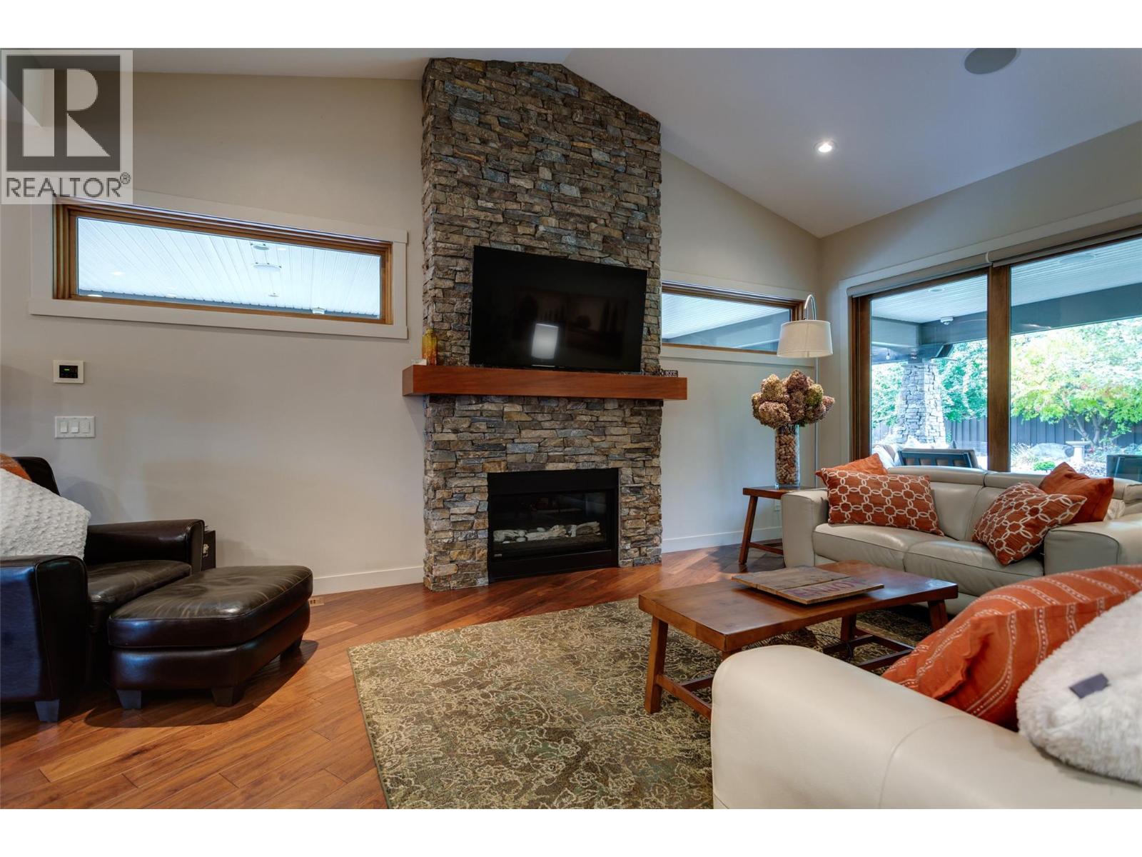 First time on the market for this gorgeous, custom built rancher with a full basement. Luxuriously appointed, this 3 bed/3 bath executive home boasts a large, fully landscaped and fenced lot. With incredible architectural touches like the cocktail patio off the office at the front of the home, soaring vaulted ceilings, 2 floor to ceiling stone fireplaces, gourmet kitchen with 6 burner gas range as well as electric wall oven, custom wine room and a drive through, triple garage which is a homeowners dream ... this home has it all and is centrally located within minutes to downtown, shopping, dining and the lake. The tranquil master also suite boasts heated ensuite floors and a jetted tub. Enjoy a perfect backyard for entertaining and gardening with covered patios and expansive grassy space for the kids and pets or plenty of room for a pool. There is so much to see and enjoy in this incredible home nestled in a corner cul-de-sac in prestigious Bridges in Glenview Ponds. This private strata community enjoys a private park with water features and a low strata fee of only $350 per month .The geothermal heating and cooling also ensures reasonable utility costs. Call today for your private tour and come home to the Okanagan's best! (id:58842)