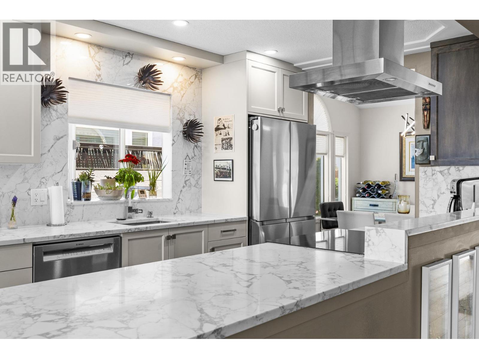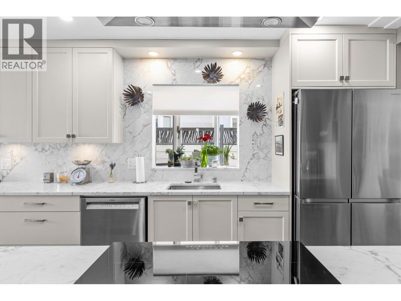 Stunning Sophistication! Beautifully renovated 3-bedroom, 2 bath townhouse location in “sought after” Lower Mission. The great floor plan here starts with a gorgeous galley eat-in kitchen. The appliances include a fridge with built-in removable water canister, Bosch range with Induction top, convection oven and air fryer + separate beverage cooler. Numerous high-end cupboards & cabinet space, wood drawer boxes with pullouts, along with gleaming countertops and the seamlessly matching backsplash. Formal dining room that will accommodate the largest dining table + a spacious living room with corner gas fireplace. The King SIZE primary bedroom is quietly located at the back of the home. The walk-in closet leads you to the deluxe 4-piece ensuite with heated floor, double sinks and large glass shower. There are 2 other sizable bedrooms, both with double closets, a main 4-piece bath also with heated floor, + a full size laundry room. Extend your living space with the lovely light and bright insulated sunroom. The ULTRA PRIVATE outdoor space is perfect for entertaining with new patio and BBQ gas hookup. BONUS POINTS FOR no Poly B, A/C in 2023, H2O in 2018, Built-in vacuum system with the kitchen vac pan added during the renovation, Crown moldings, newer front door with glass side panels & Phantom screen, garage door opener in 2025, plywood cabinets under all sinks. Note: Sunroom is insulated but not heated. Realtors, please refer to private remarks prior to showing. Many thanks. (id:58842)