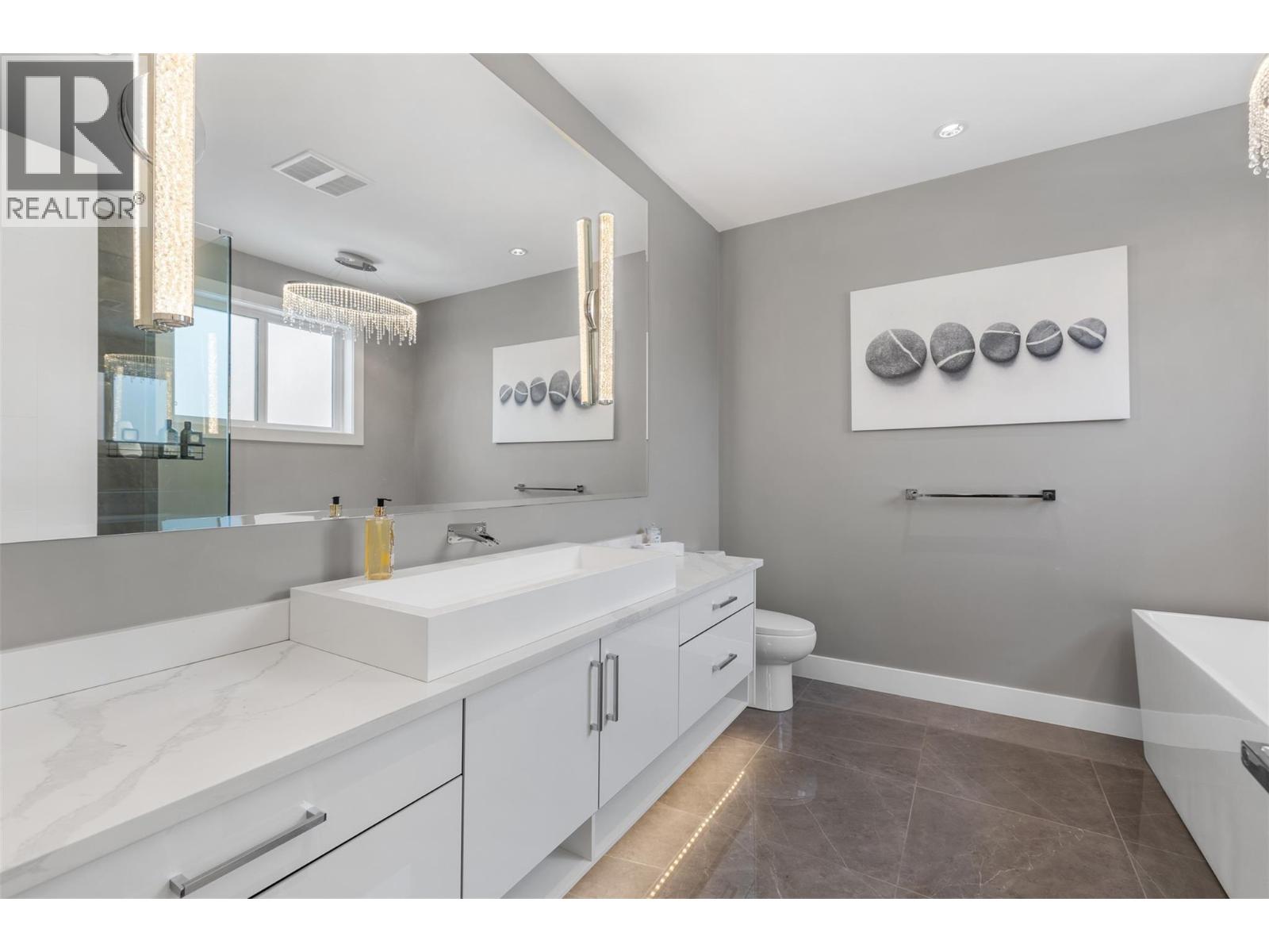 Discover the pinnacle of refined living in this exquisite 4,284 sq ft, 6-bedroom, 5-bathroom estate on 0.45 acre land, where every detail has been meticulously crafted to perfection. Built by Dream Sky Homes in 2017, this masterpiece boasts an expansive open-concept design that seamlessly blends sophistication and comfort, featuring a gourmet chef’s kitchen with a massive quartz island, dual full-size refrigerators, and a 5-burner gas stove, mountain view BBQ deck, ideal for entertaining on a grand scale. Indulge in the sumptuous master retreat with a spa-inspired ensuite, or host unforgettable gatherings in the private media room and gym. Soak in breathtaking views from the generous covered deck, while a separate-entry self-contained Legal Suite offers flexible living or as mortgage helper. Car enthusiasts will delight in the triple-car garage, plus a dedicated lower-level bay for your prized toys on the side of the home. Situated on a serene no-thru road, this home offers a flat, pool-sized yard and unparalleled proximity to world-class golf, UBCO, top schools, and 30 minutes to Big White Ski Resort. Elevate your lifestyle in this show-stopping home where luxury truly meets possibility. (id:58842)