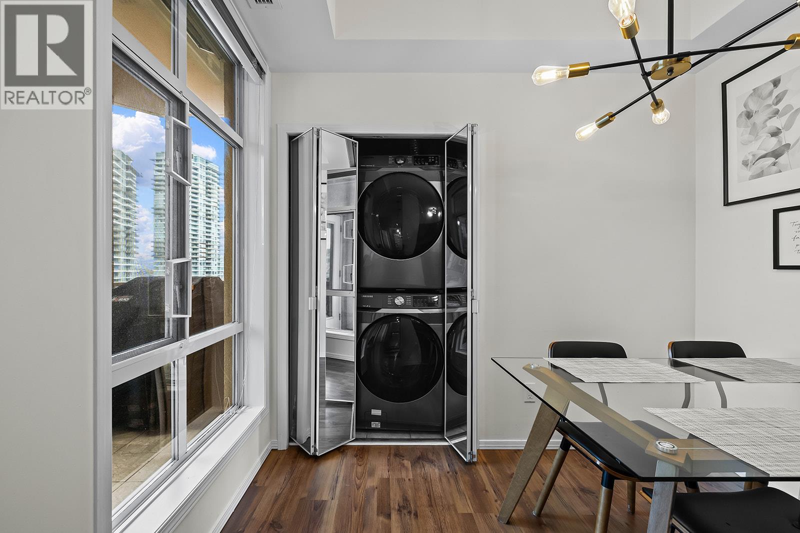 Enjoy elevated downtown living from the 14th floor in the heart of Kelowna’s waterfront district. This well-maintained two-bedroom residence offers an ideal blend of space, location, and versatility, whether you’re looking for a full-time home or a revenue-generating property. The open layout is filled with natural light and showcases expansive city and mountain views from nearly every room. The kitchen offers ample cabinetry and counter space with bar seating, flowing seamlessly into the dining and living areas—complete with a gas fireplace. The primary bedroom features beautiful city views, a three-piece ensuite, and thoughtful upgrades throughout. A spacious second bedroom provides flexibility for guests. Additional highlights include in-suite laundry and a tiled deck with gas BBQ hookup—perfect for taking in the skyline and surrounding scenery. Residents enjoy access to resort-style amenities including pools ( indoor and outdoor ), hot tubs( indoor and outdoor ), steam room, fitness centre, tennis courts, and geothermal heating, all included in the strata fees. A prime downtown location, generous layout, and excellent upkeep make this property a standout opportunity. (id:58842)