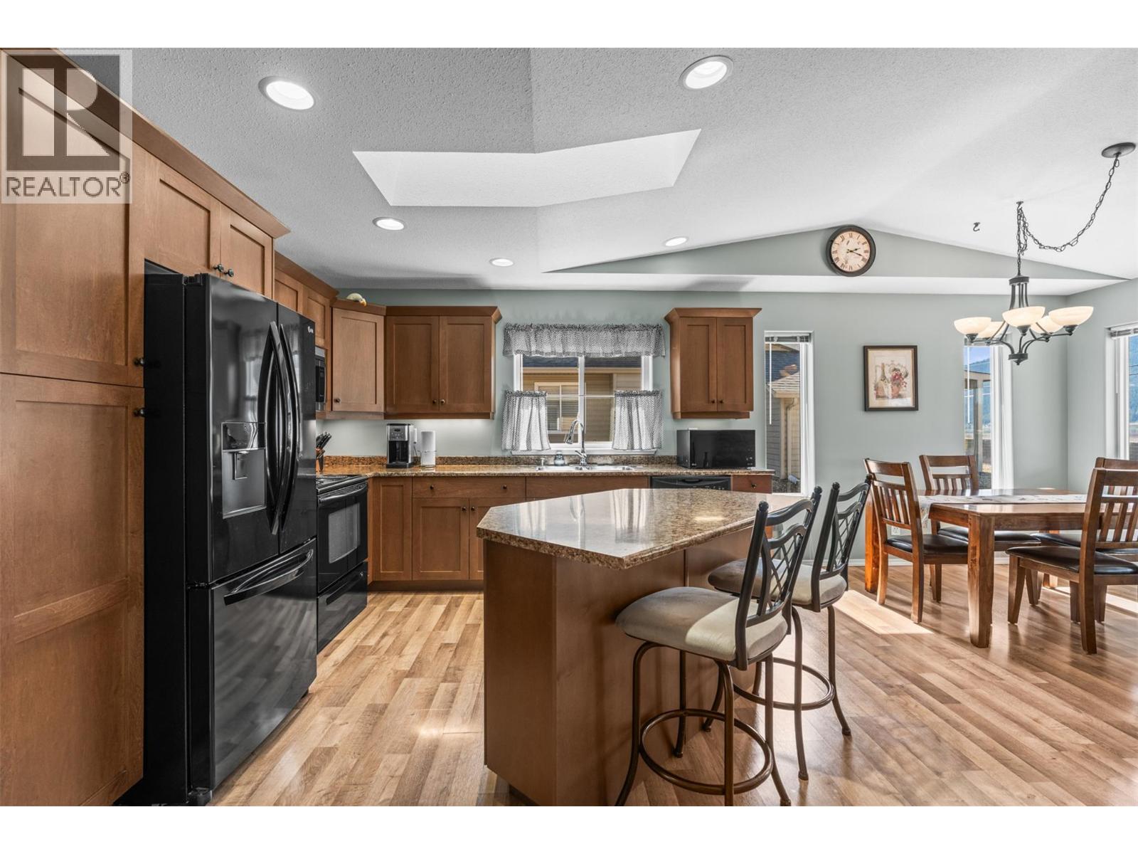 Welcome to Desert Cove Estates—an exceptional adult community offering a refined, low-maintenance lifestyle. This beautifully maintained home features a bright, open-concept design with vaulted ceilings, a skylight, and two sun tunnels that fill the space with natural light. The kitchen showcases rich maple cabinetry and flows seamlessly into an elegant living area anchored by a cozy gas fireplace. Step outside to your expansive 10’ covered deck spanning the full width of the home, complete with roll-down shades, ideal setting for morning coffee or evening wine while enjoying partial lake and stunning mountain views. The professionally landscaped yard is thoughtfully designed, with irrigation and a natural gas BBQ hookup for effortless entertaining. Enjoy the comfort of a beautifully appointed home paired with the vibrant, resort-style amenities and welcoming community that make Desert Cove so desirable. (id:58842)