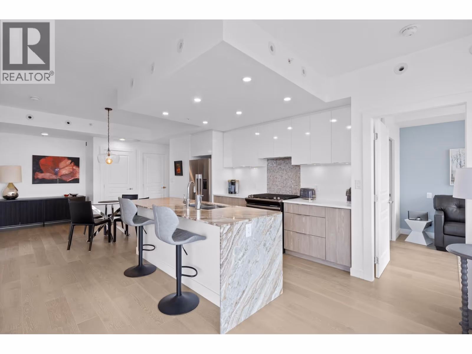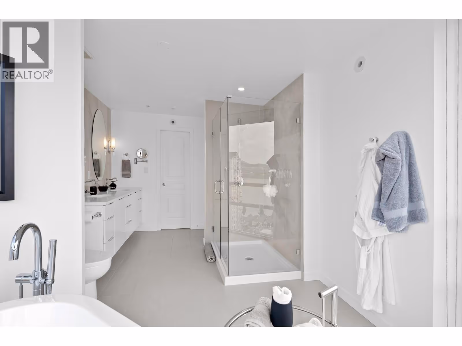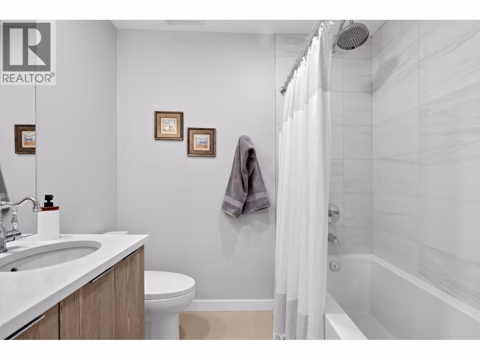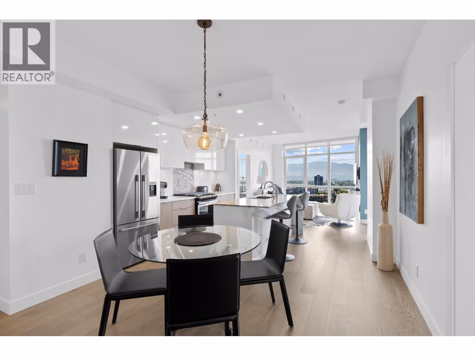 Experience elevated luxury living in the heart of downtown Kelowna. Soaring above the city on the 17th floor, this stunning 2 bed/2.5 bathroom home showcases west-facing views of Lake Okanagan, the city skyline, and evening sunsets-captured through dramatic floor-to-ceiling windows. Open the double doors to your wrap-around entertainer's balcony. The gourmet kitchen impresses with a waterfall island, stainless steel appliances including a gas stove, two-toned cabinetry, and an upgraded pantry with built-in storage. The primary retreat offers balcony access, custom walk-in closet storage, and a spa-inspired ensuite. A bathtub lover's dream-indulge the stand-alone soaker tub while taking in the breathtaking views, or refresh in the waterfall shower. Dual vanities with designer sinks complete the spa-like feel. The second bedroom also features a 4-piece ensuite, walk-through closet, and additional upgraded storage. Additional highlights include a cozy electric fireplace, in-suite laundry, 2 parking stalls and 1 storage locker. Residents enjoy resort-style amenities: fitness centre, social and BBQ areas, and a year-round plunge pool-heated in winter, cooled in summer. All this in a prime downtown location, just steps to the beach, boutique shops, award-winning restaurants, breweries, concerts, and Kelowna's vibrant cultural scene. 2 pets welcome with restrictions. (id:58842)