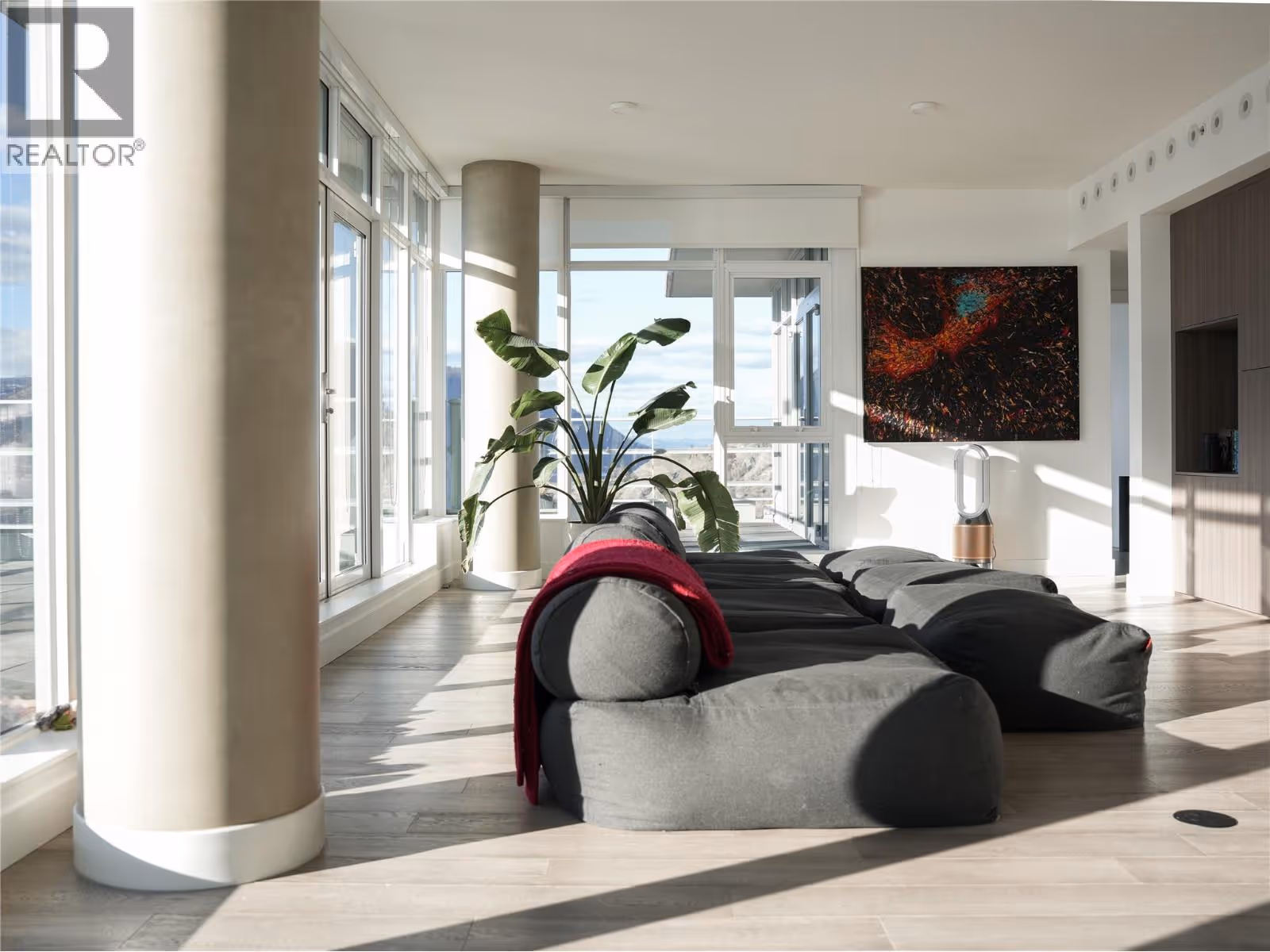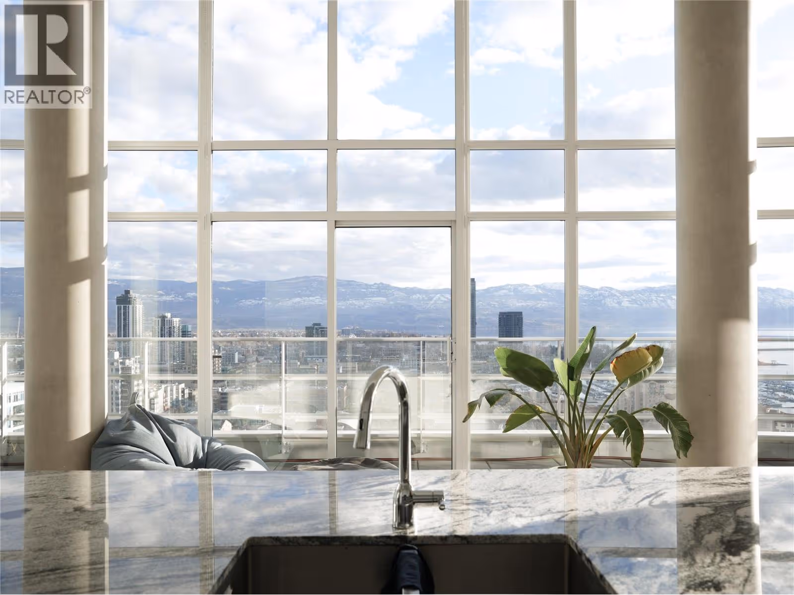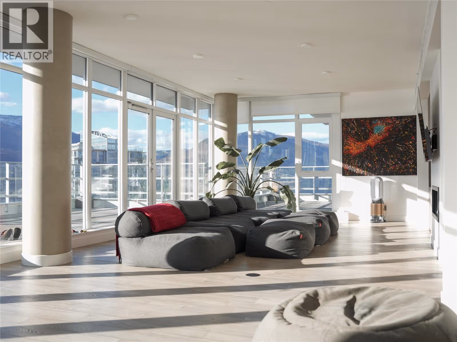 Priced $276K below assessment! 1151 SUNSET is central to a thriving theatre and dining scene, with premium views of local outdoor concerts, steps to entertainment venues and semi-lakeshore to Tugboat Beach at Waterfront Park and the waterfront promenade that extends from the bird sanctuary to the bridge. A true Penthouse, occupying the entire 21st floor to yourself, with direct entry to the elevators, your residence boasts three expansive patios that unveil breathtaking 360 degree lake, city and mountain views. Photos cannot do justice. With over 1400 square feet of outdoor patio space, experience for yourself one of many iconic sunsets that paint the westerly sky, watch the float planes depart from the marina, or sip on your morning coffee as you catch the vista sunrise to the east. This residence presents a designer's dream canvas in which to personalize to suit your needs having four spacious bedrooms with two having an ensuite, plus two additional washrooms, the grand great room, surrounded by a breathtaking wall of windows, boasts soaring ceilings that elevate both your kitchen and dining experience. Complete with two secure underground parking stalls and storage, amenities such a lounge, gym, kitchen, BBQ's, and plunge pool. Pet friendly: up to two dogs(no size restriction) or cats, or one of each. Reach out for details of the current tenancy should you be looking for an investment property or quick possession. (id:58842)