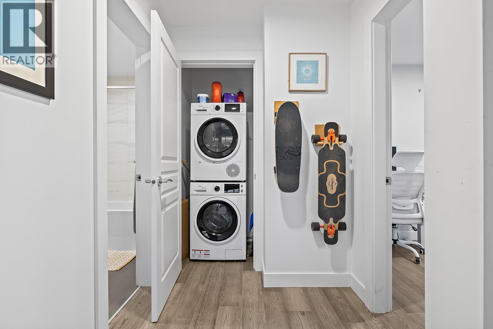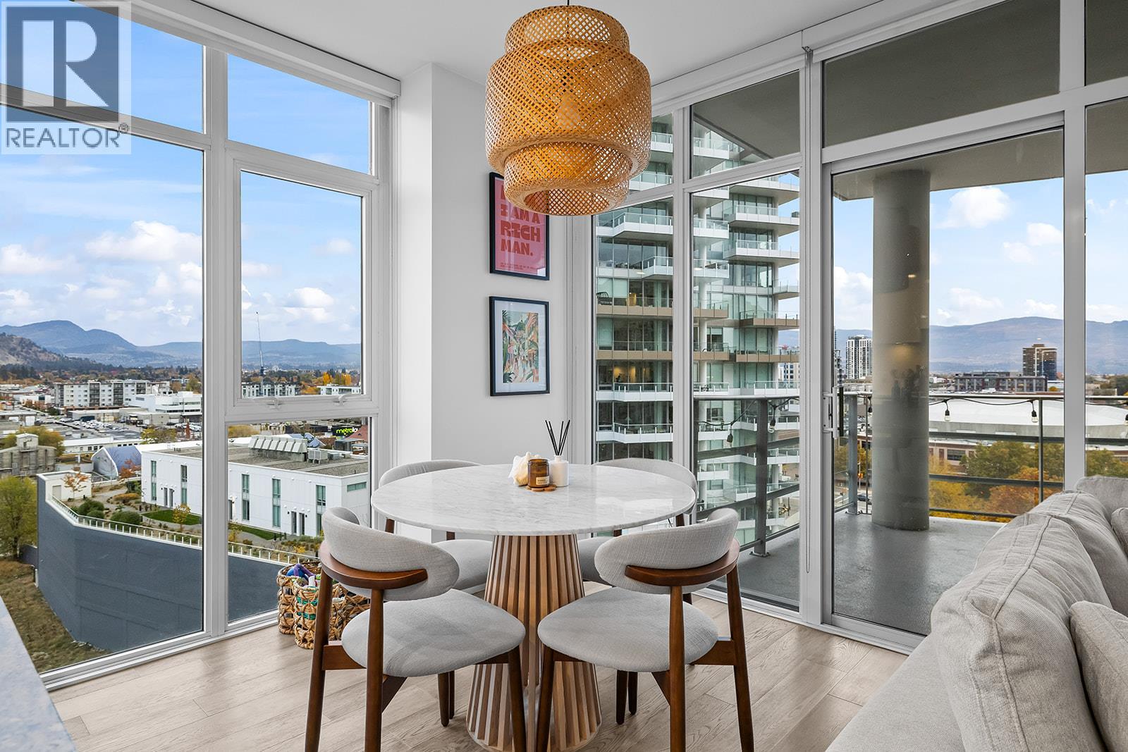 Experience the best of downtown Kelowna living in this upscale, move-in-ready corner condo at Eleven Fifty-One Sunset Drive. This bright, south-facing 2-bedroom, 2-bath executive suite offers sweeping lake, mountain, and city views through floor-to-ceiling windows that fill the home with natural light. The chef-inspired kitchen is designed for both style and function, featuring a waterfall island, stainless-steel appliances, gas range, two-tone cabinetry, and under-counter microwave—a perfect space for entertaining. The open layout flows seamlessly to a generous balcony, ideal for relaxing and soaking in the Okanagan ambiance. Amenities include a heated plunge pool, BBQ terrace, fully equipped fitness centre, residents’ lounge with kitchen, meeting room, bike storage, and secure underground parking with a storage locker. Attention to detail is evident throughout the building’s resort-inspired design. Located just steps from Okanagan Lake, Waterfront Park, the Yacht Club, Cactus Club, Prospera Place, Knox Mountain, and Kelowna’s vibrant downtown restaurants, shopping, and entertainment. Built by Kerkhoff Construction, this concrete tower is pet- and rental-friendly and boasts a Walk Score of 85, highlighting its perfect balance of accessibility and tranquility. #905 at 1151 Sunset Drive – where luxury, comfort, and casual sophistication meet the ultimate Okanagan lifestyle. (id:58842)