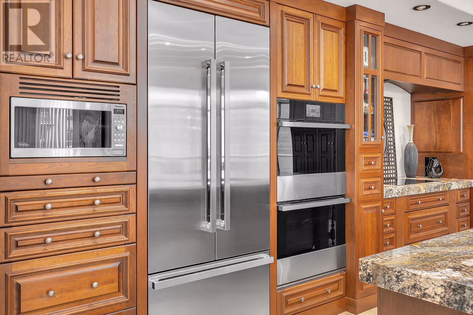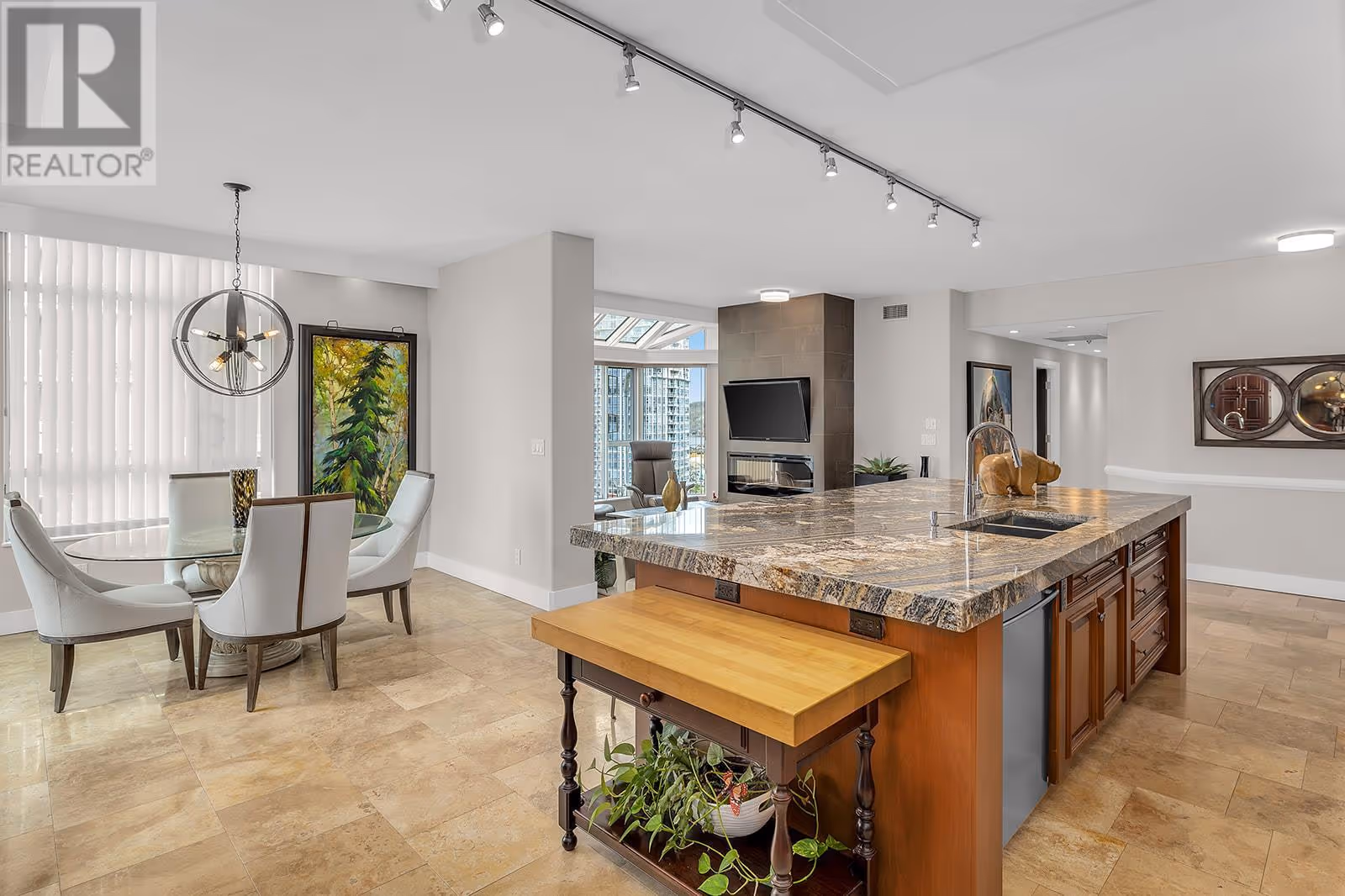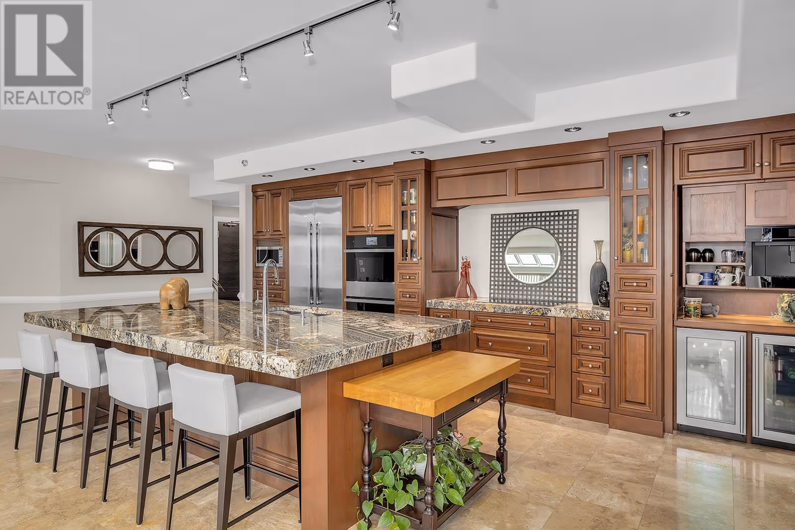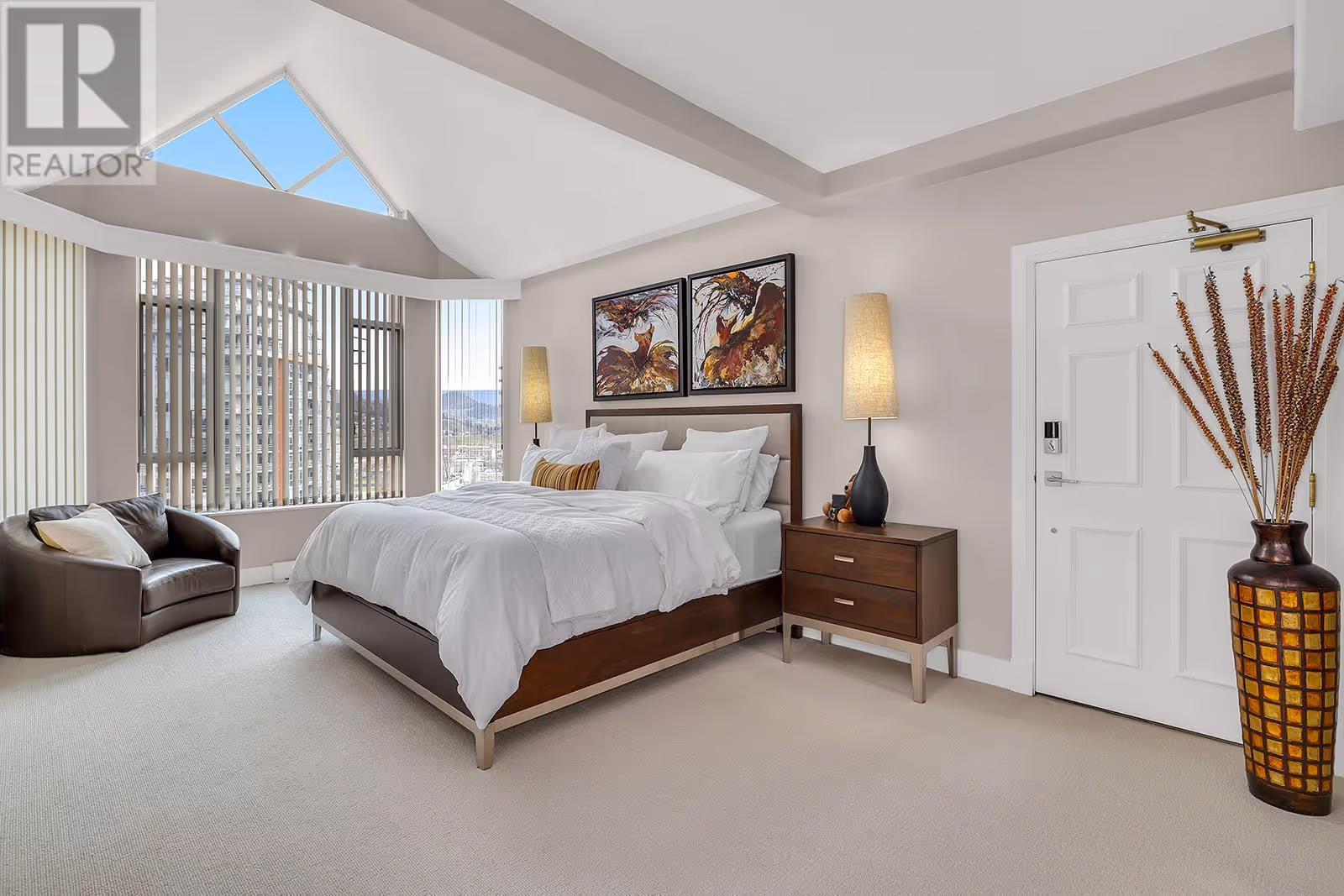 Now's your opportunity to own one of Kelowna’s most extraordinary lakefront penthouses. Spanning 3,000 sq ft of refined luxury, this meticulously renovated residence sits high above the city, offering sweeping panoramic views of Okanagan Lake, the bridge, the city skyline, and the sandy beach below. Elegantly renovated throughout, highlighted updates include crafted medieval walnut doors, refreshed window coverings, and a large gourmet kitchen with premium granite countertops complemented by state-of-the-art appliances. The vaulted living room, with its modern gas fireplace, overlooks the expansive views with access to one of your three private decks, perfect for sunrises with your morning coffee or sunsets with your favourite glass of Okanagan wine, selected directly from your temperature-controlled built-in wine library. The expansive primary bedroom, crowned with a vaulted ceiling, flows seamlessly from the walk-through closet with its custom-designed built-ins to the reimagined ensuite, now a spa-like haven with granite countertops, a grand floor-to-ceiling granite walk-in shower, and heated floors. The penthouse comes with two secure underground parking spots, a same floor storage room, and access to premium amenities including two pools, steam room and gym. There’s even an option for boat moorage in the Lagoon. Positioned in the heart of downtown Kelowna, you’ll enjoy unparalleled walkability to world-class dining, shopping, galleries, theatres, and the beach. (id:58842)