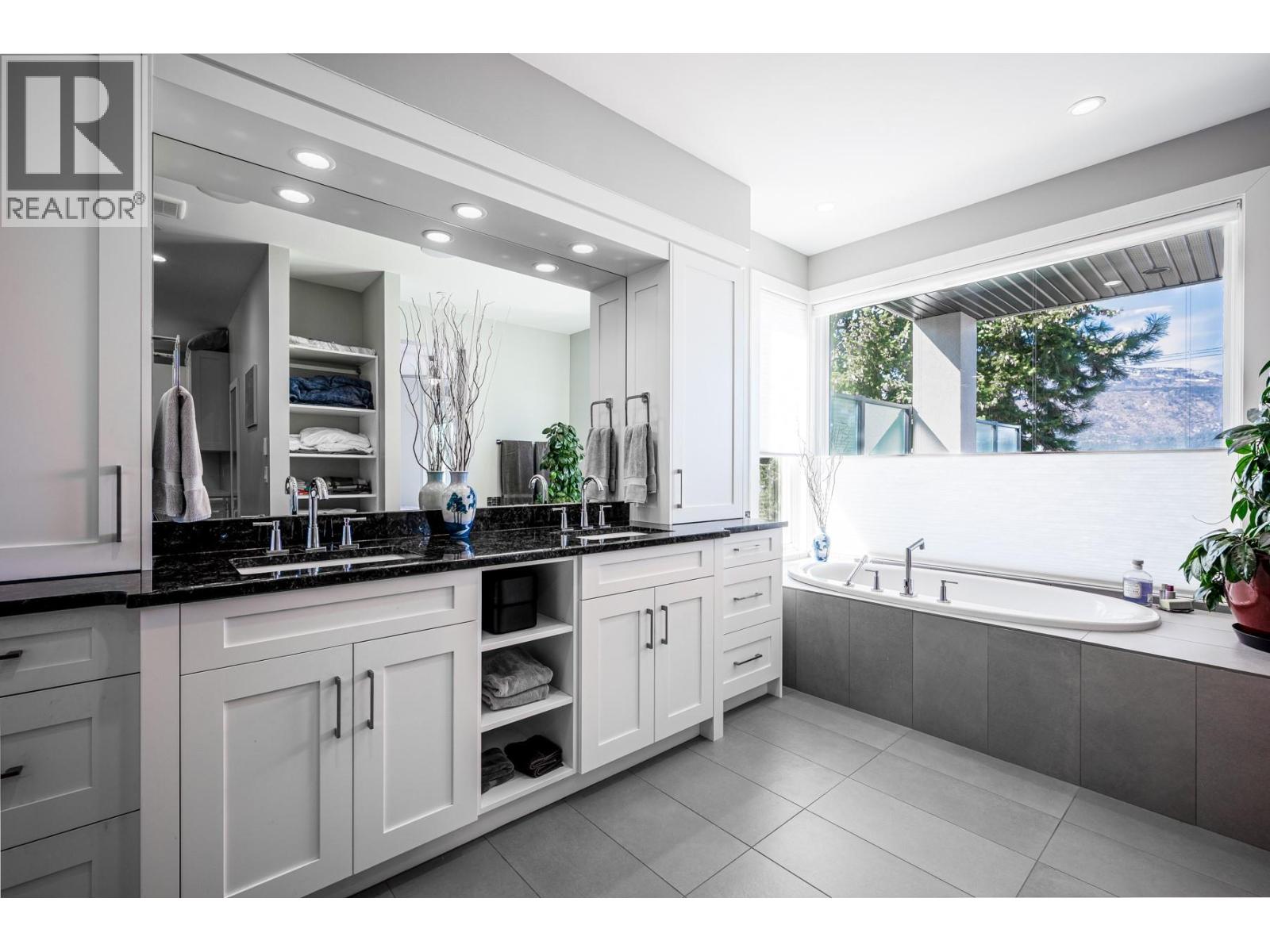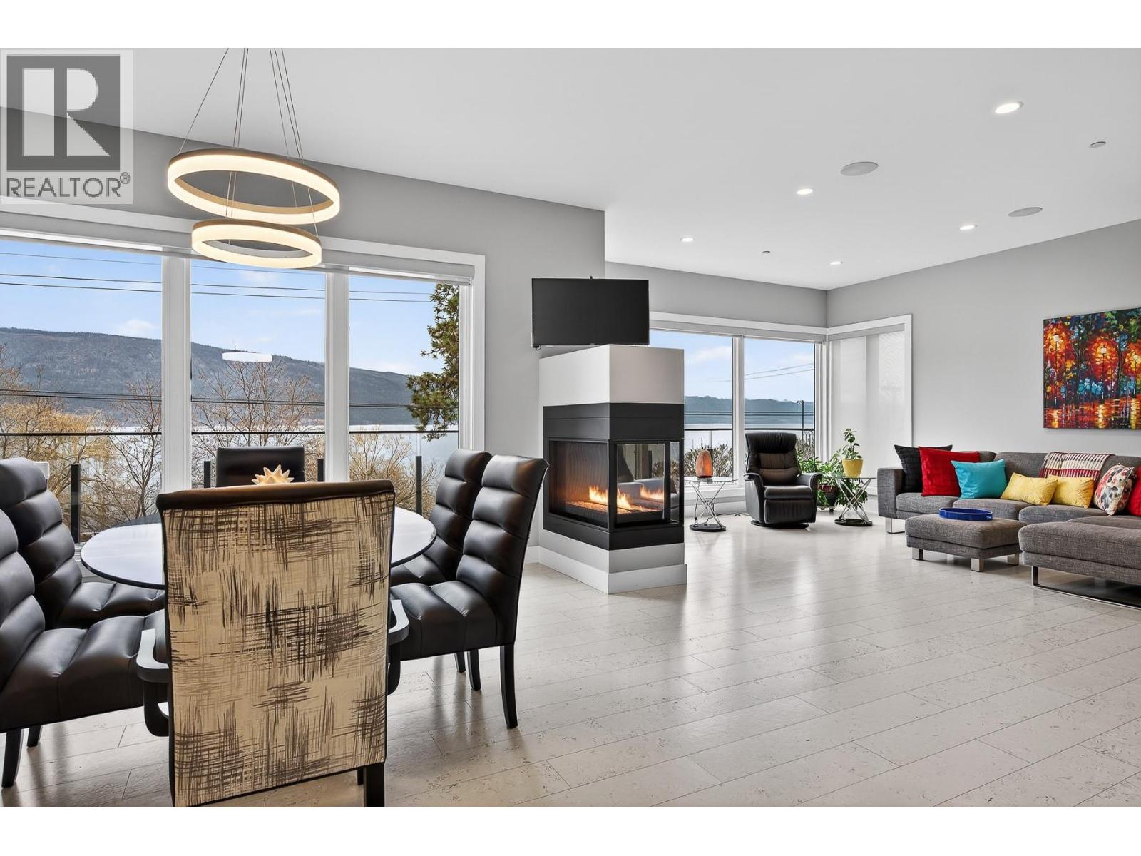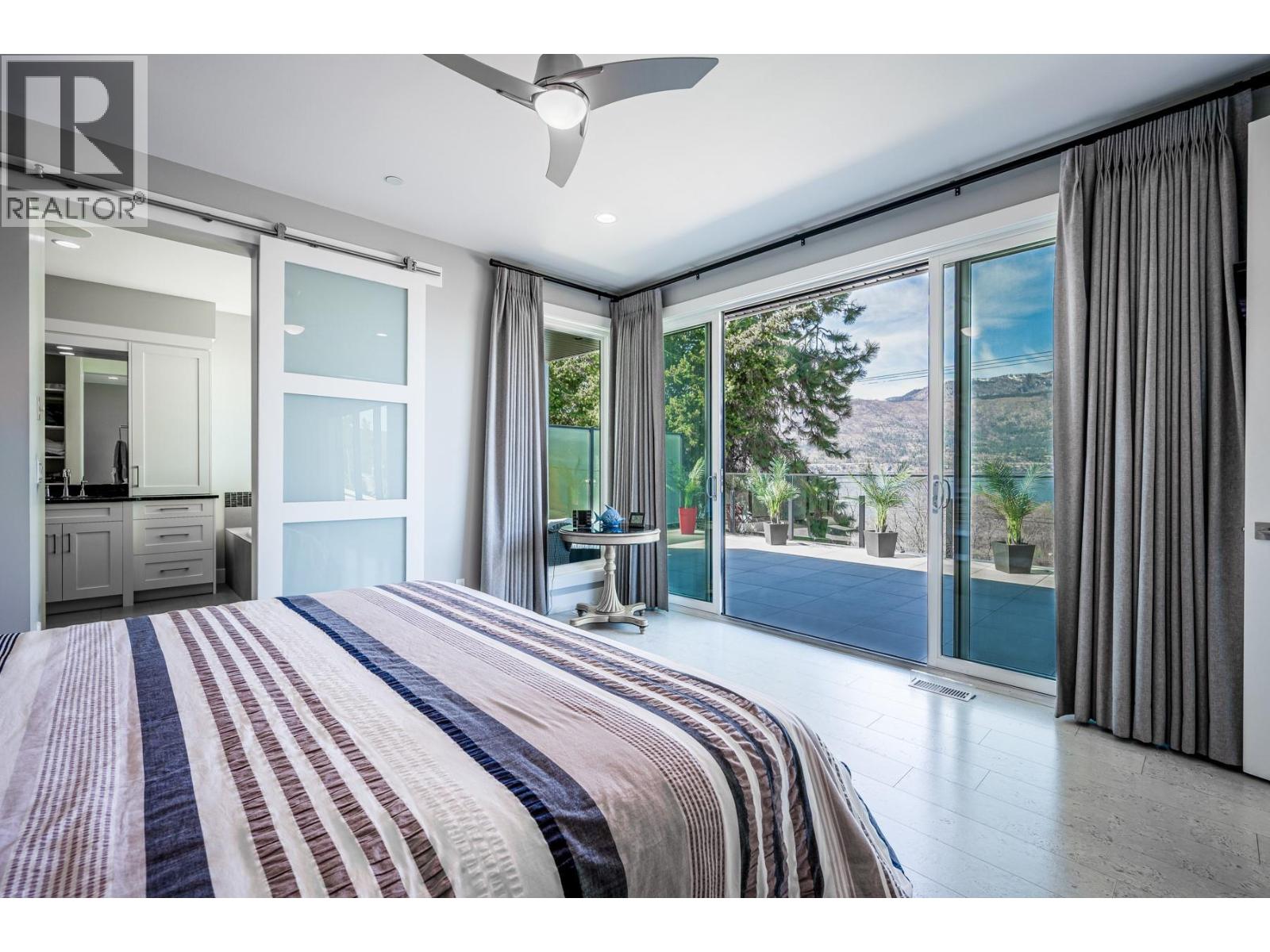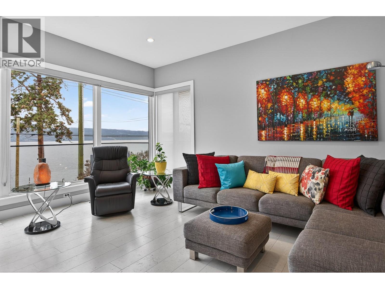 To truly embrace this home, you must step inside. From the moment you cross the threshold, the lake reveals itself - expansive, calming, ever-changing. Designed by a respected architect and built with exceptional attention to detail, this custom residence was intentionally positioned to capture Okanagan Lake from nearly every principal room. Clean modern lines, walls of glass, and expansive terraces create a seamless connection between indoors and out. Each level offers its own perspective of water and sky, whether you’re enjoying morning coffee on the covered patio or watching the sun set across the mountains from the upper terrace. The kitchen is both refined and functional, anchored by rich granite surfaces, premium appliances, and effortless flow to outdoor dining. A dramatic open staircase serves as an architectural statement while maintaining the home’s sense of openness and light. The primary suite is a private retreat, with direct terrace access, a spa-inspired ensuite, soaker tub, dual vanities, and a generous walk-in closet complete with secondary laundry. The lower level offers flexibility for guests, family, or entertaining, with walk-out access and easy connection to the beach just steps away. Paddleboard at sunrise, tie your boat to the buoy, stroll the shoreline path, or visit nearby wineries and cafés. This is lake living...... elevated, intentional, and designed to be experienced. Come view it. (id:58842)