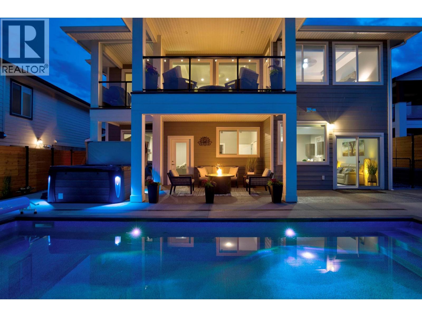 This stunning Lake Country home delivers it all: a 2-bedroom legal suite with proven Airbnb income, breathtaking lake and valley views, and a resort-style backyard oasis that defines the Okanagan dream. Offering over 3,040 sq ft of modern living, this 6-bed, 4-bath 2019-built walkout rancher blends elegance and flexibility for families and investors alike. The bright, open-concept main level showcases soaring ceilings, quartz countertops, hardwood floors, and a double-sided fireplace shared between the living room and primary suite, creating warmth and sophistication in perfect balance. The chef’s kitchen features stainless steel appliances, a large island, and seamless flow to the expansive upper deck where you’ll enjoy incredible lake and valley views, the perfect spot for morning coffee or evening wine. Step outside to pure luxury with over $250,000 invested in a complete backyard transformation featuring a heated saltwater pool, hot tub, and three firepits across multiple tiers, including a lower yard with an intimate firepit lounge. All of this is surrounded by professional landscaping and ambient lighting for unforgettable evenings. Downstairs, the beautiful 2-bedroom legal suite offers exceptional flexibility, allowing you to operate it as a lucrative Airbnb or provide comfortable extended-family living. With RV and boat parking, an epoxy-finished garage, and the option to purchase fully furnished, this home captures everything the Okanagan lifestyle promises. (id:58842)